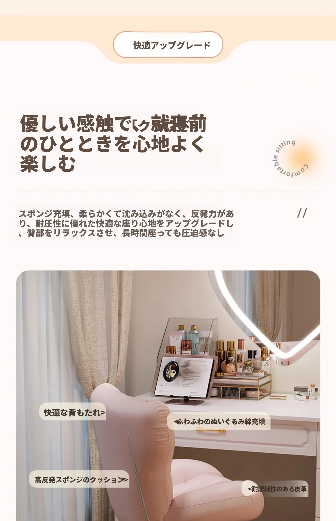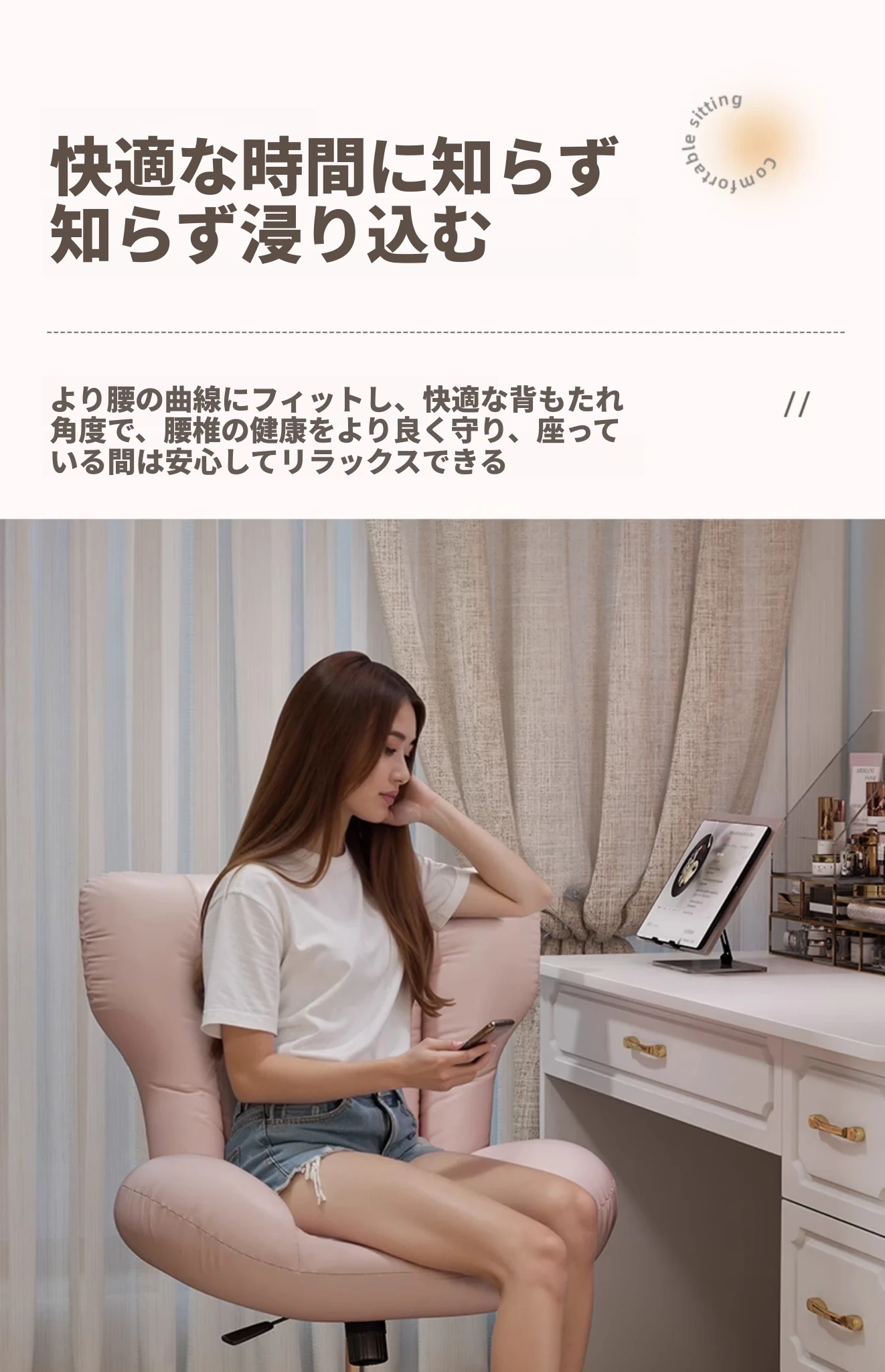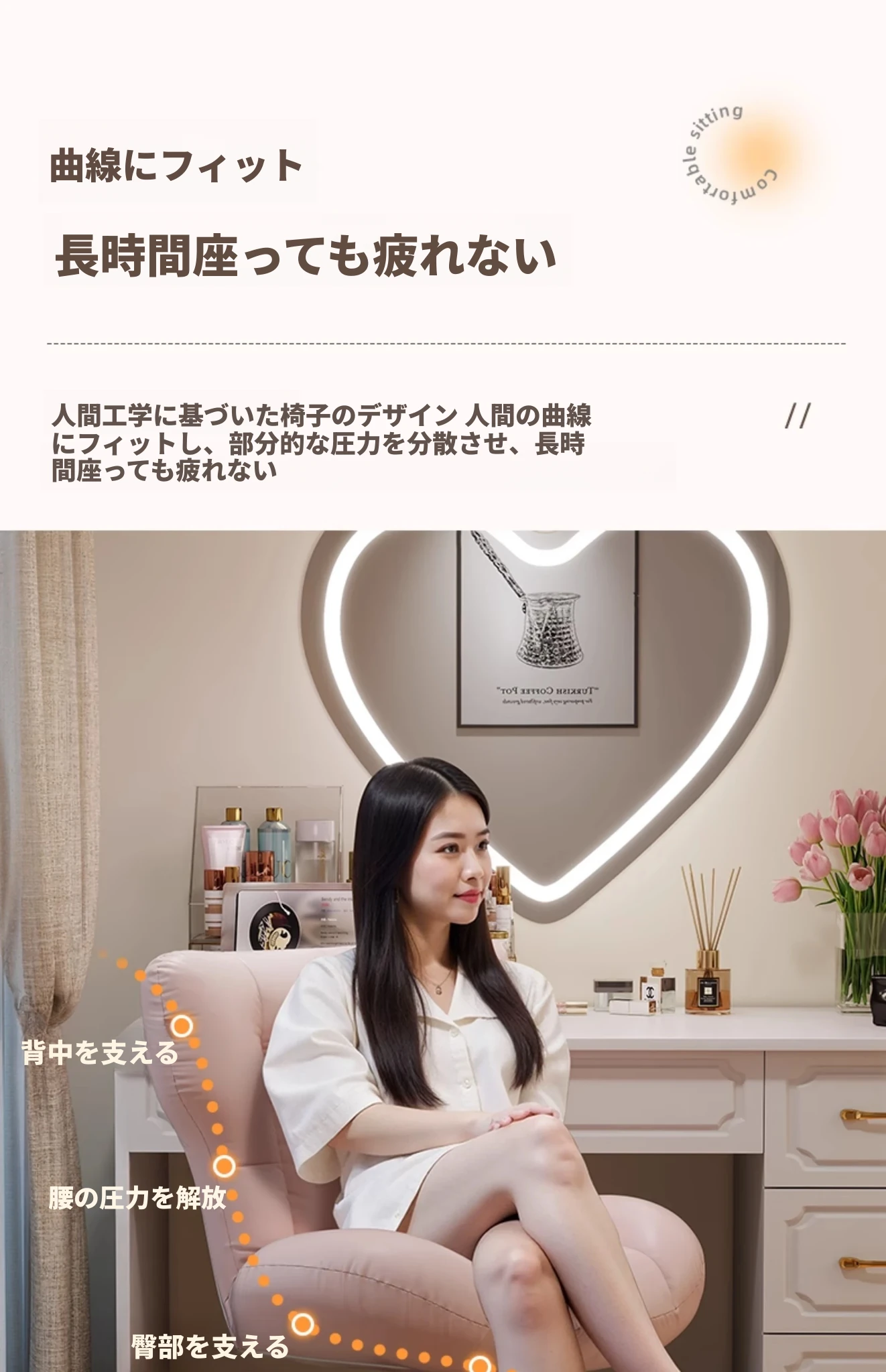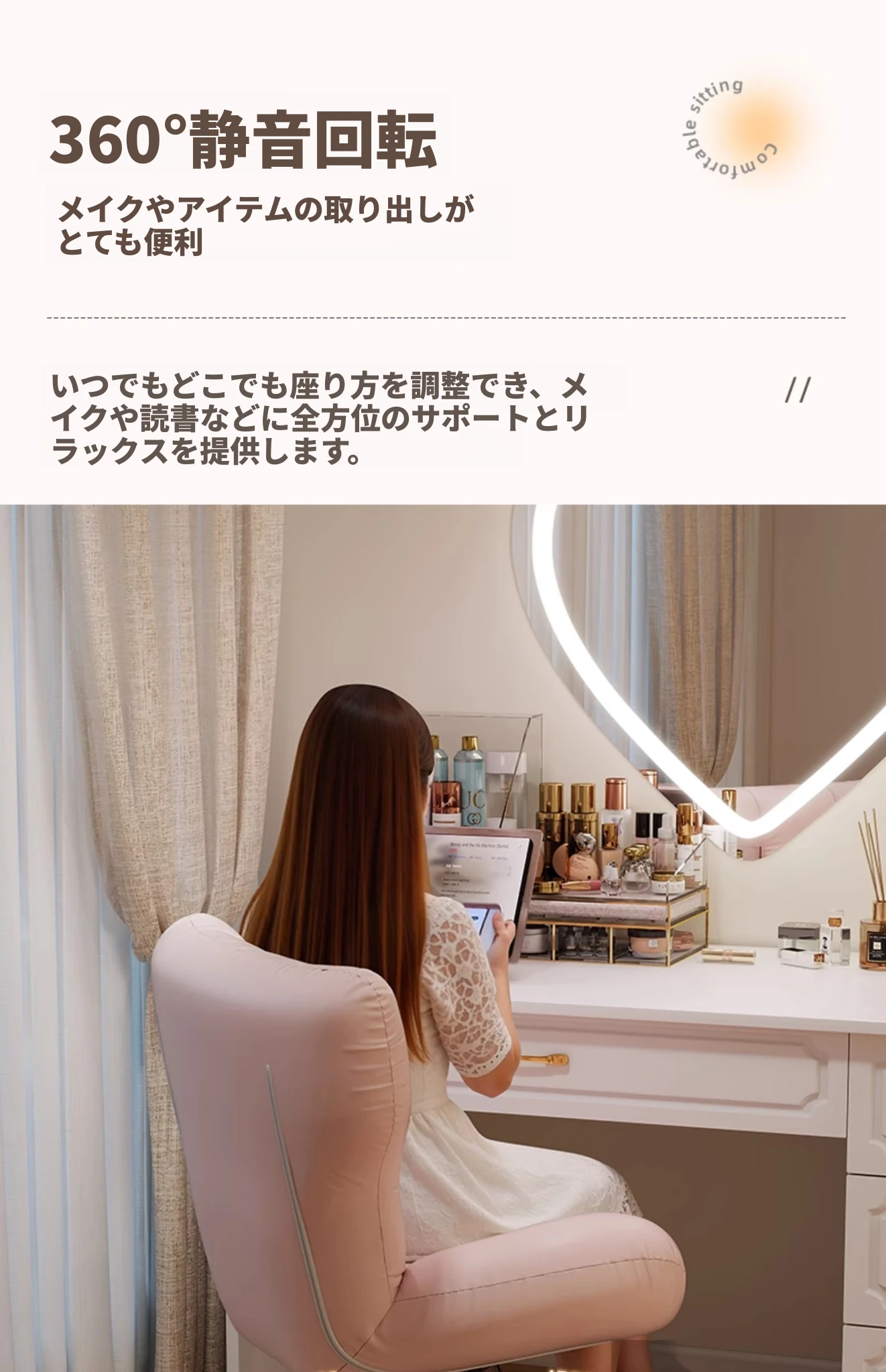 軽やかな上質感!昇降&回転機能付きの女性用ドレッサーチェア - おしゃれな寝室にぴったりの化粧台用スツール。快適な座り心地で、あなたの美容タイムをより特別に演出します!