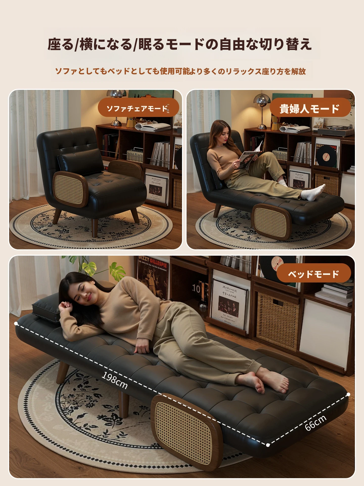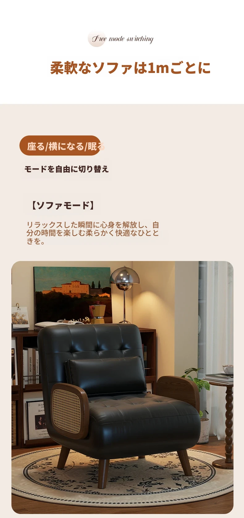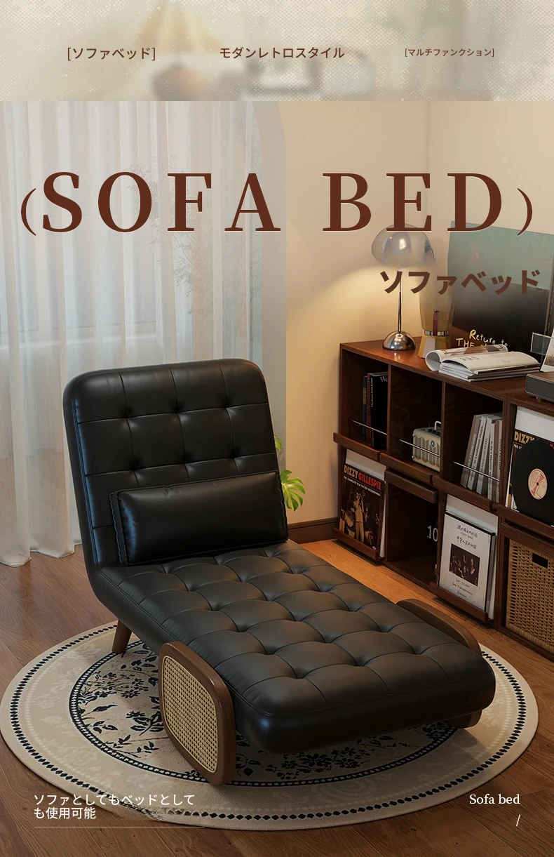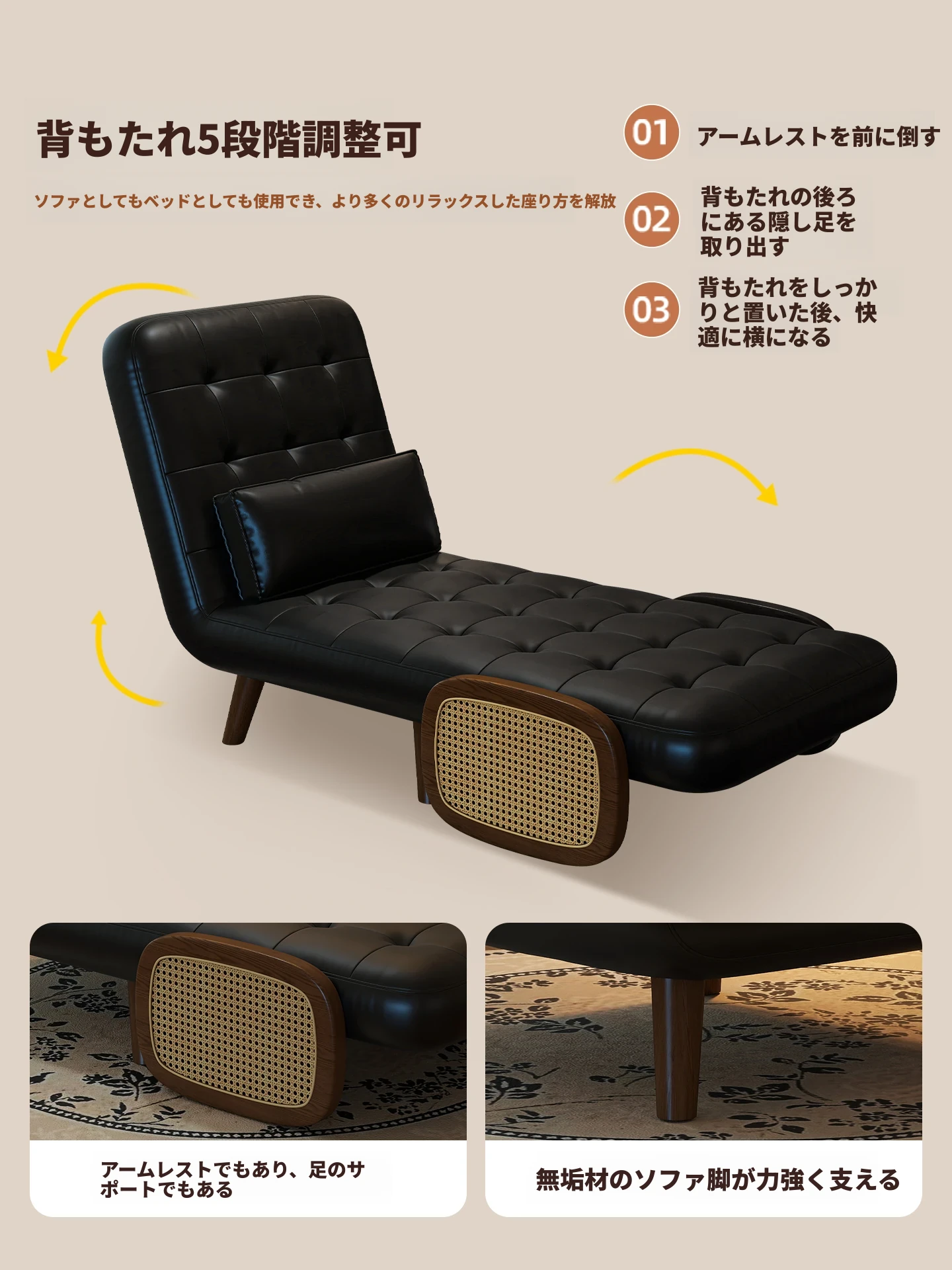 折りたたみソファベッド 一人用 多機能ソファベッド 椅子としても使える伸縮式ソファ 中古風のブラックソファ レトロスタイルの宿泊用ベッド【快適な眠りとくつろぎを実現】