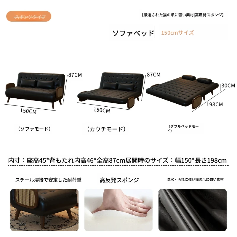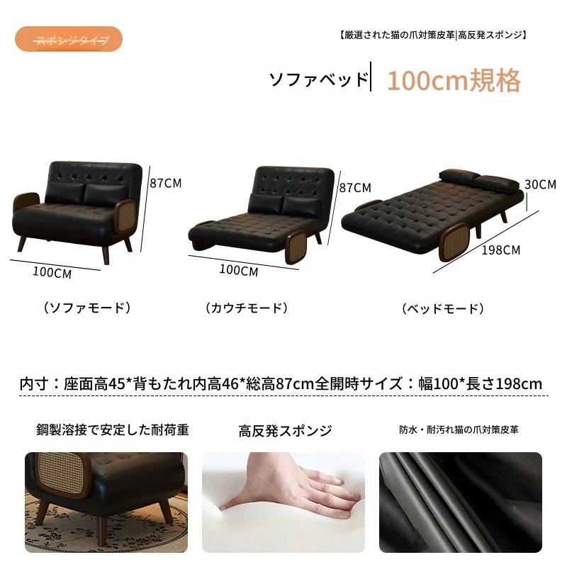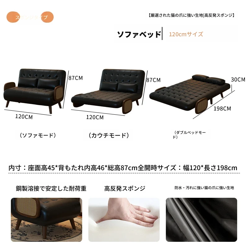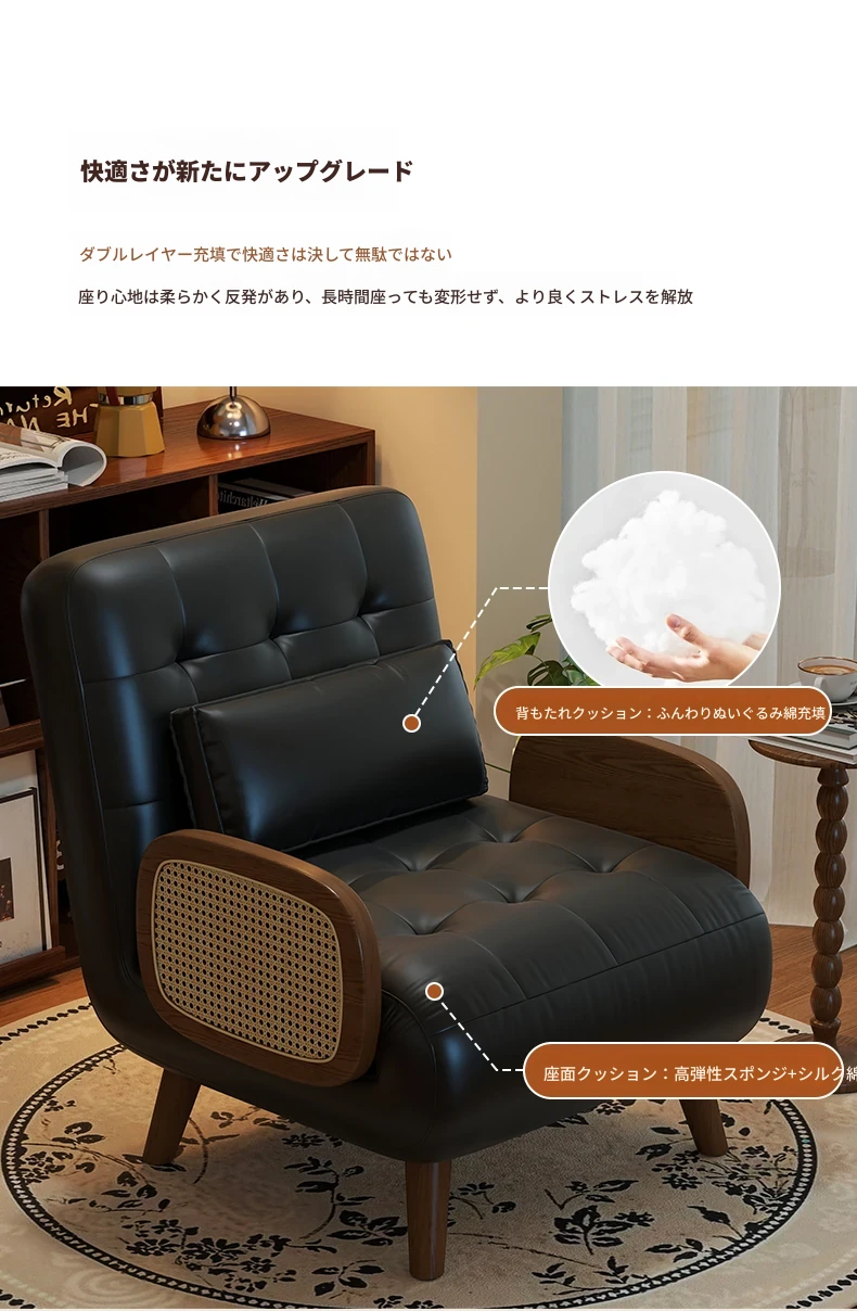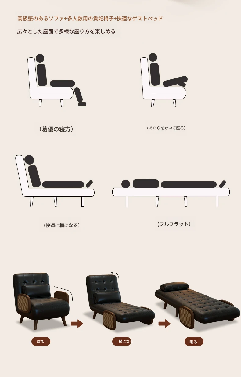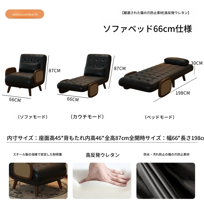 折りたたみソファベッド 一人用 多機能ソファベッド 椅子としても使える伸縮式ソファ 中古風のブラックソファ レトロスタイルの宿泊用ベッド【快適な眠りとくつろぎを実現】