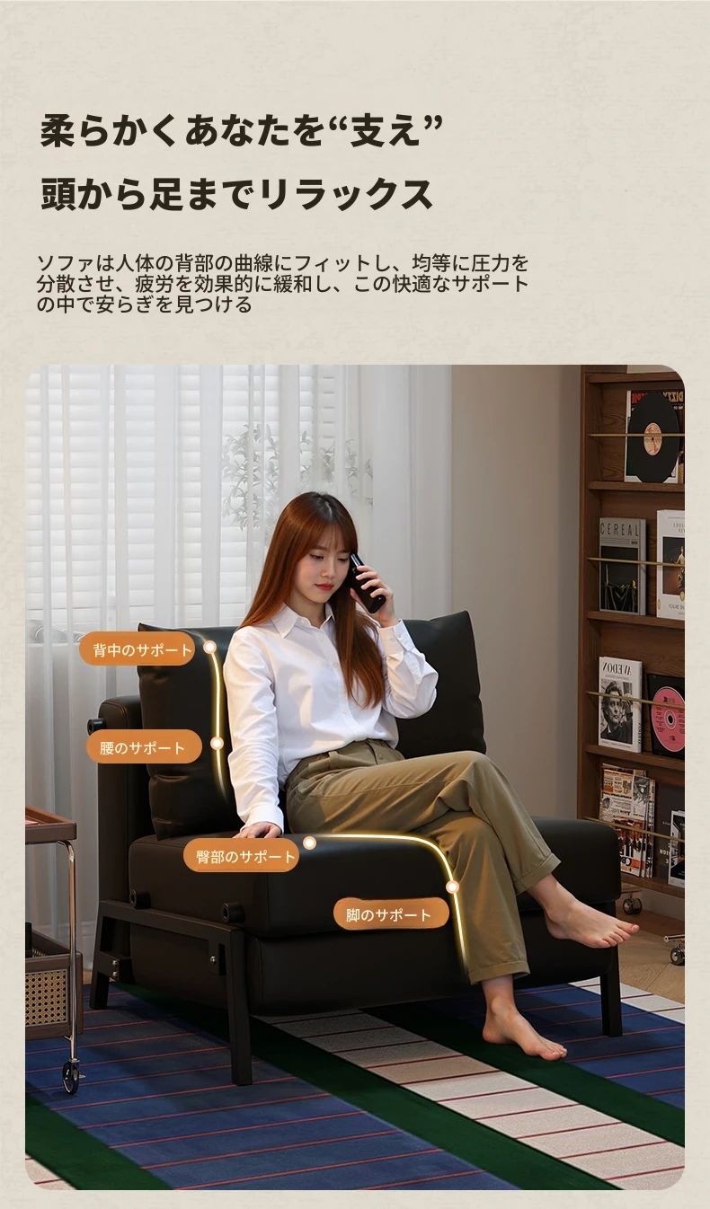 ソファ椅子折りたたみベッド|一人用昼寝の必須アイテム!リクライニング機能付きの多用途チェア|限られたスペースに最適な伸縮式リラックスチェア!