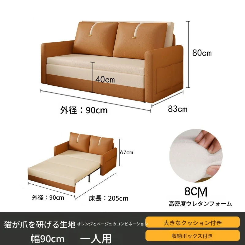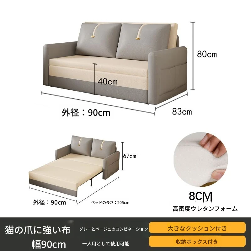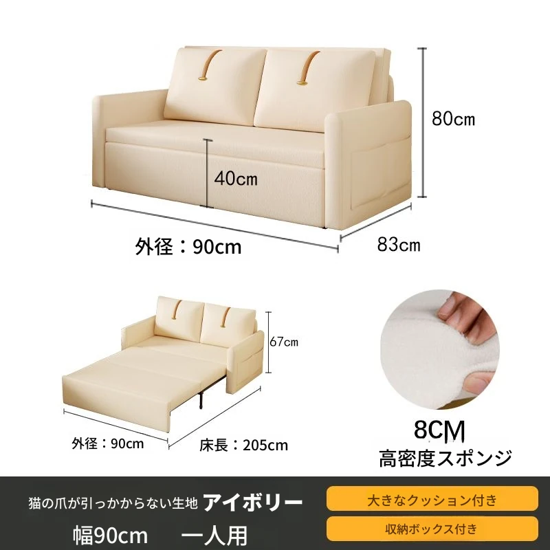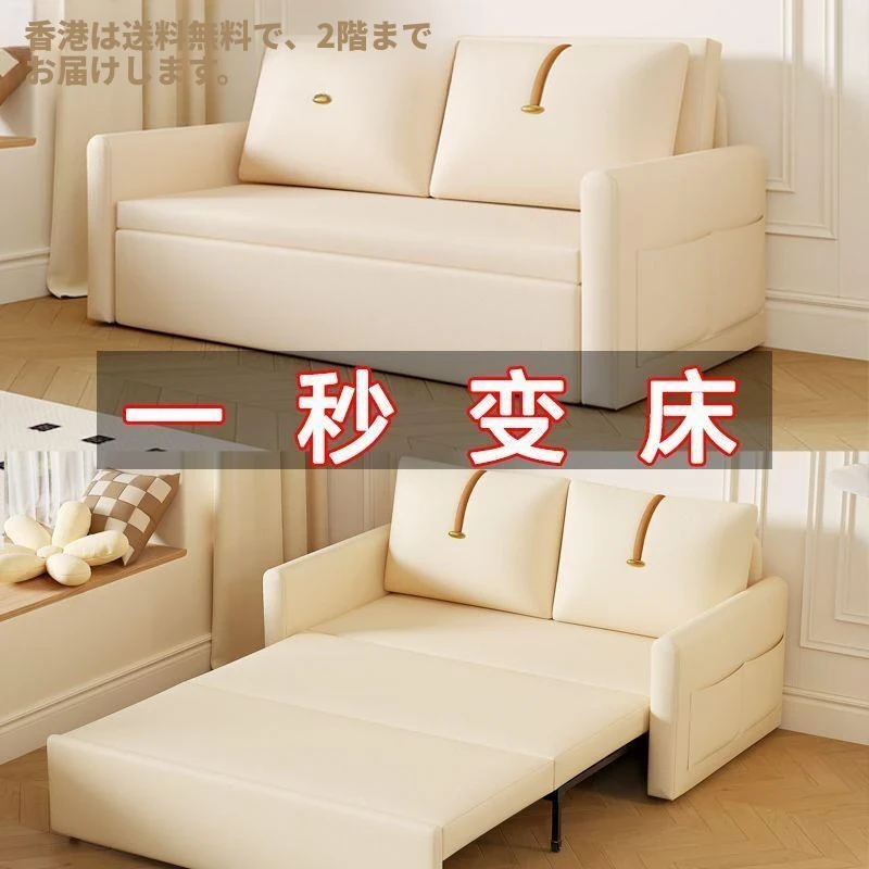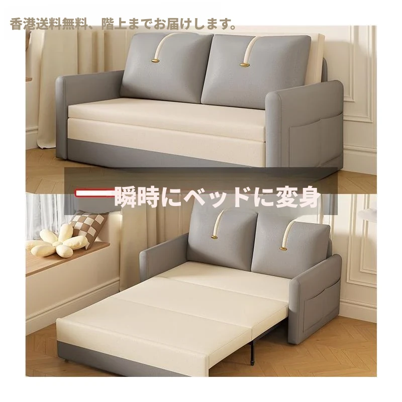 【香港送料無料】ふわふわクリーム風ソファベッド!座っても寝てもOK!折りたたみ&引き出し式、コンパクトなリビングにぴったりの2024年モデル!