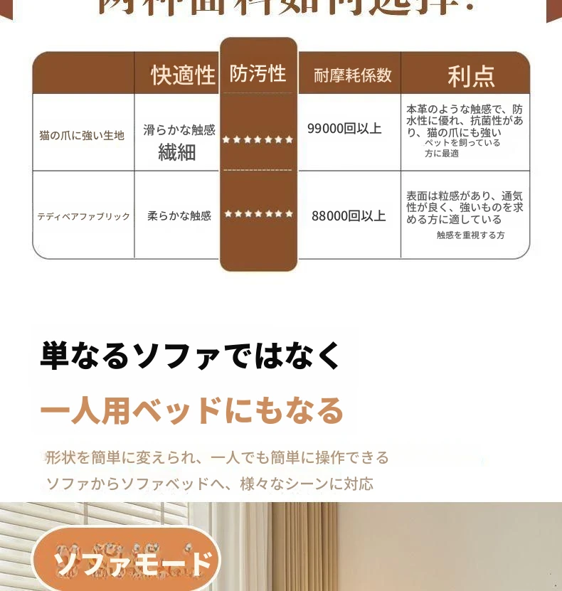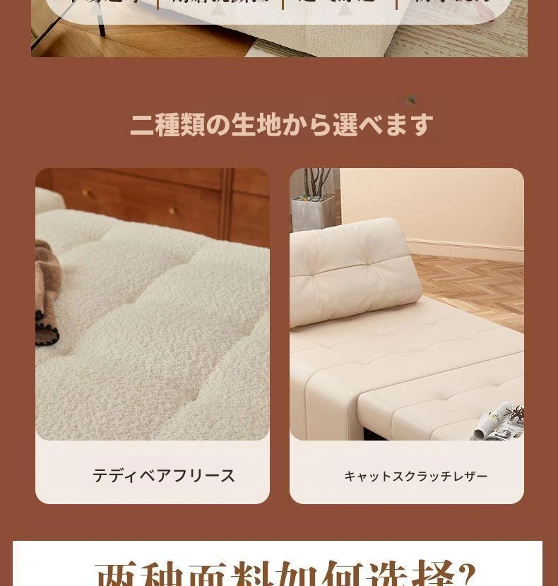 背もたれ可動式【1.05mコーヒー】キャットスクラッチレザー