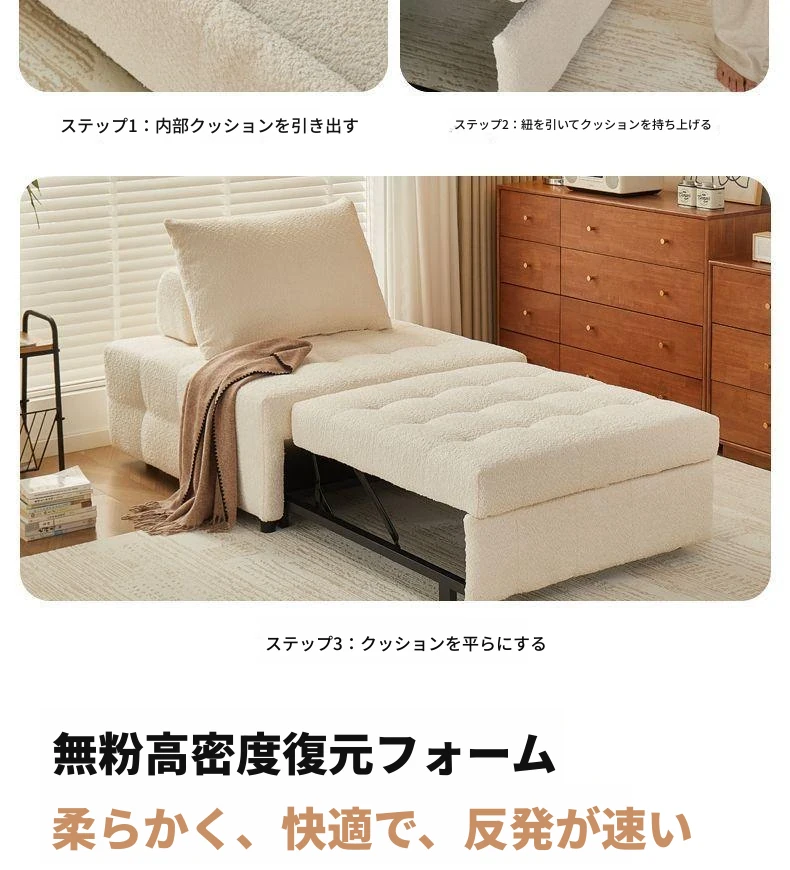 背もたれ可動式【1.25mラムフリース】肌触り良好