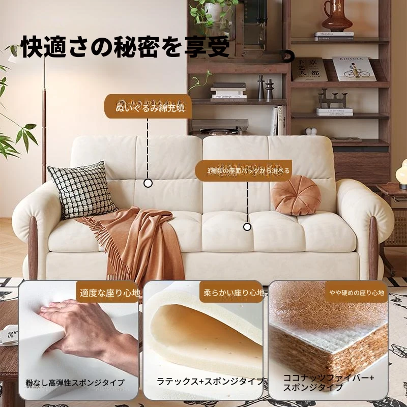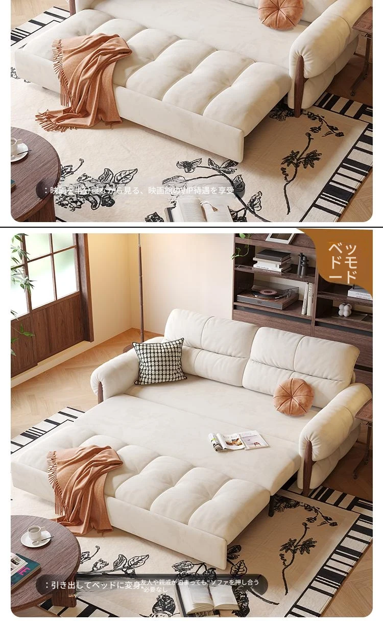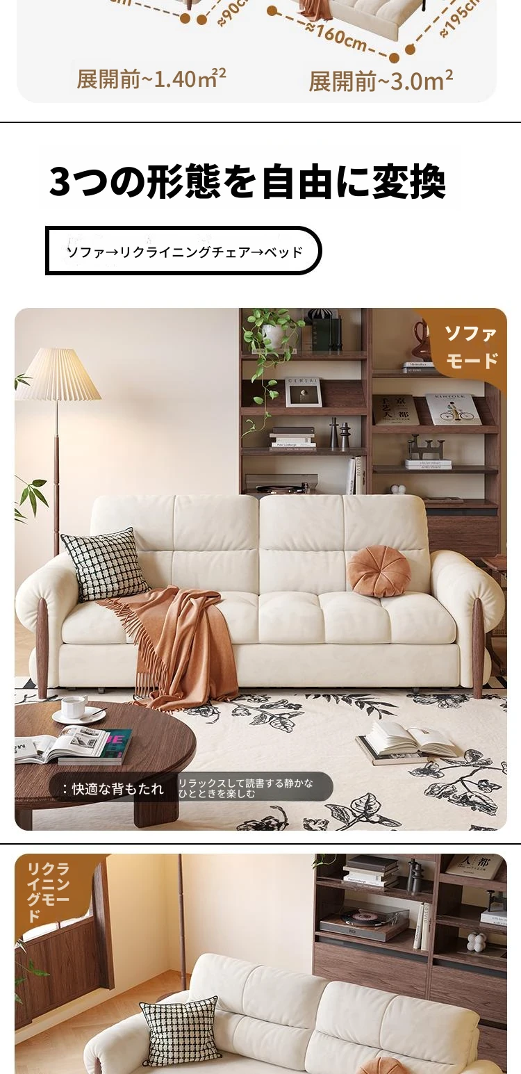 【香港送料無料】天然木の風合いが魅力!多機能ソファベッド - 小型リビングにぴったりな収納付き二用途ソファベッド。快適な空間を演出します!