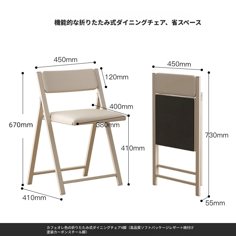 【ミルクコーヒー色】折りたたみ式ダイニングチェア*4