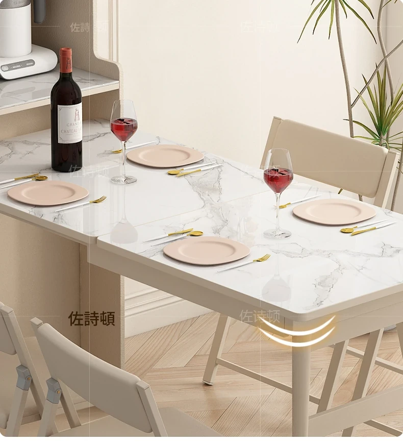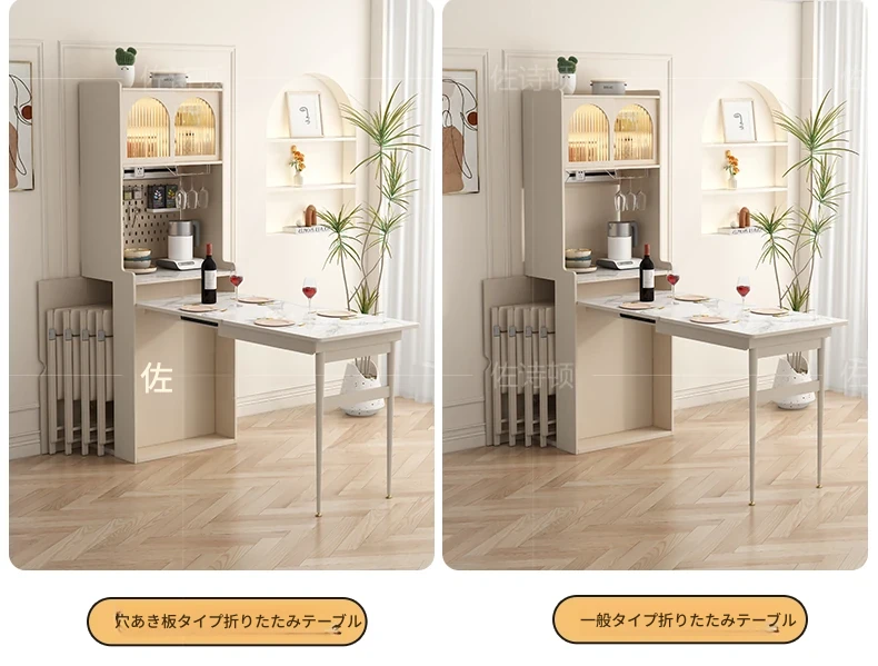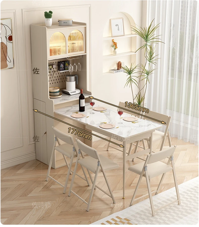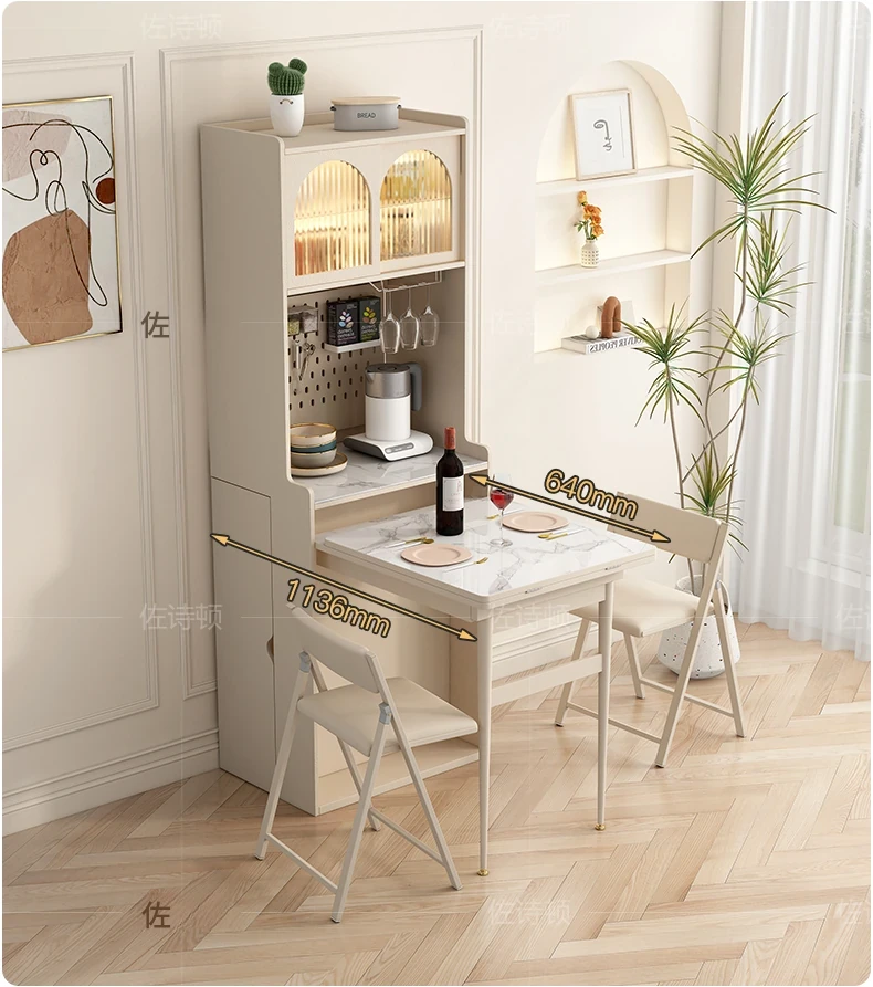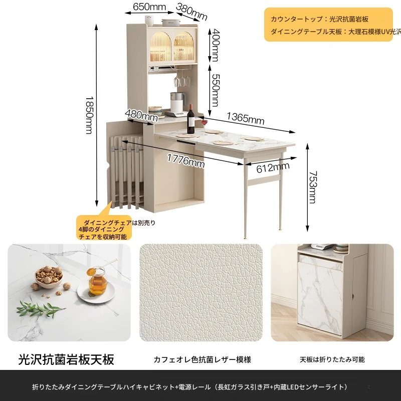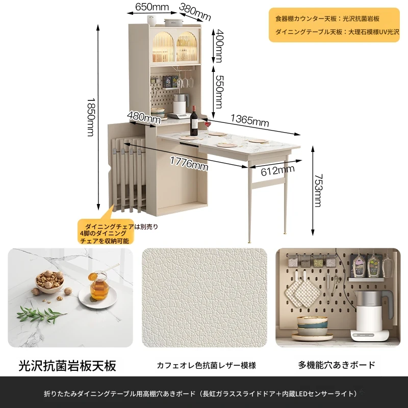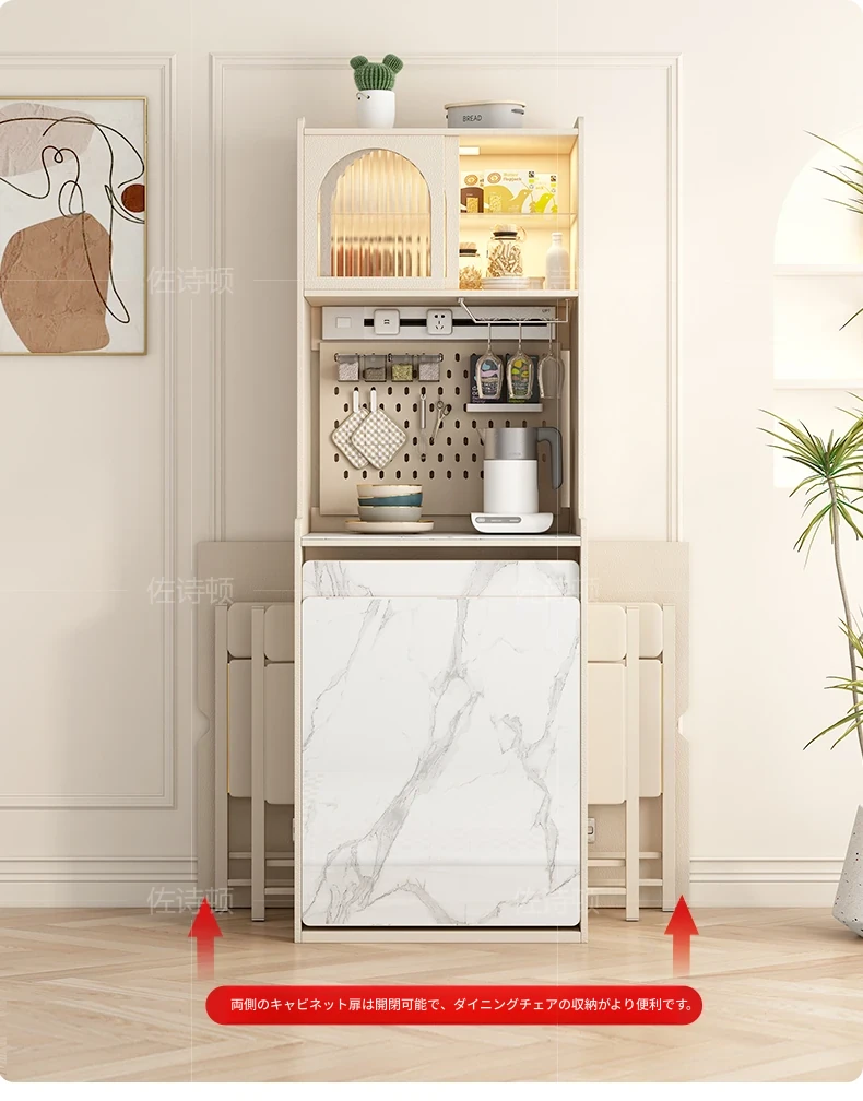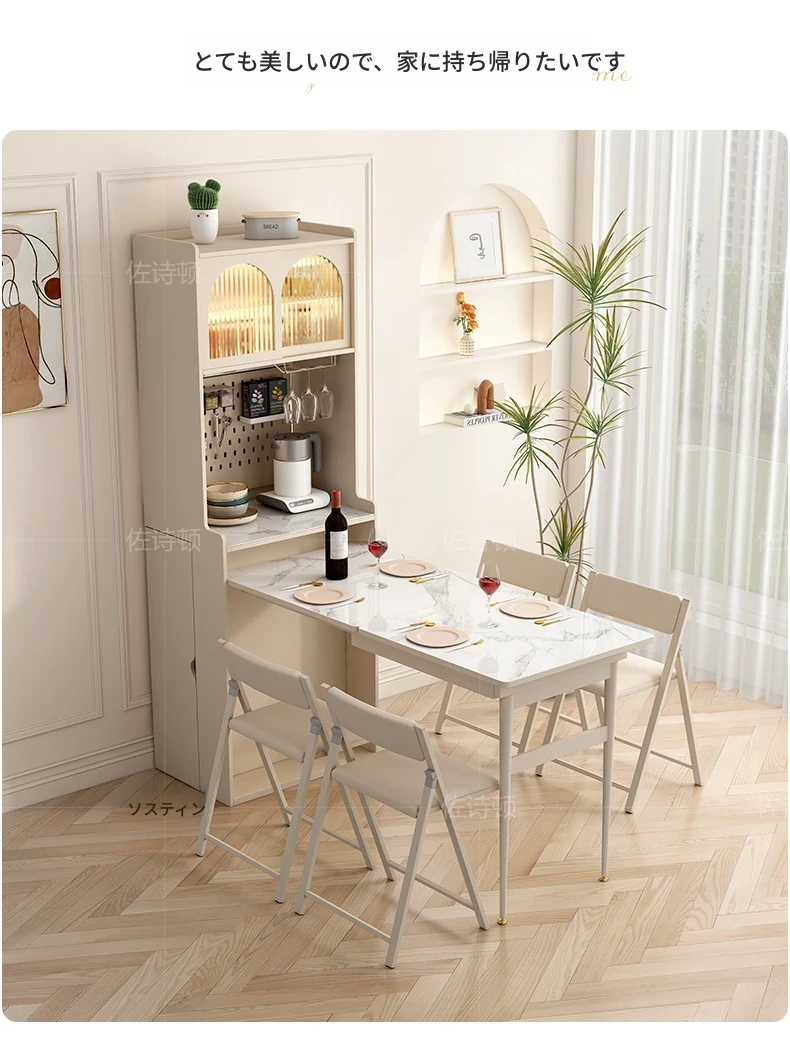 ダイニングテーブルとサイドキャビネット一体型+ボード+折りたたみ式ダイニングチェア*2