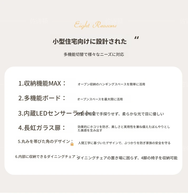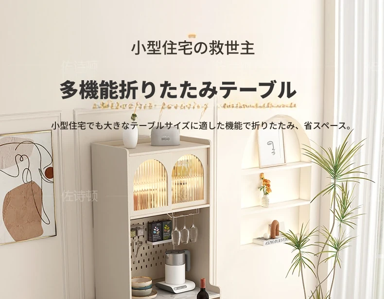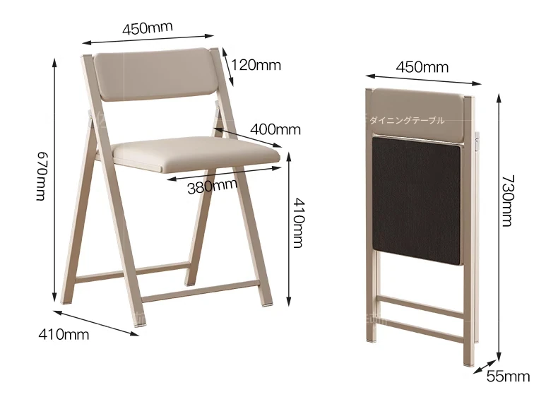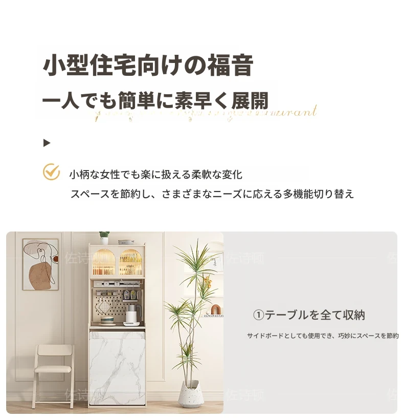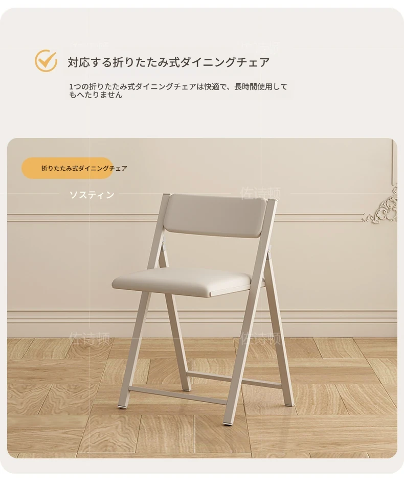ダイニングテーブルとサイドキャビネット一体型+折りたたみ式ダイニングチェア*2