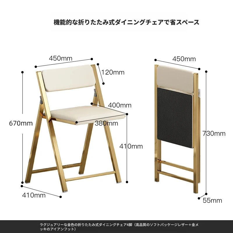 【ラグジュアリーゴールド】折りたたみ式ダイニングチェア*4