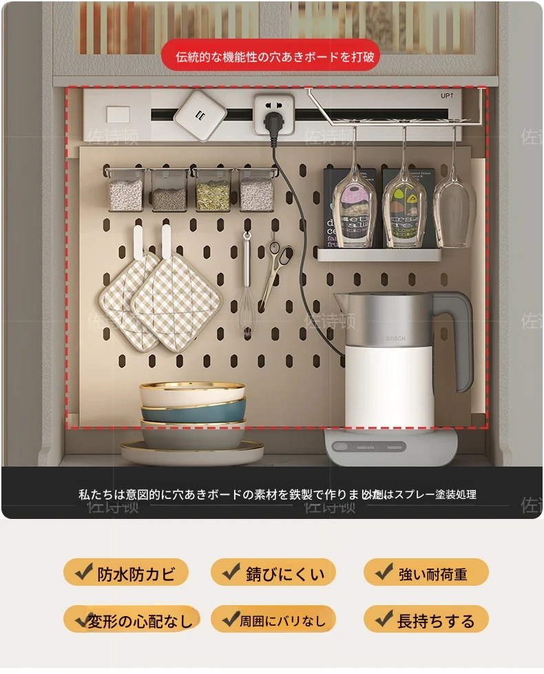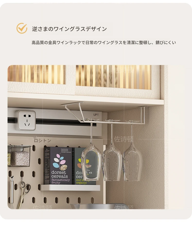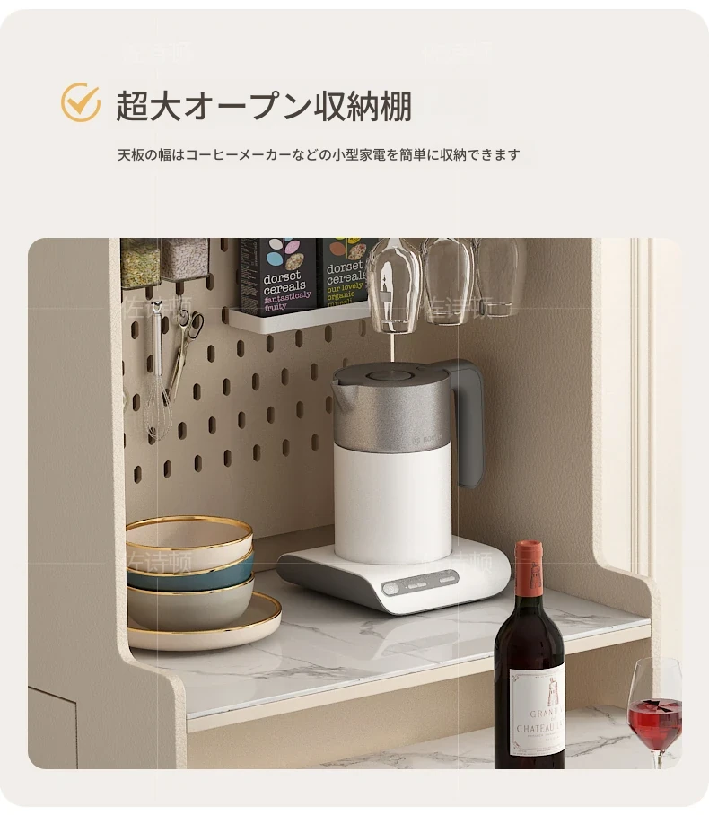ダイニングテーブルとサイドキャビネット一体型+ボード+移動式電源タップ