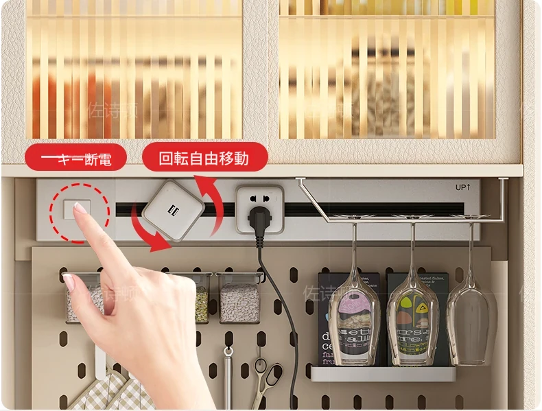 ダイニングテーブルとサイドキャビネット一体型+移動式電源タップ