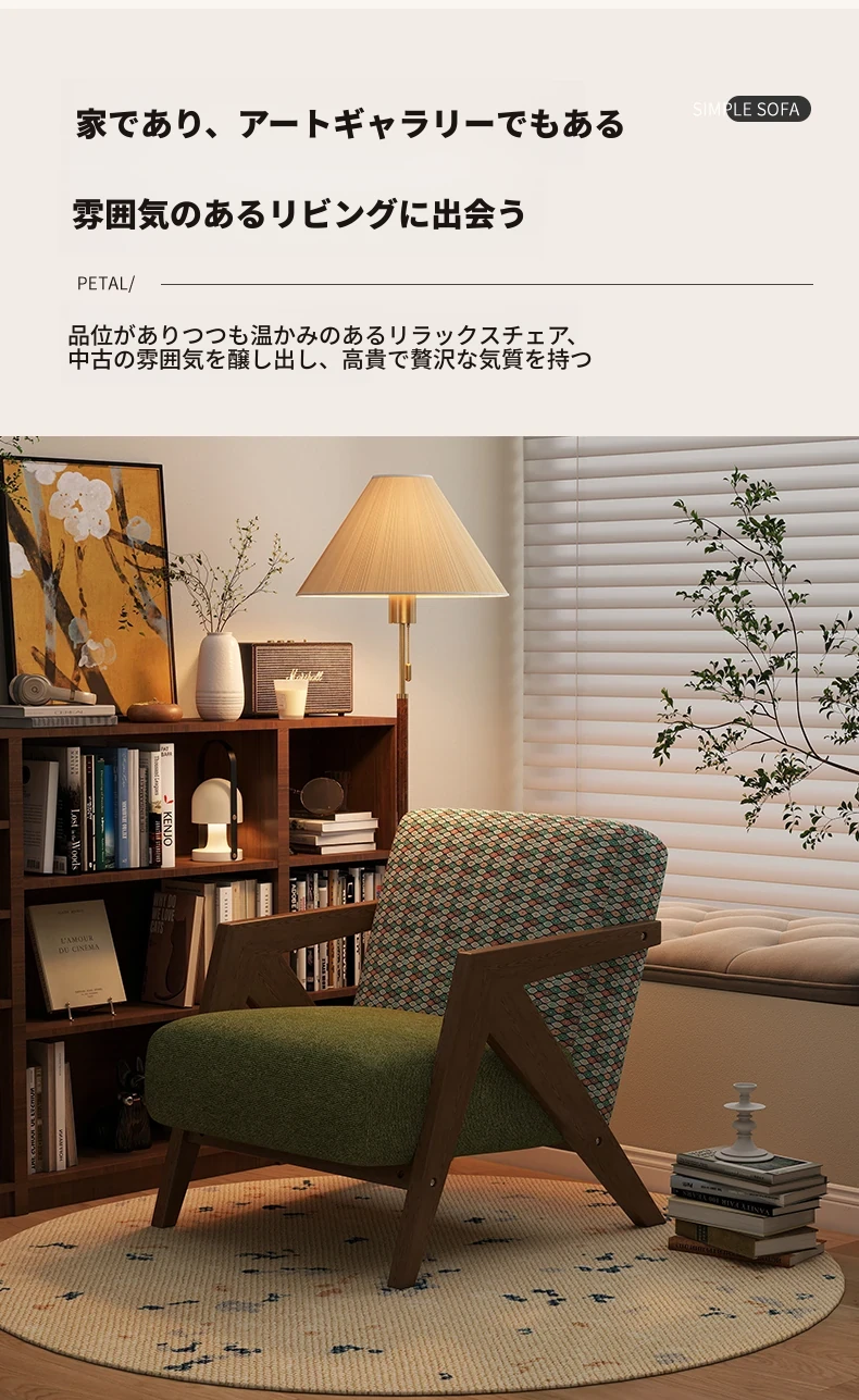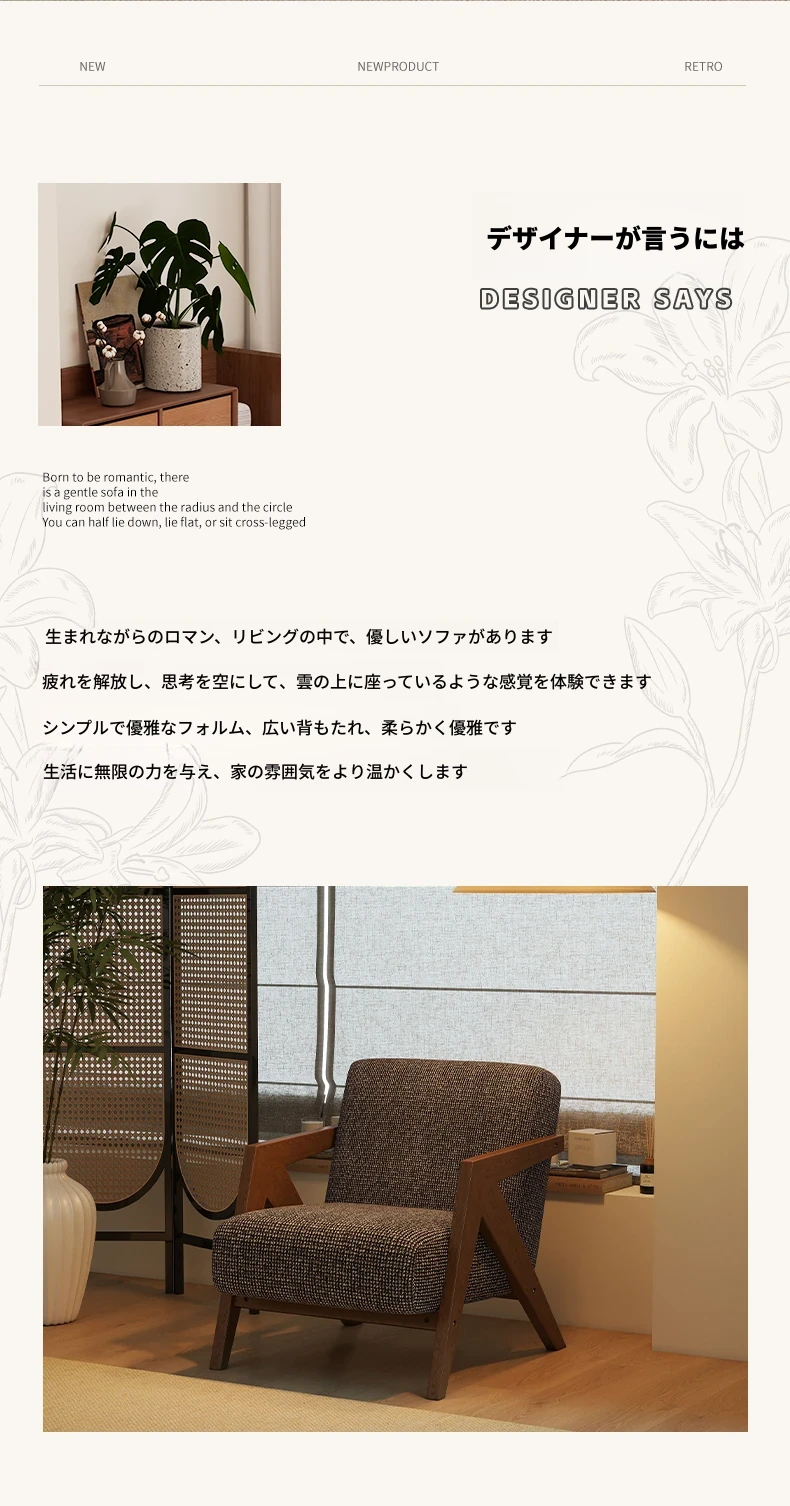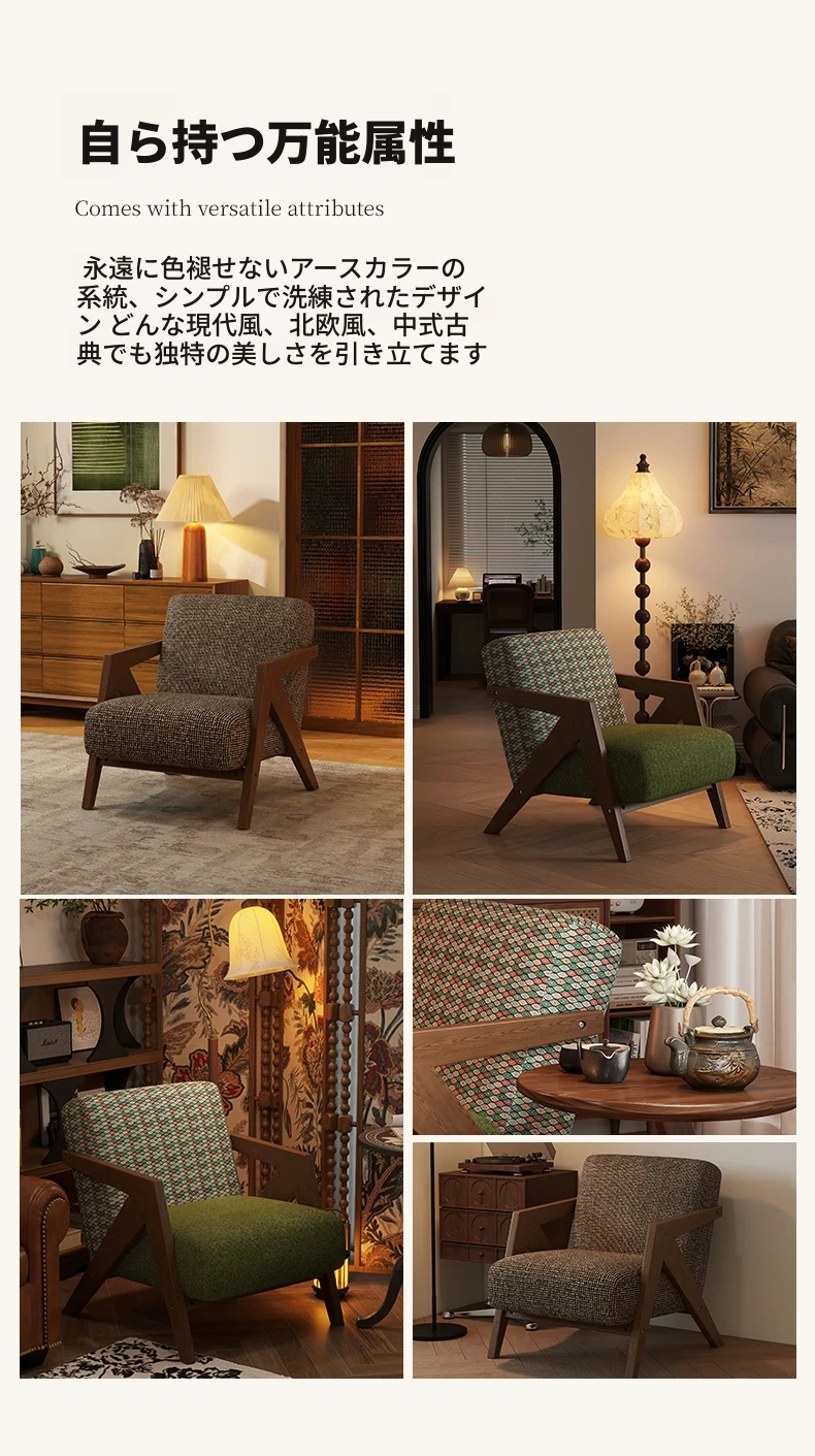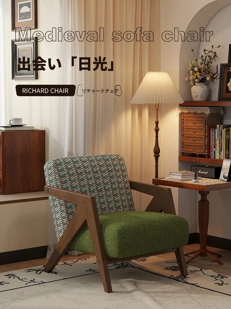 フレンチアンティークスタイルの一人掛けソファチェア - リチャードデザイン、リビングやバルコニーに最適なリラックスチェア。無垢材使用で高級感溢れる、ホテルやゲストハウスにもぴったりな一品!