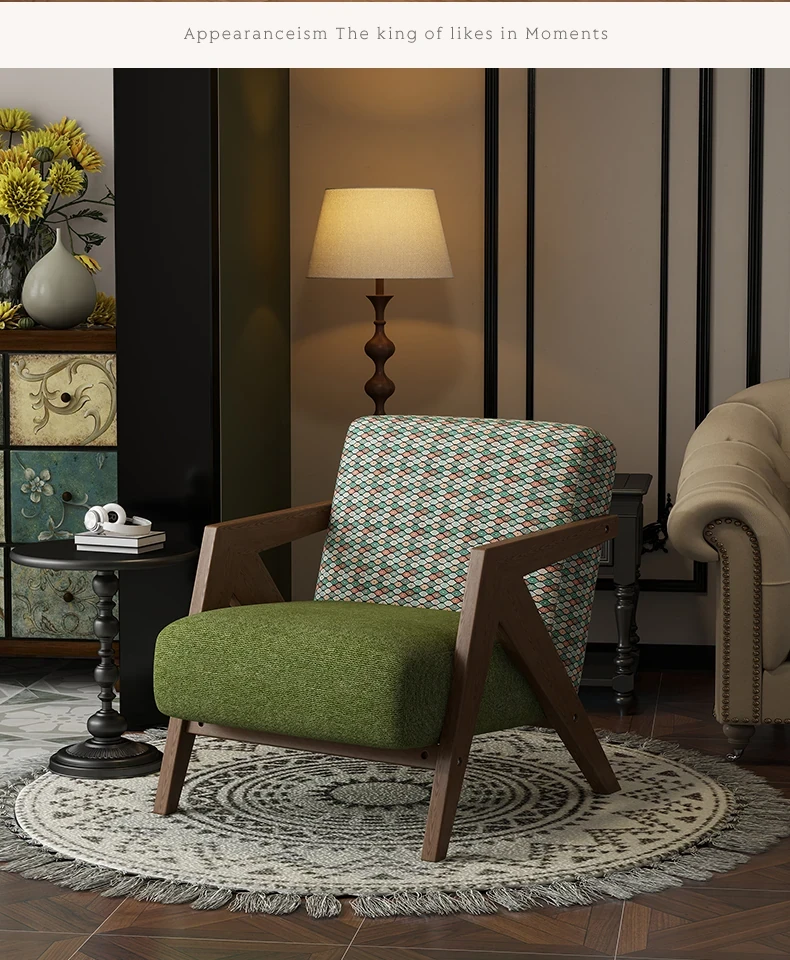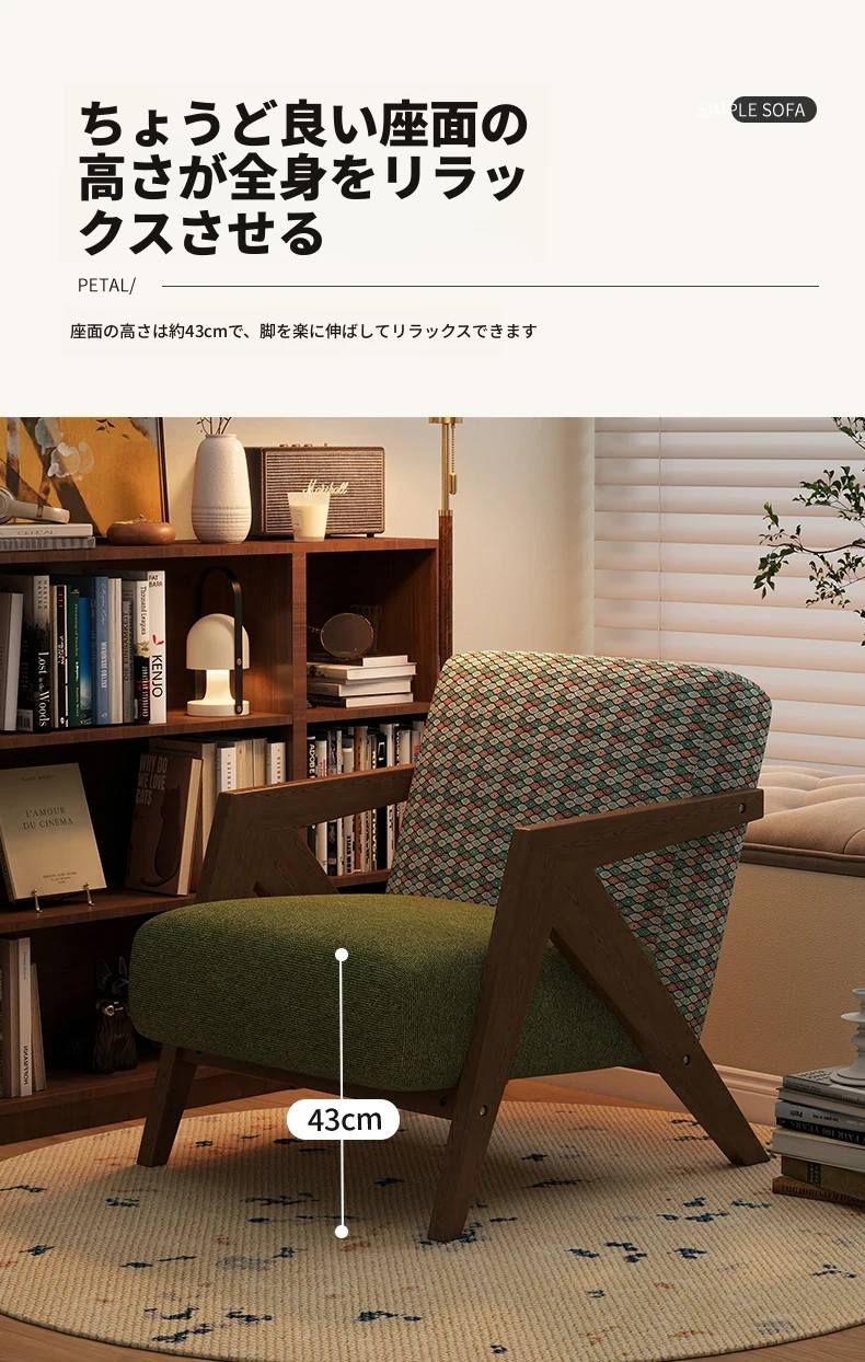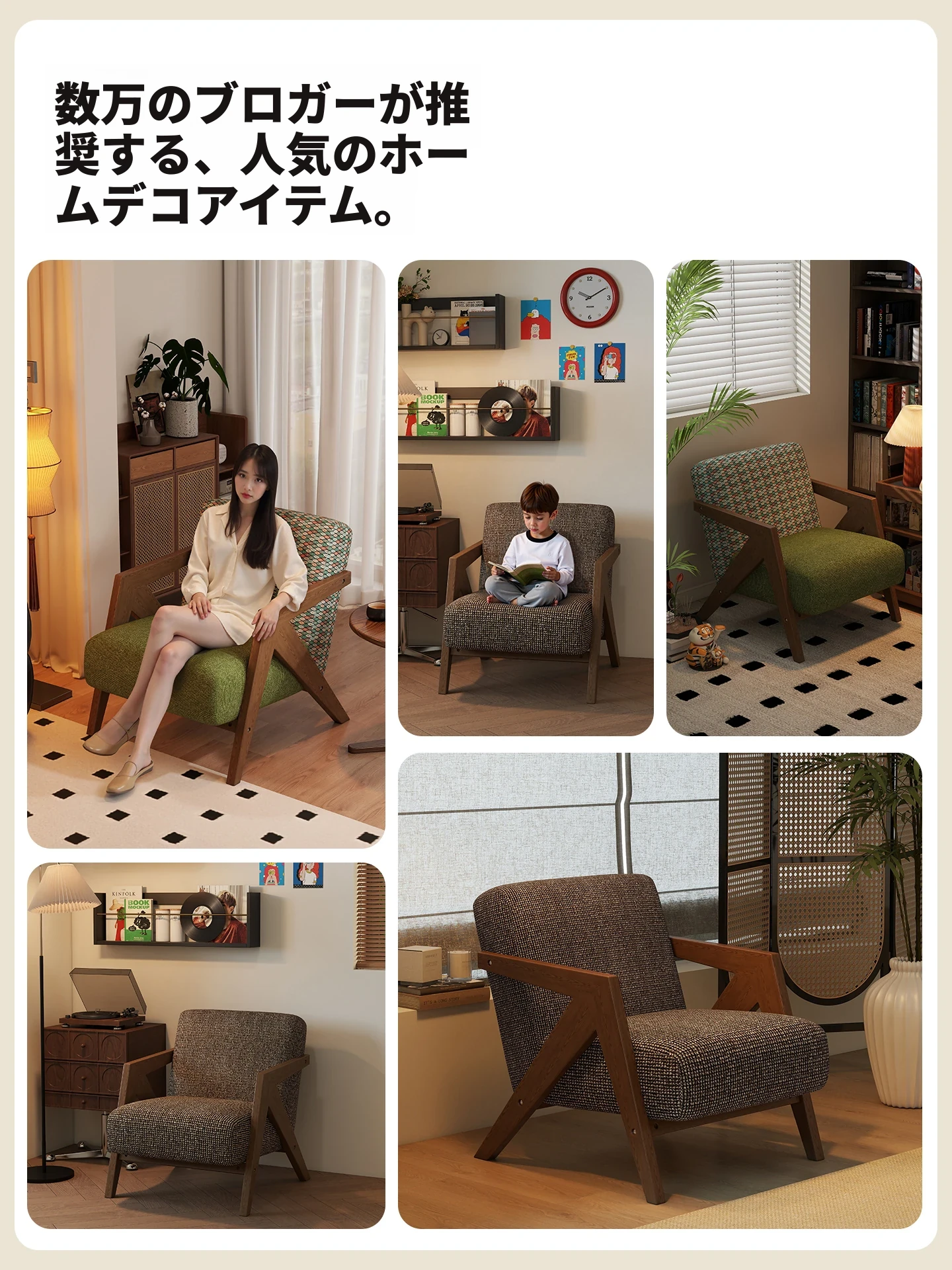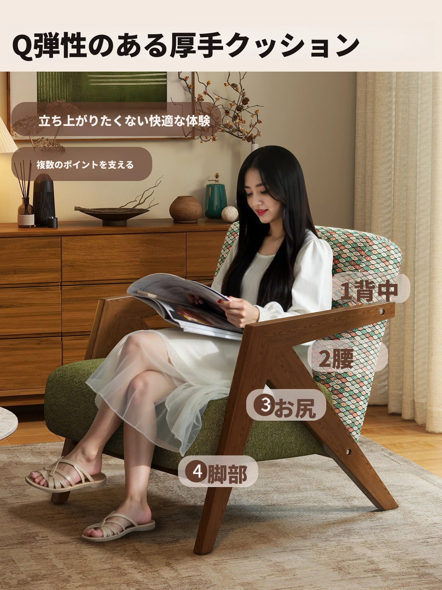 フレンチアンティークスタイルの一人掛けソファチェア - リチャードデザイン、リビングやバルコニーに最適なリラックスチェア。無垢材使用で高級感溢れる、ホテルやゲストハウスにもぴったりな一品!