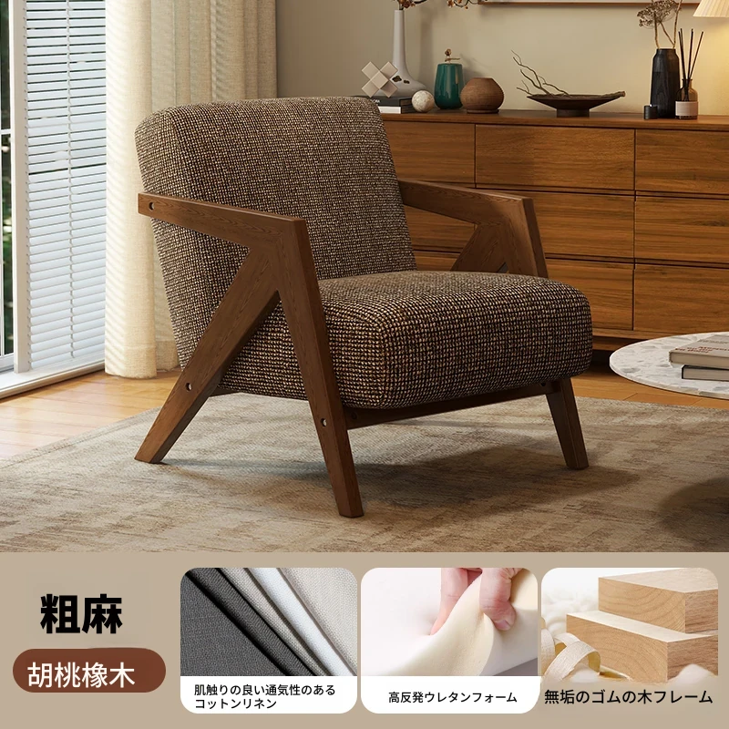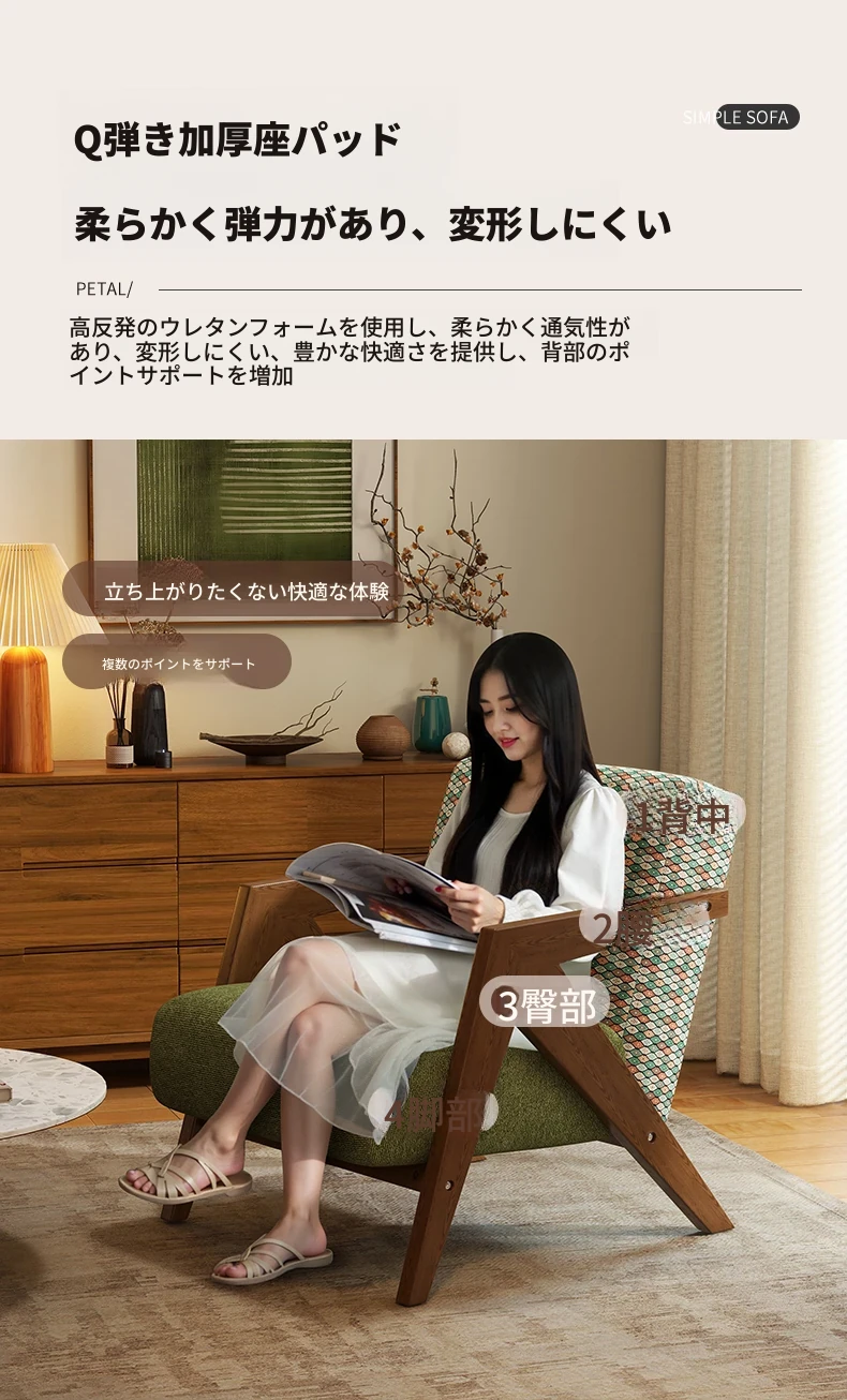 ウーキン材の無垢材製ミニマルリビング用コットンリネンソファベッド - 現代中式デザイン、書斎にも最適!多機能&折りたたみ可能で、スペースを有効活用。快適な座り心地をお楽しみください!