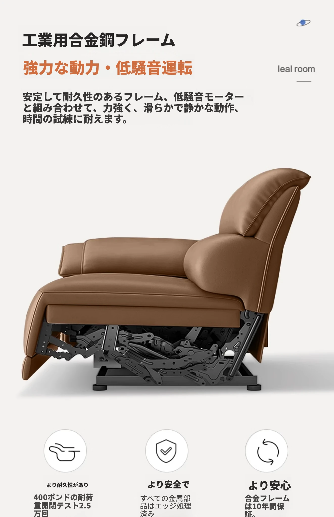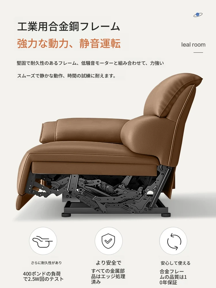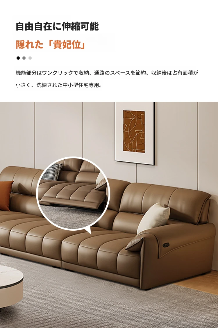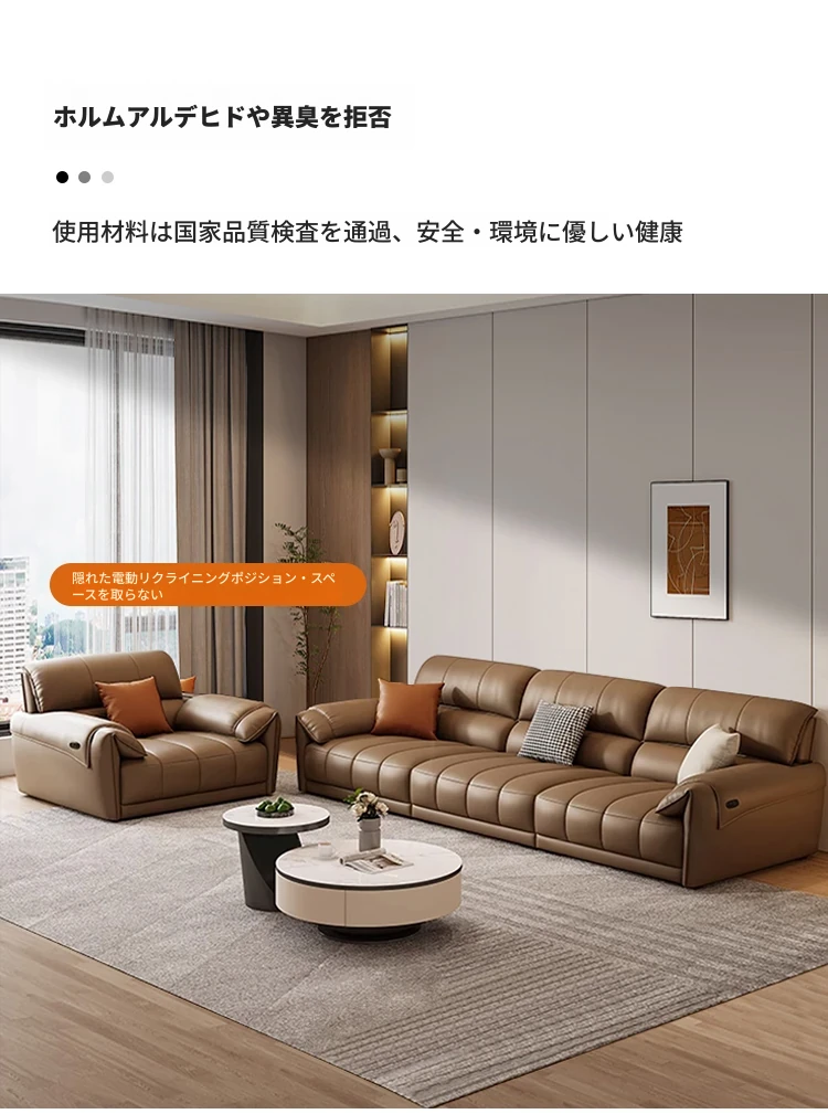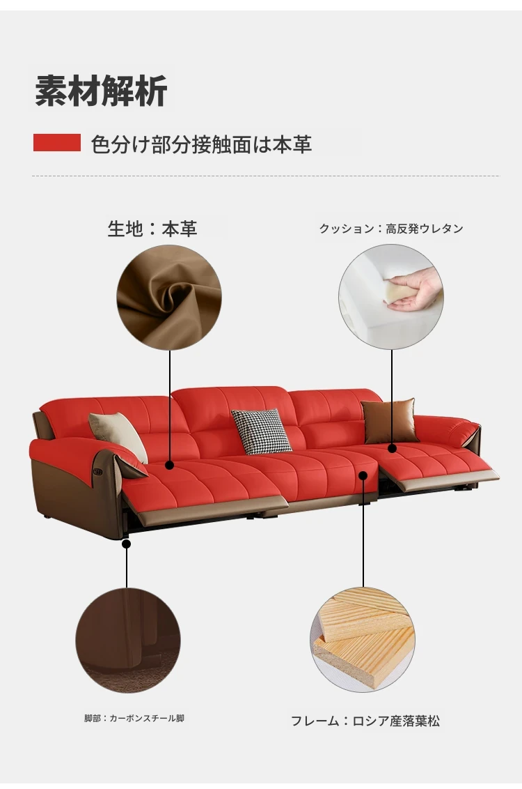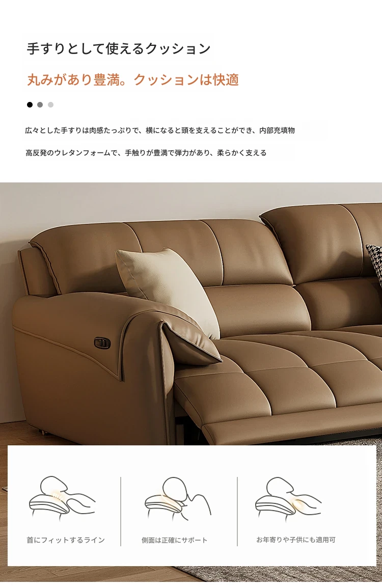 【一層牛革:シングル電動機能付き】2.6メートルトリプルソファ