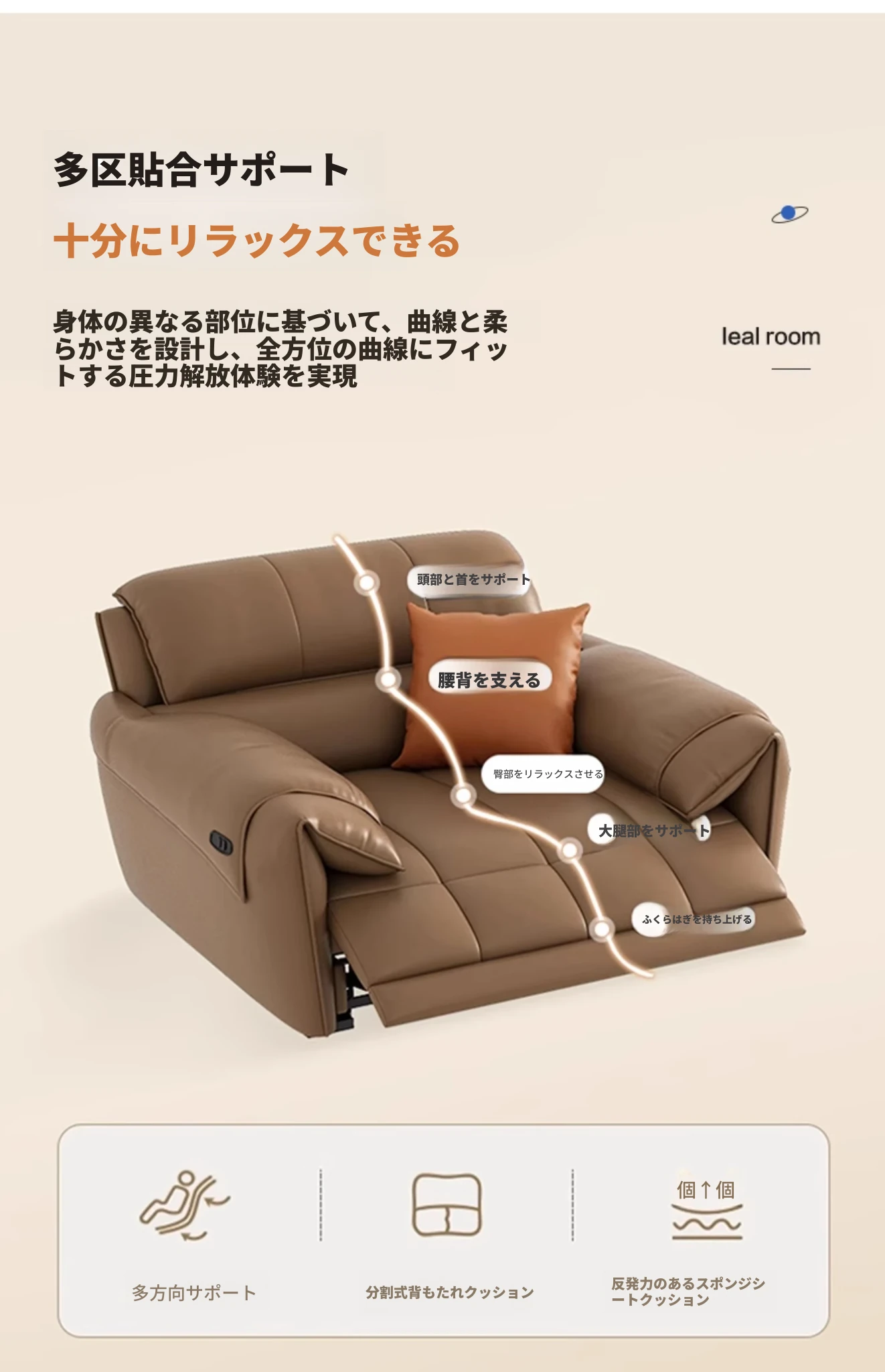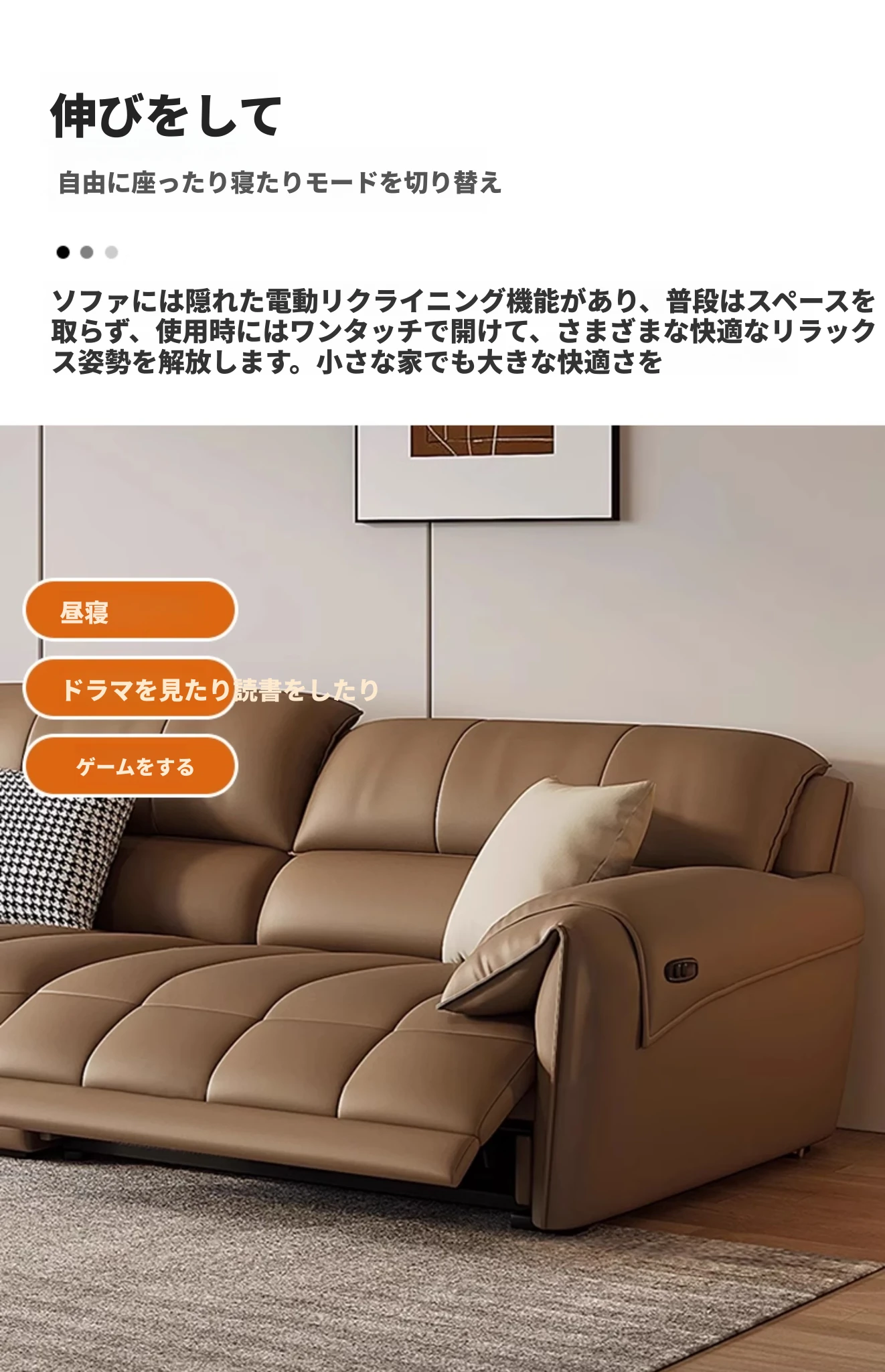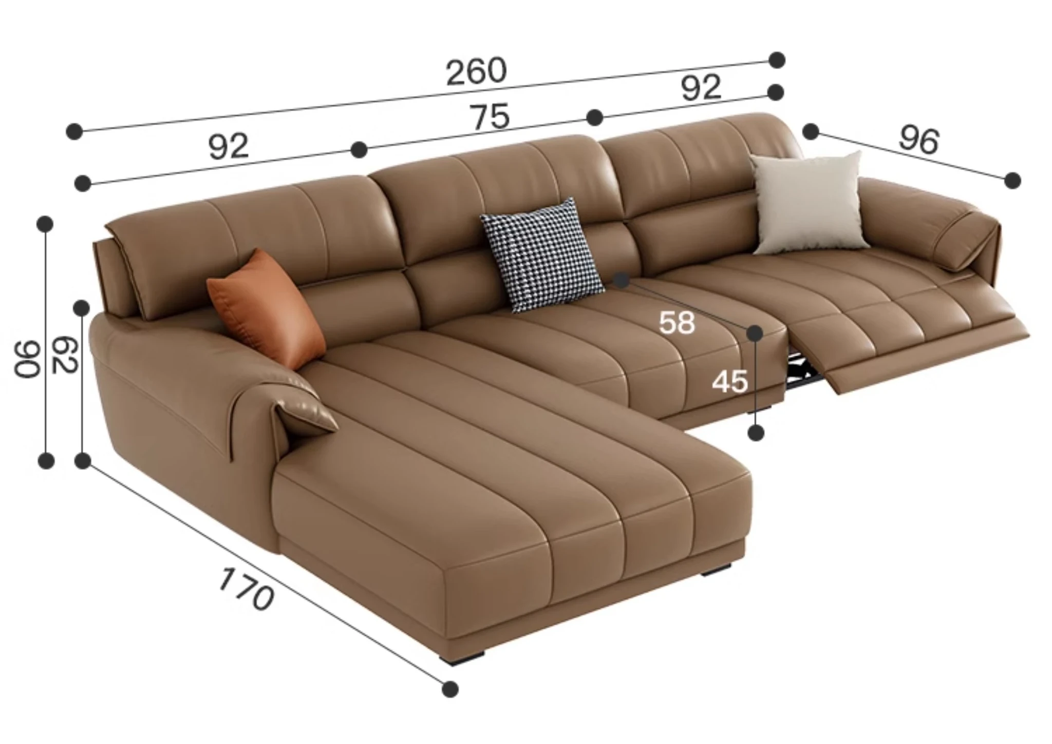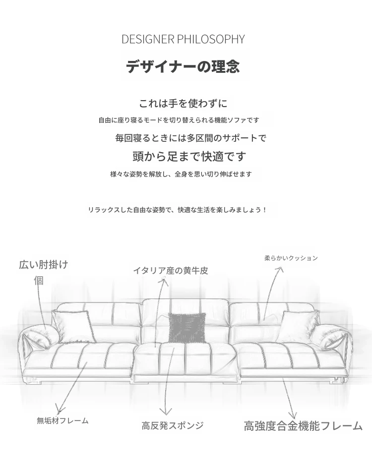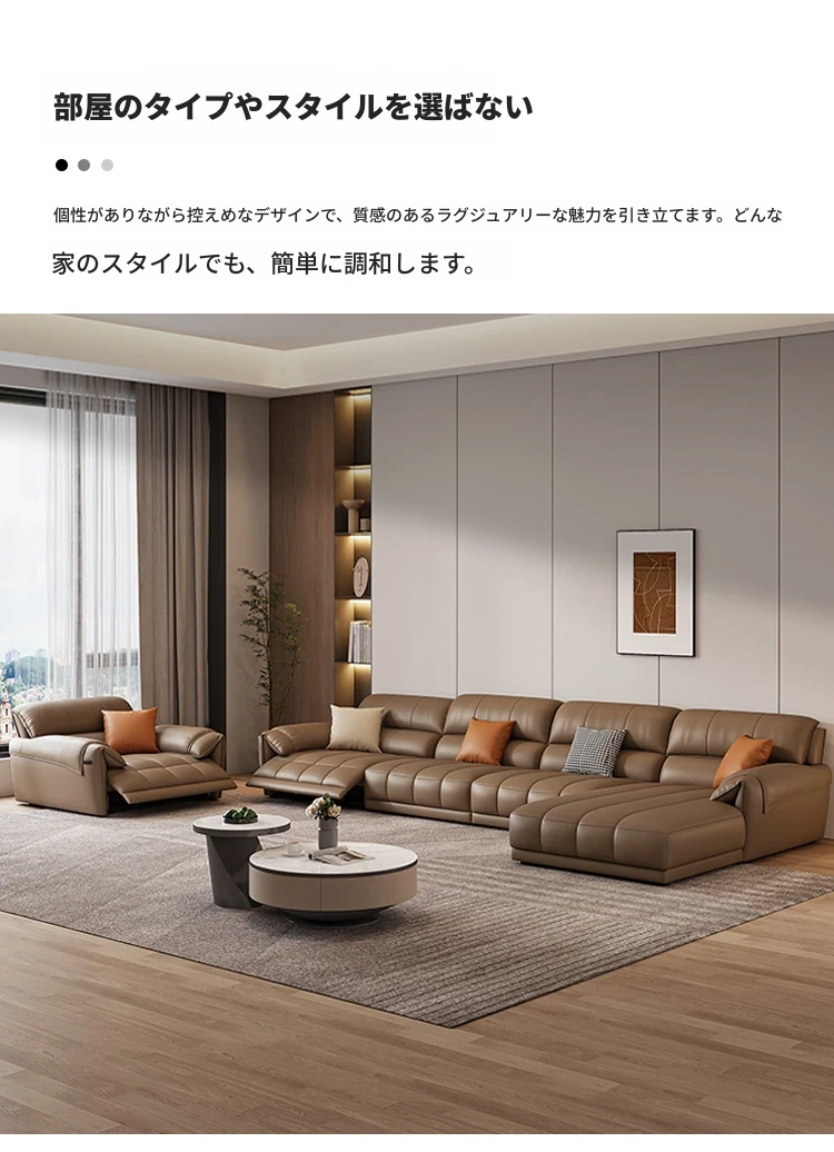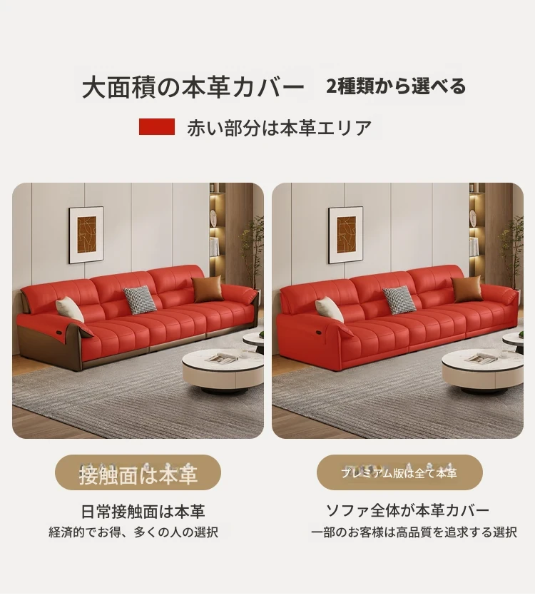 【一層牛革:シングル電動機能付き】2.6メートルダブル+カウチ
