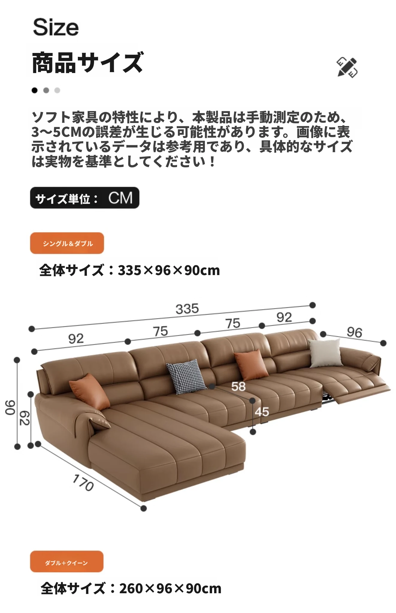 【一層牛革:シングル電動機能付き】3.35メートルダブル+シングル+カウチ
