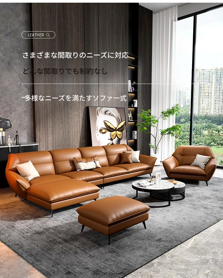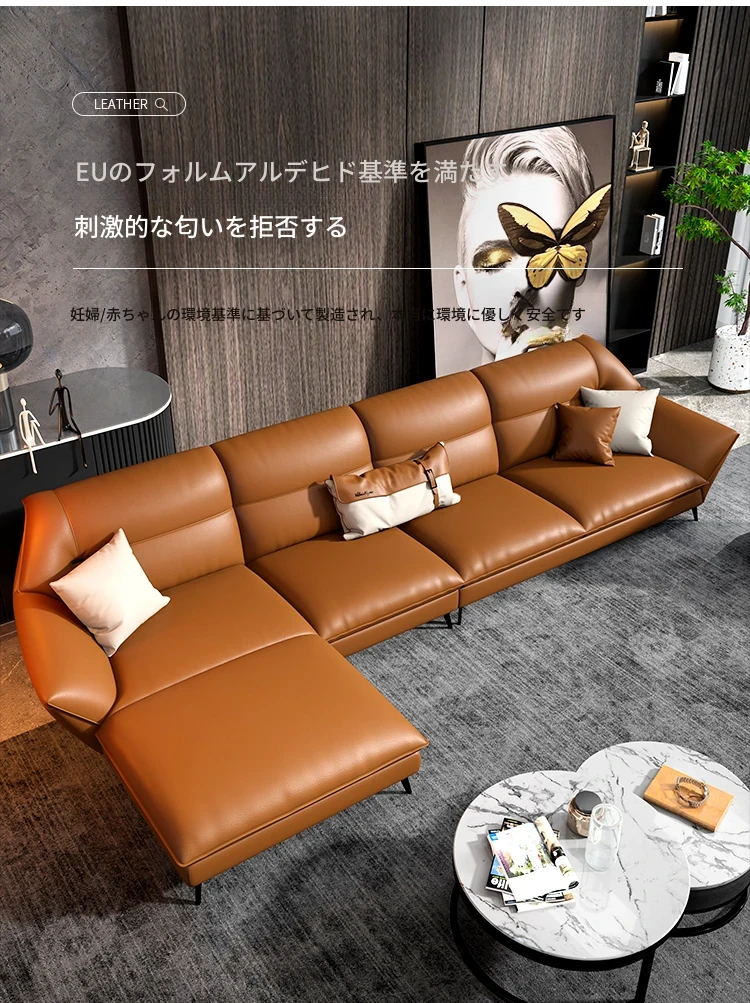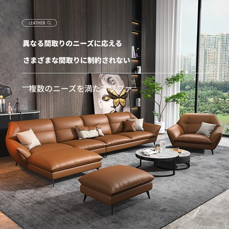 本革使用!イタリアンミニマリズムの最新デザイン、上質なトップグレイン牛革を使用したモダンシンプルリビング用25周年記念、ラグジュアリーなカウチコーナーソファ。おしゃれな空間を演出します!