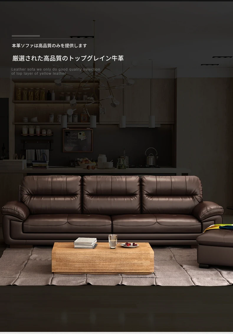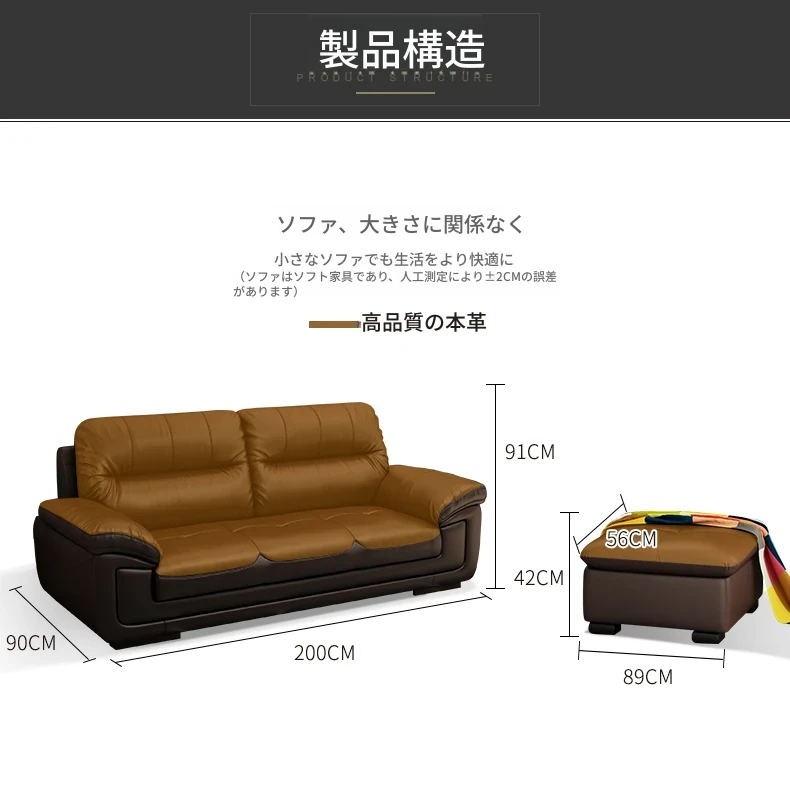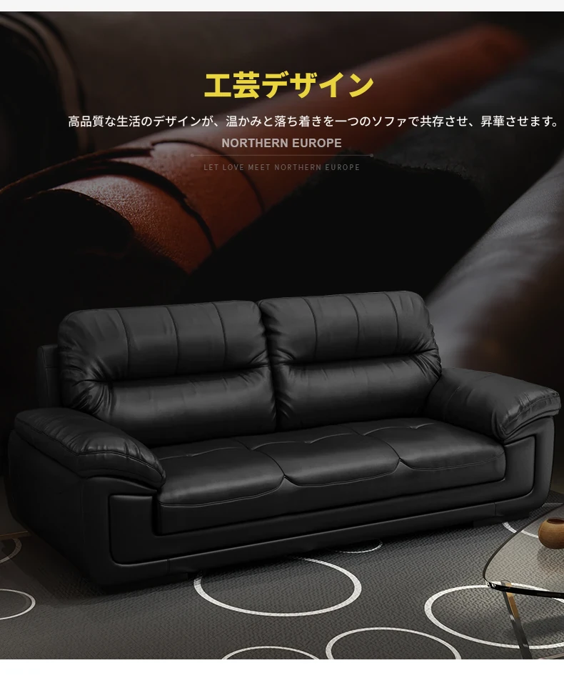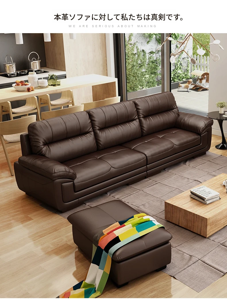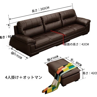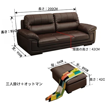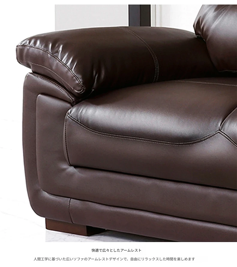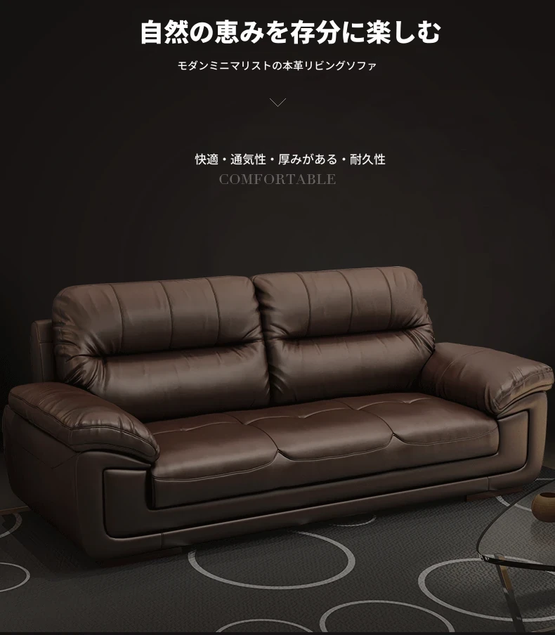 本革製のソファ、上質な牛革使用!3人掛け・4人掛け、小型スペースにもぴったりの直列型コンビネーション。モダンでシンプルなデザインが、リビングやオフィスのくつろぎの空間を演出します。