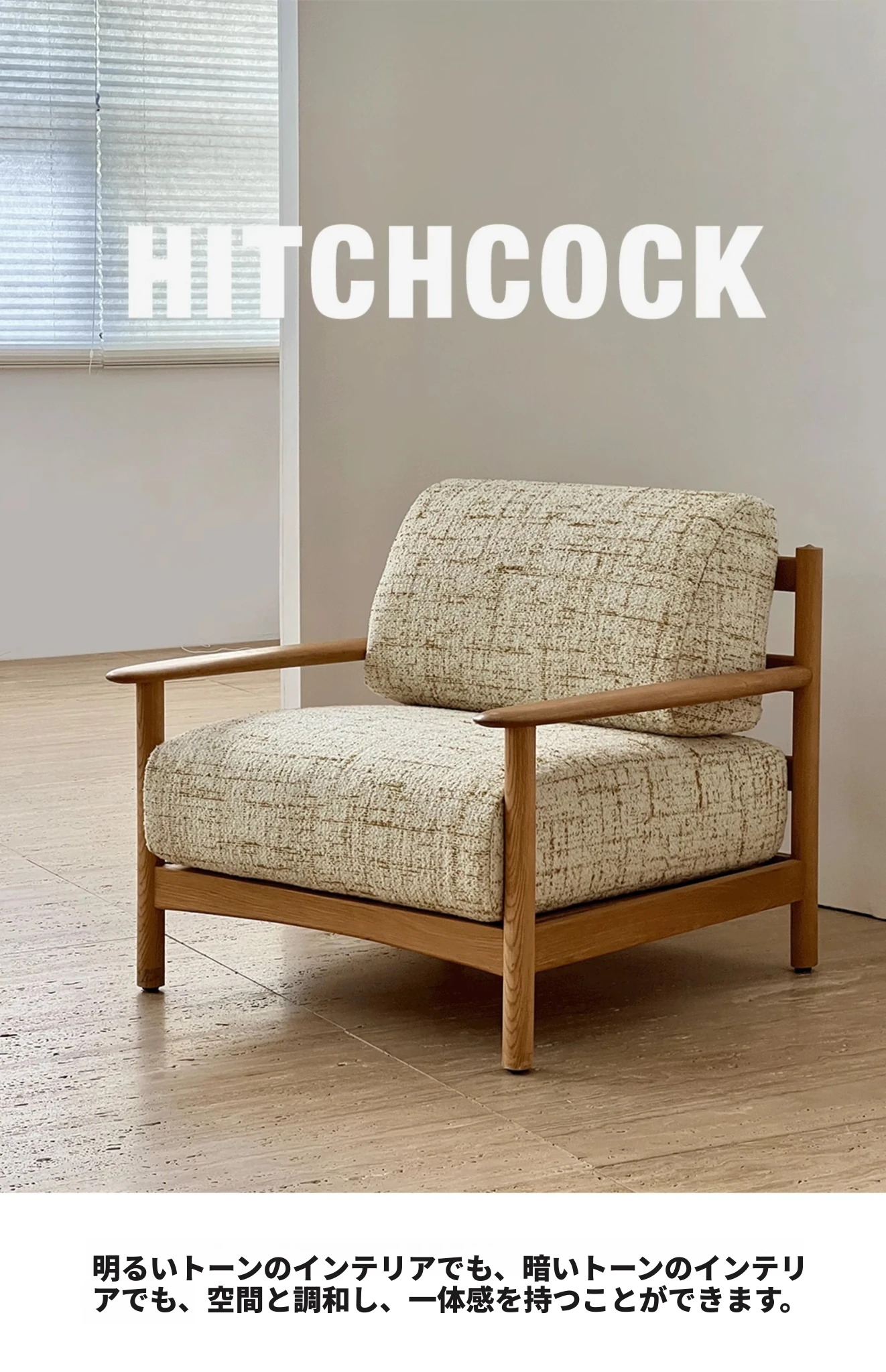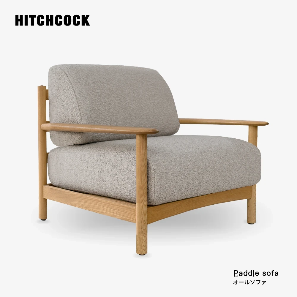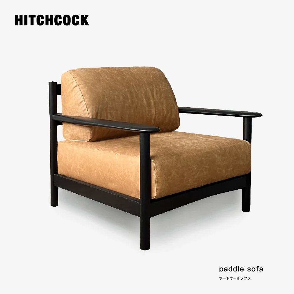 HITCHCOCKパドルソファ|本革使用の木製一人掛けソファ|北欧・和風デザインでリラックス空間を演出!高品質で快適な座り心地をお楽しみください。