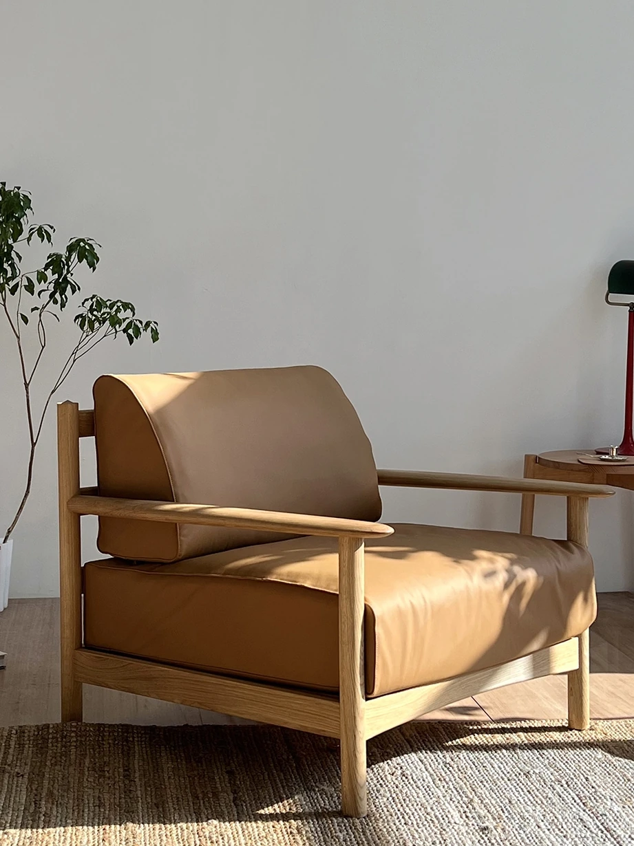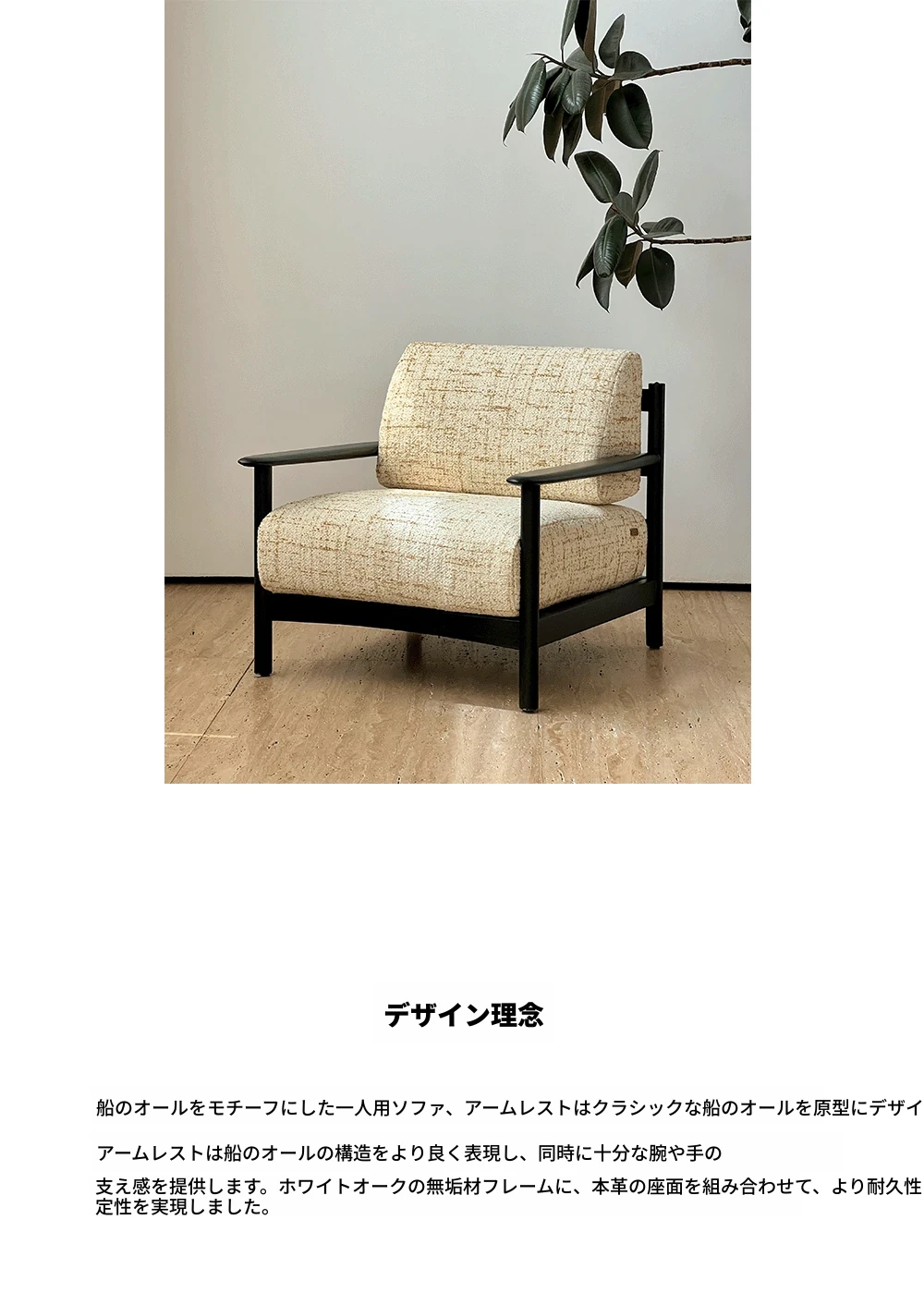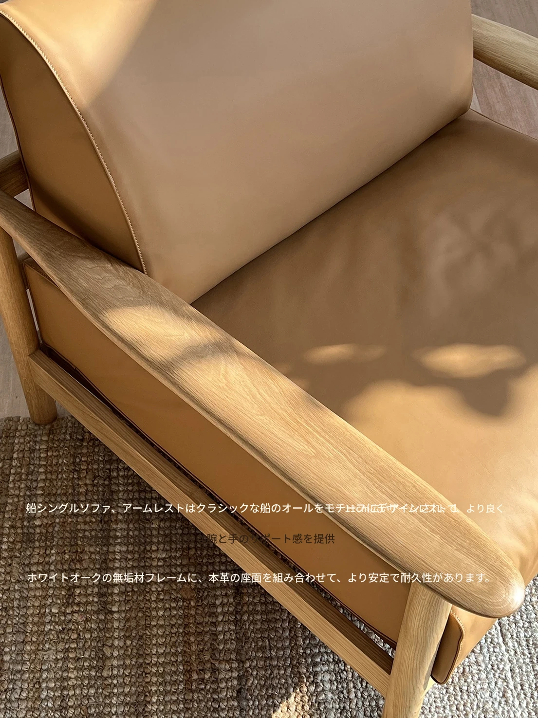 HITCHCOCKパドルソファ|本革使用の木製一人掛けソファ|北欧・和風デザインでリラックス空間を演出!高品質で快適な座り心地をお楽しみください。