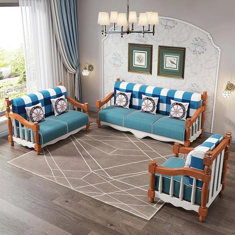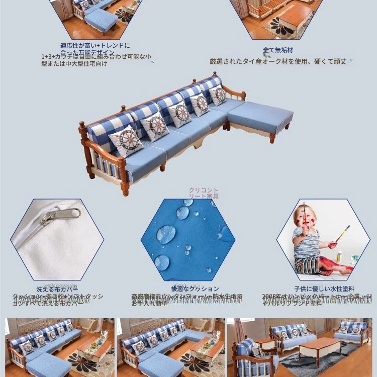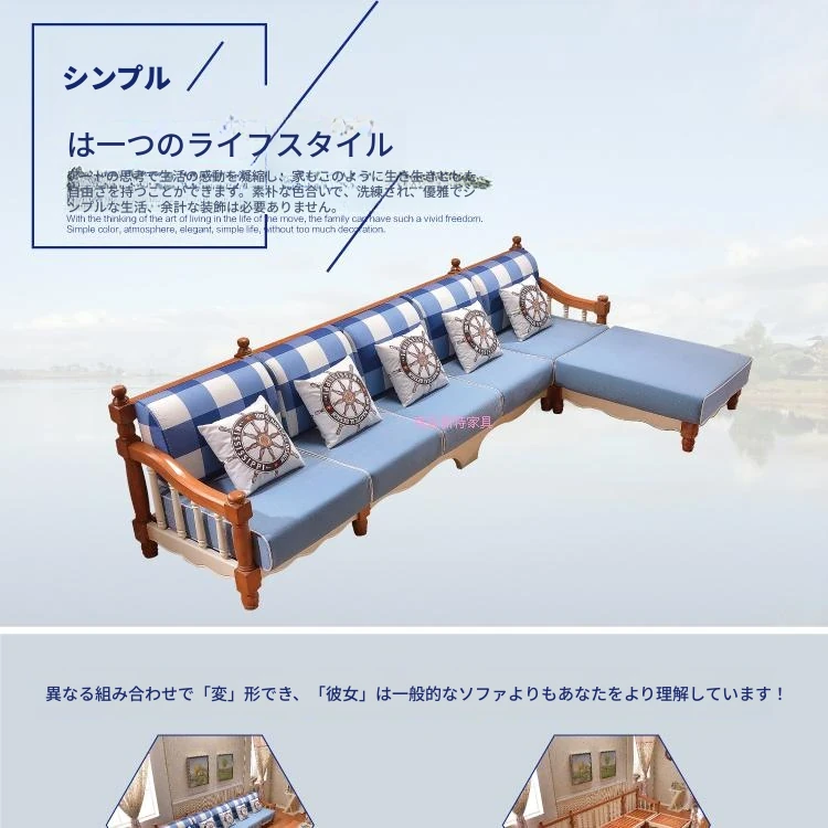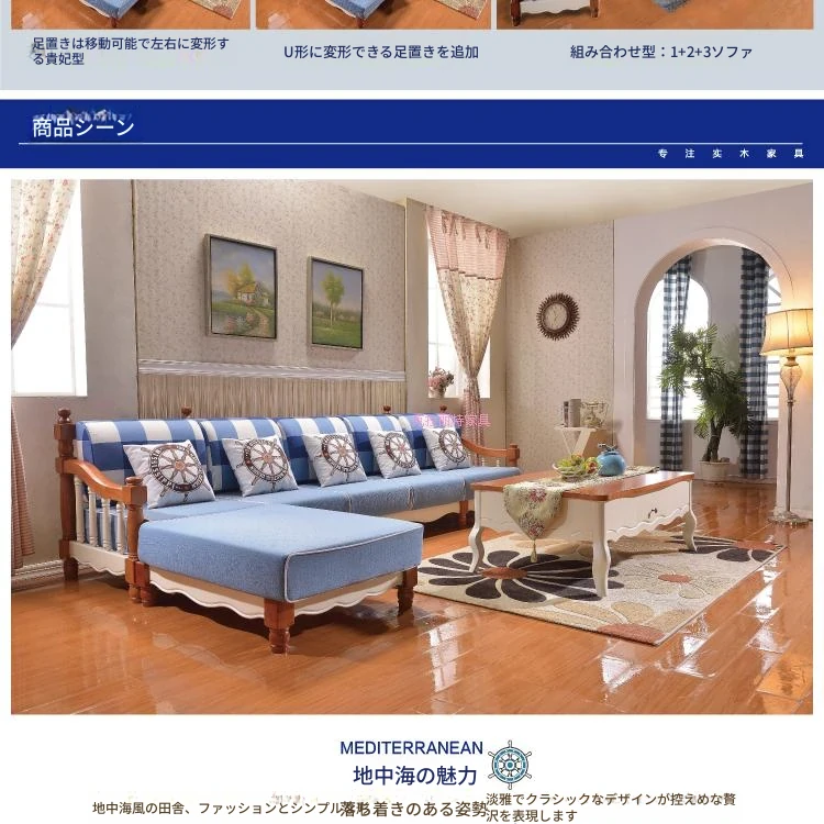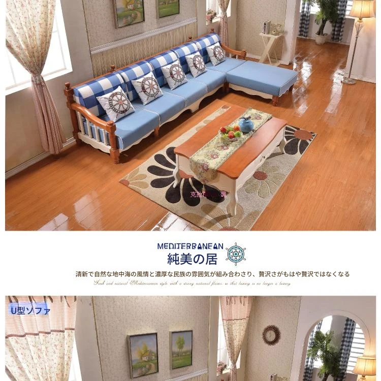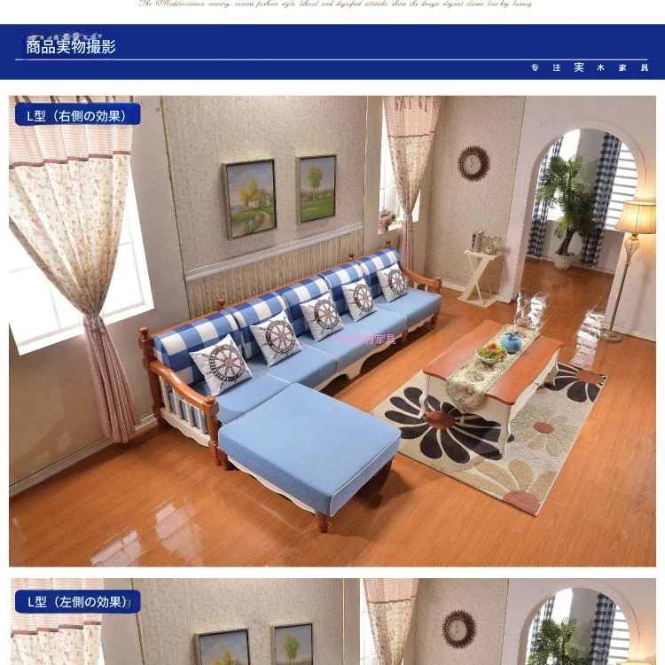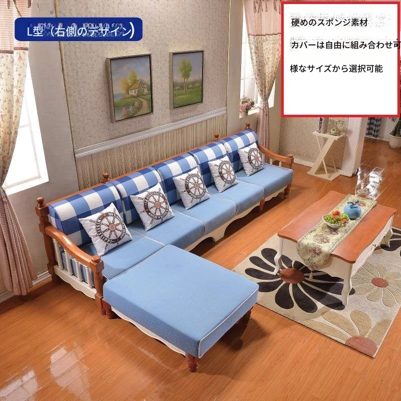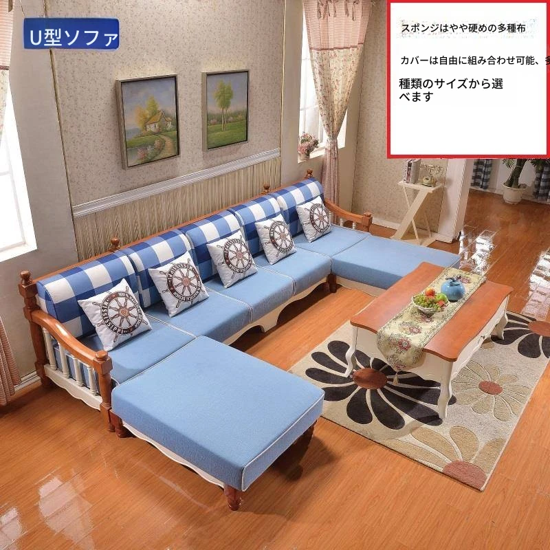 IL地中海スタイルの無垢材ソファセット|L型・U型コーナー布張り|2人掛けから6人掛けまで対応|美しいホワイトカラーでお部屋を明るく演出!快適な座り心地をぜひお試しください!