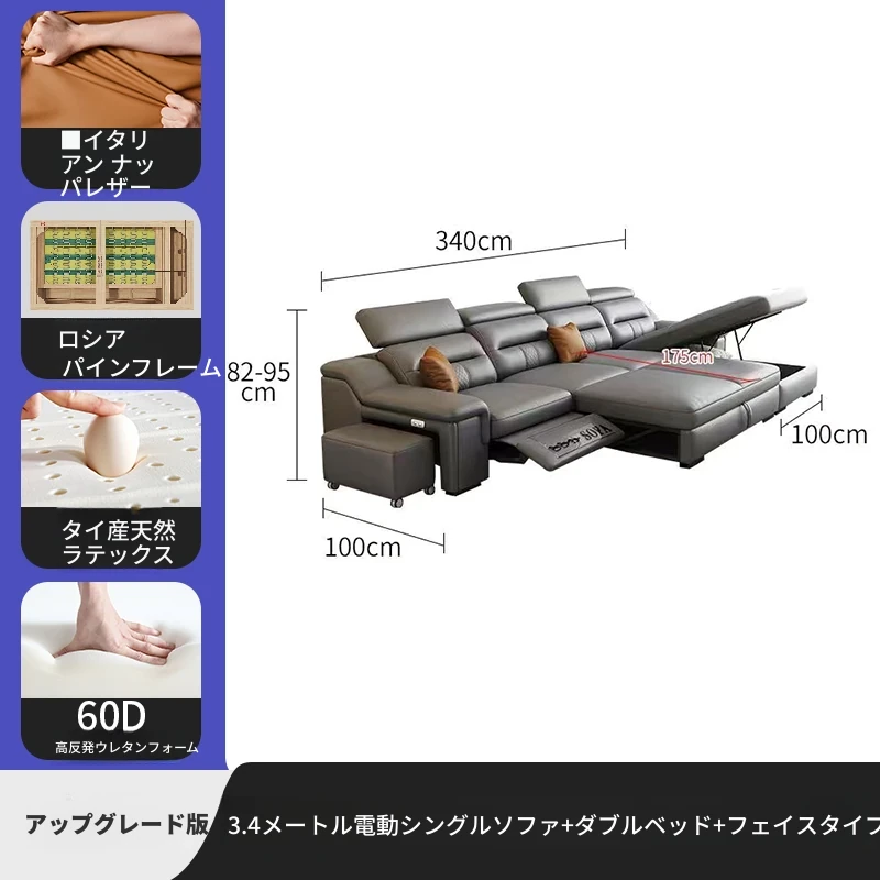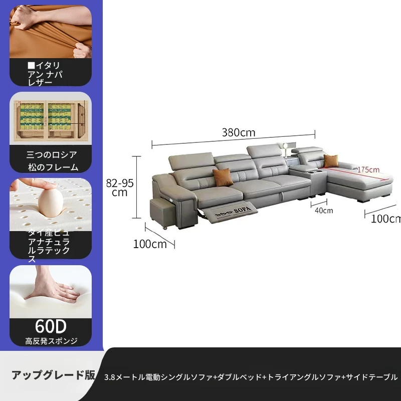 3.8Mユニット電動+ダブルトレーラー+オットマン+サイドテーブル