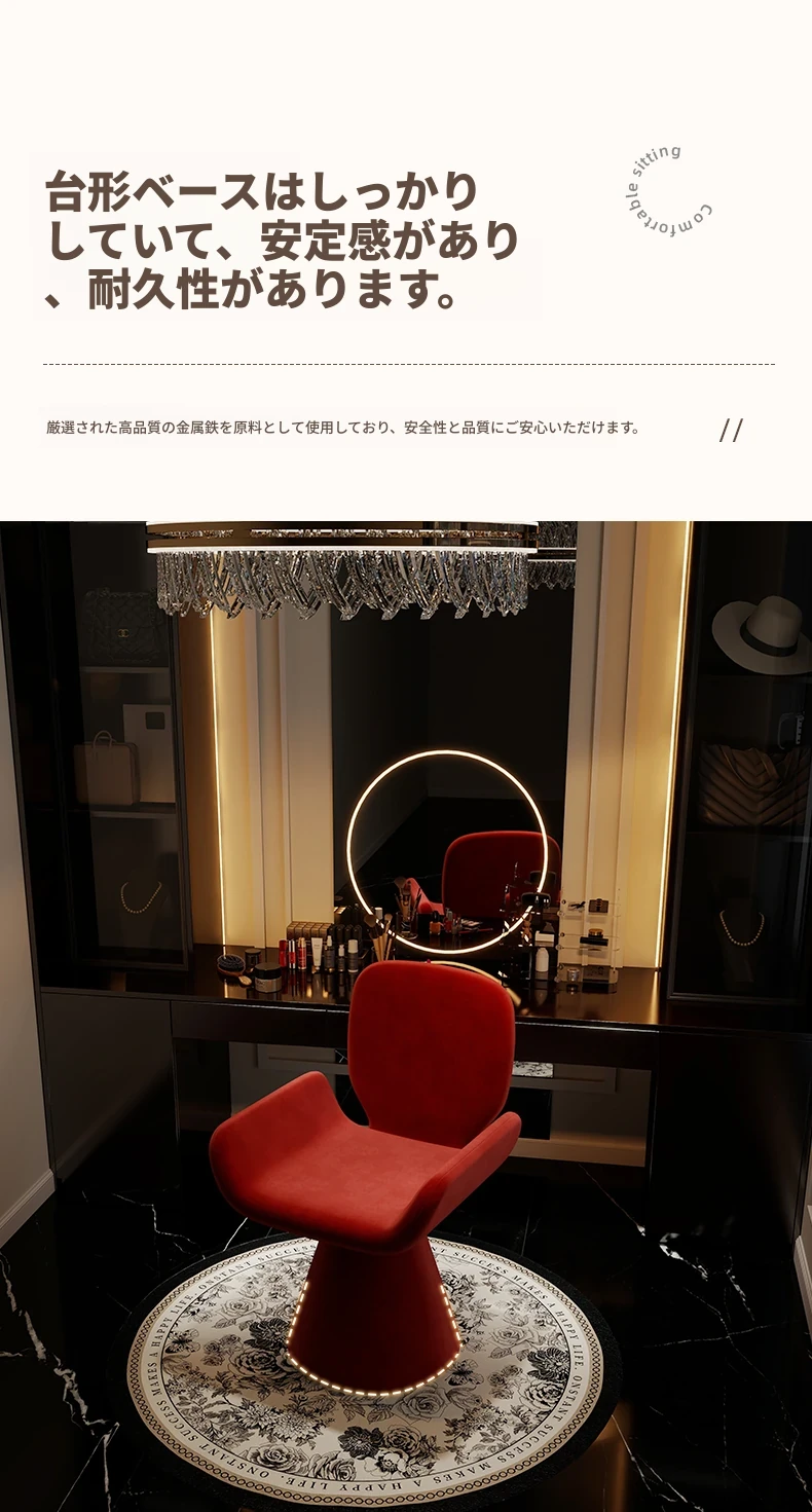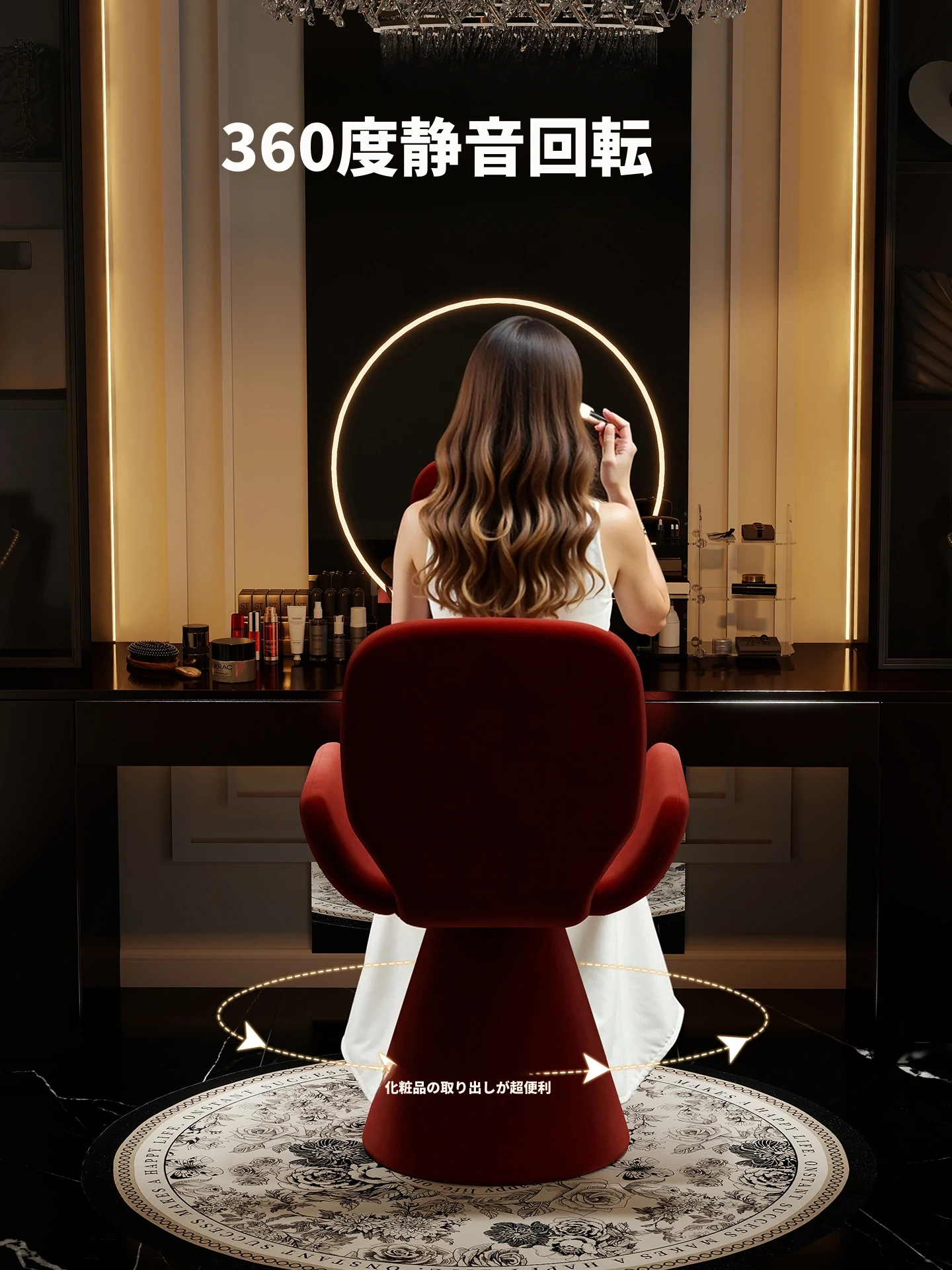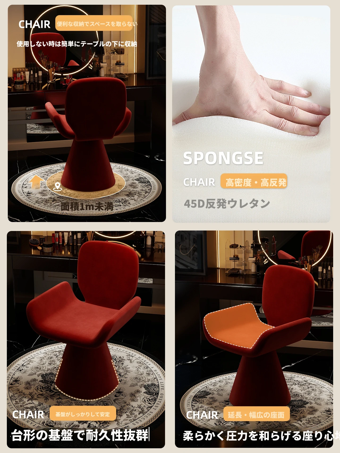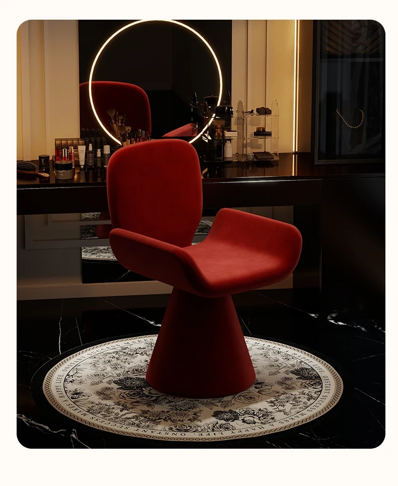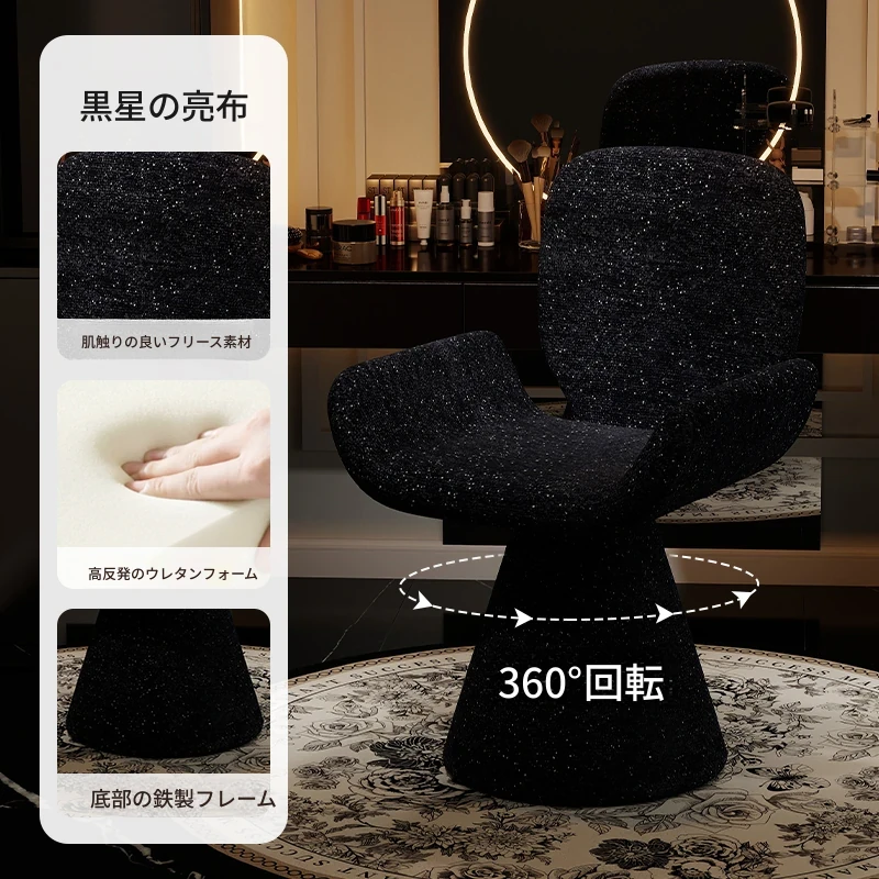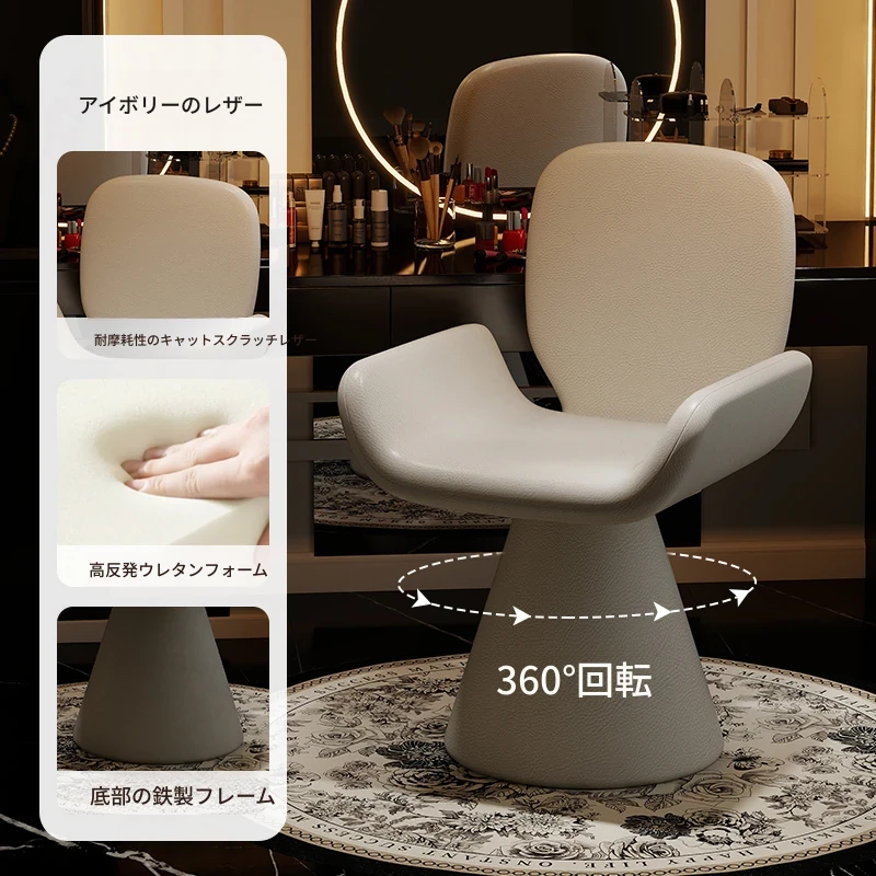 イタリアンラグジュアリーの回転式ドレッシングスツール - 高級感溢れる女性用化粧台チェア、モダンでシンプルなデザインの寝室用メイクアップチェア。お部屋に華やかさとスタイルをプラス!