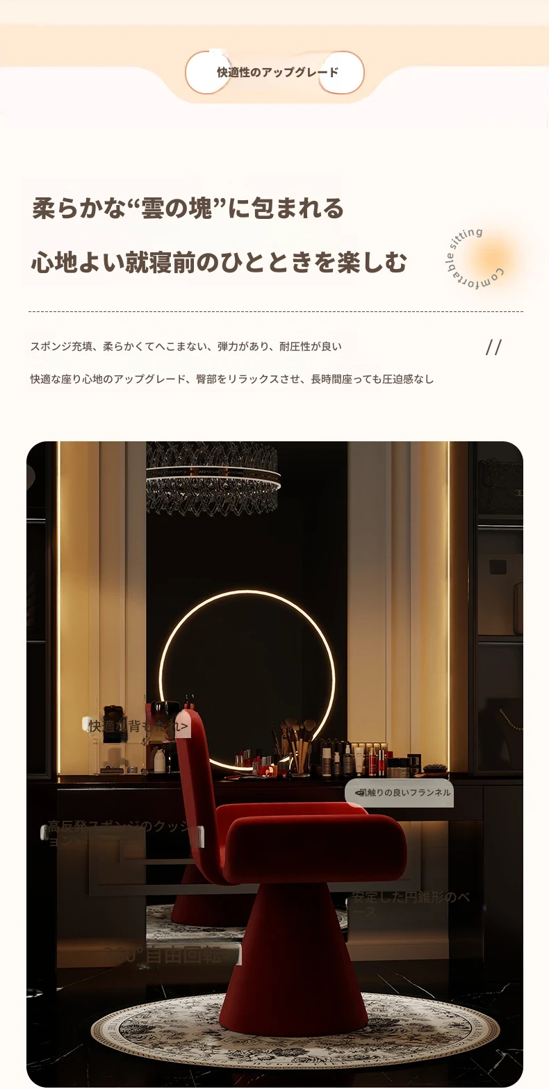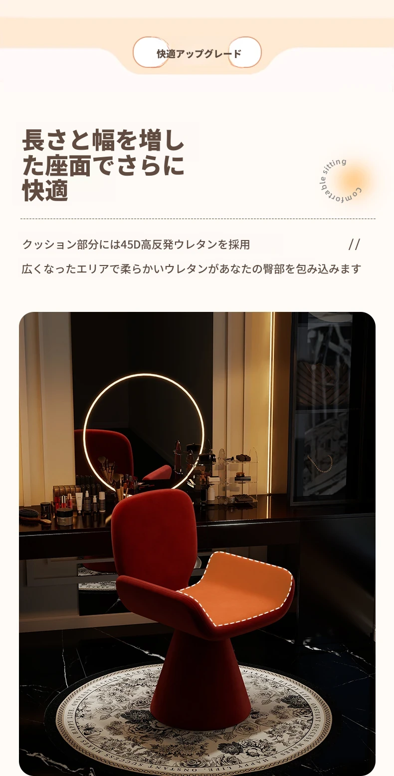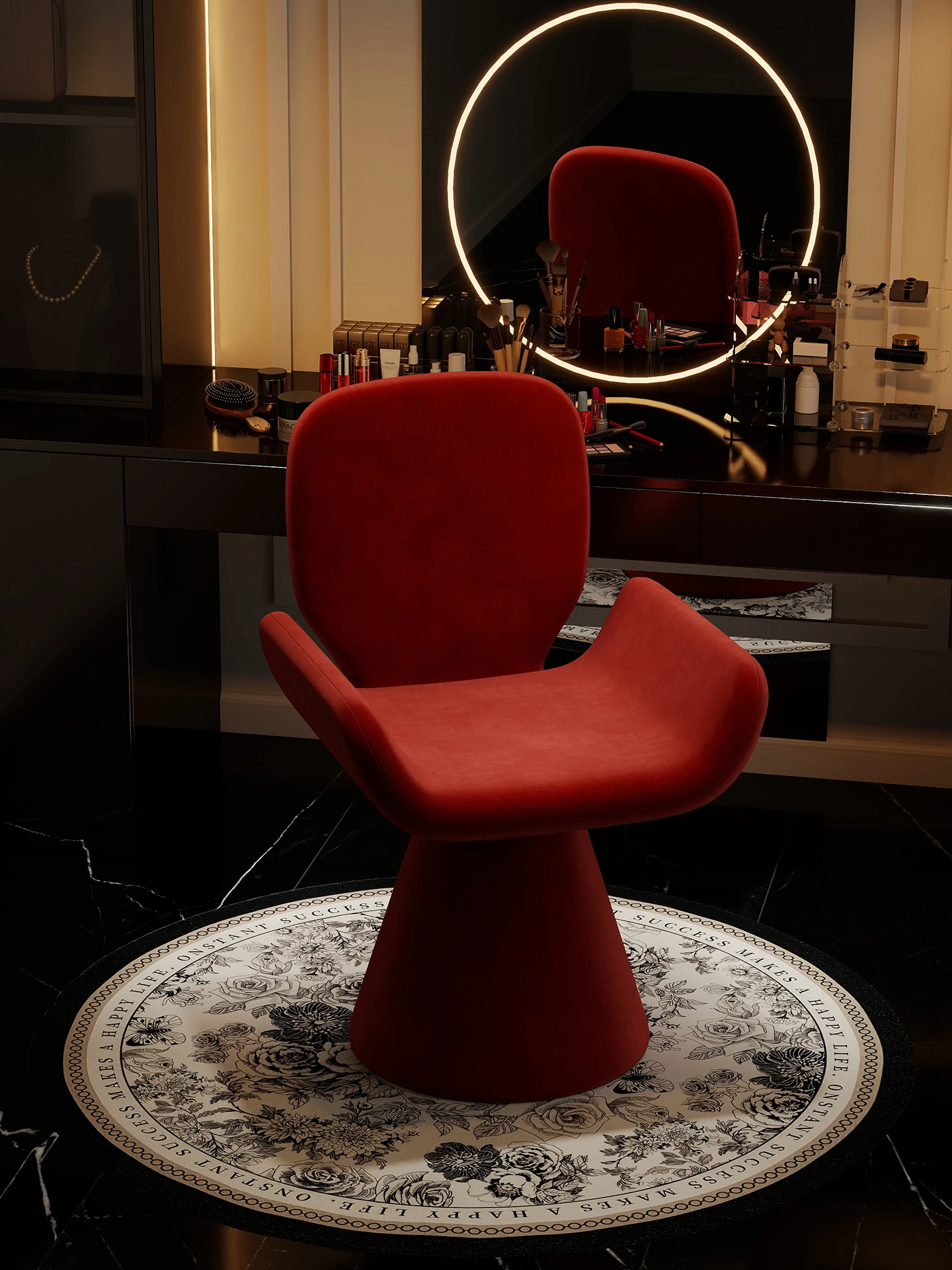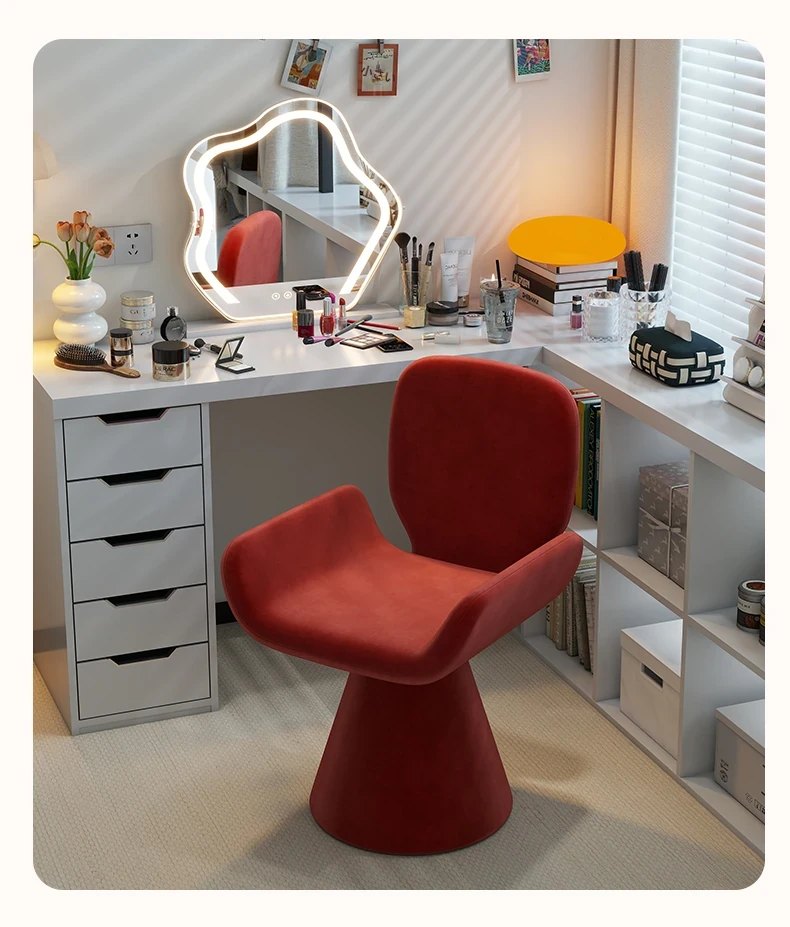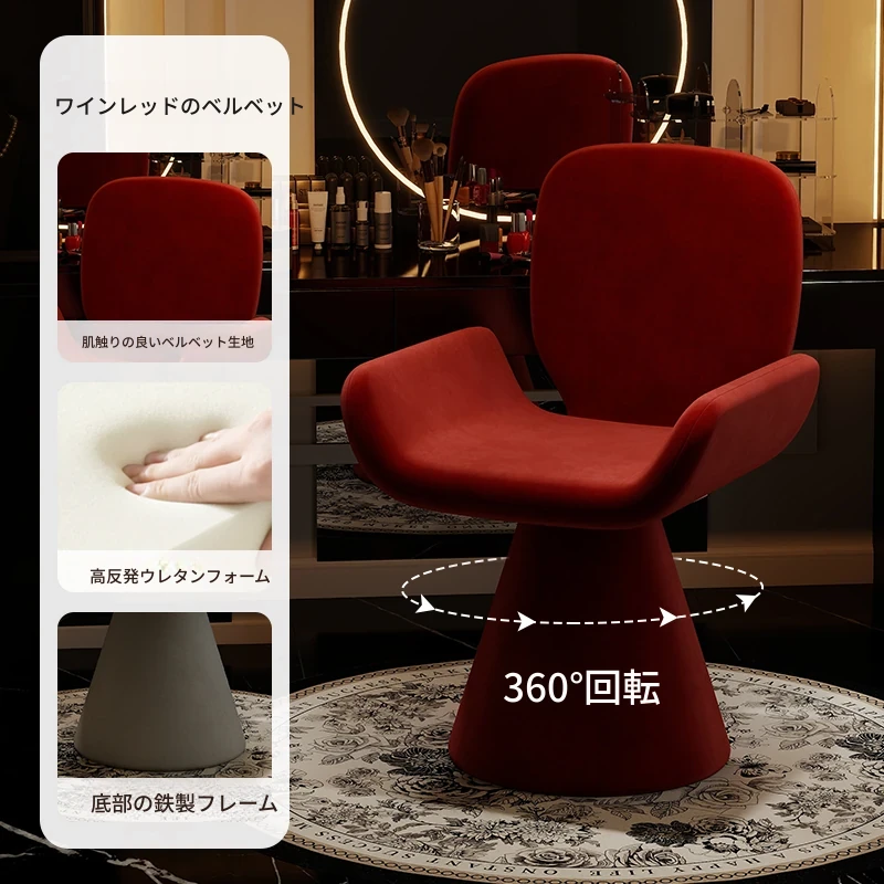 イタリアンラグジュアリーの回転式ドレッシングスツール - 高級感溢れる女性用化粧台チェア、モダンでシンプルなデザインの寝室用メイクアップチェア。お部屋に華やかさとスタイルをプラス!