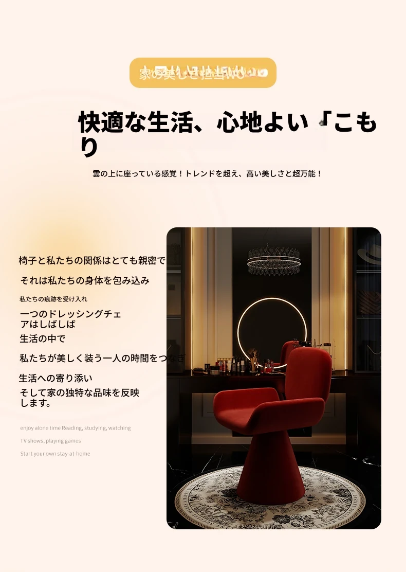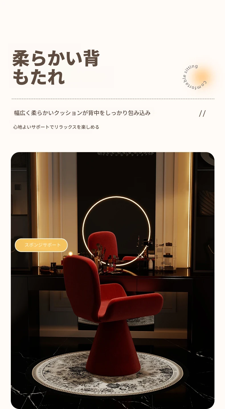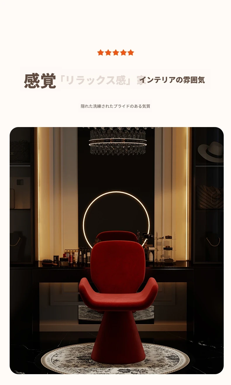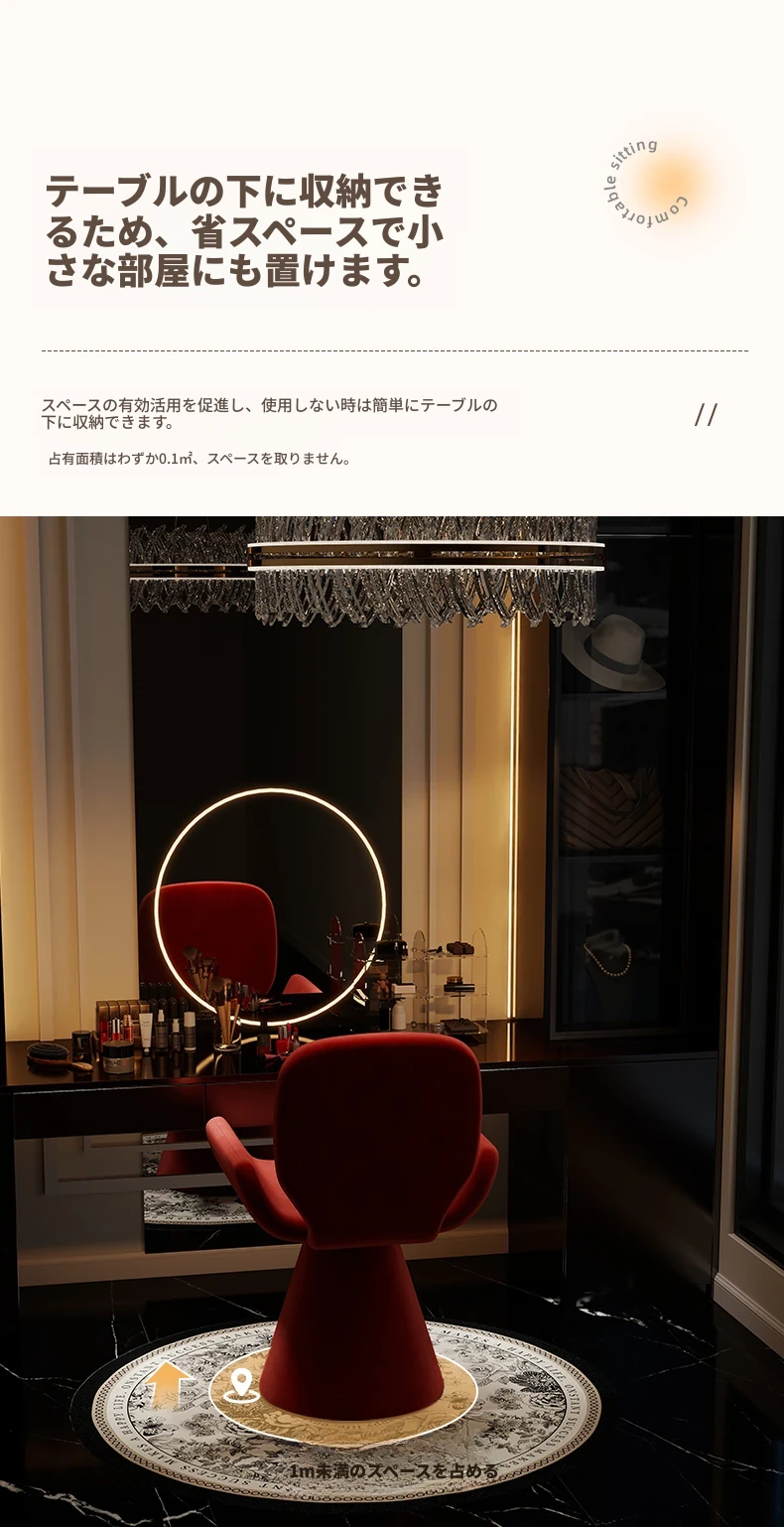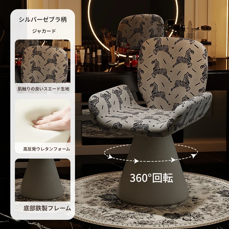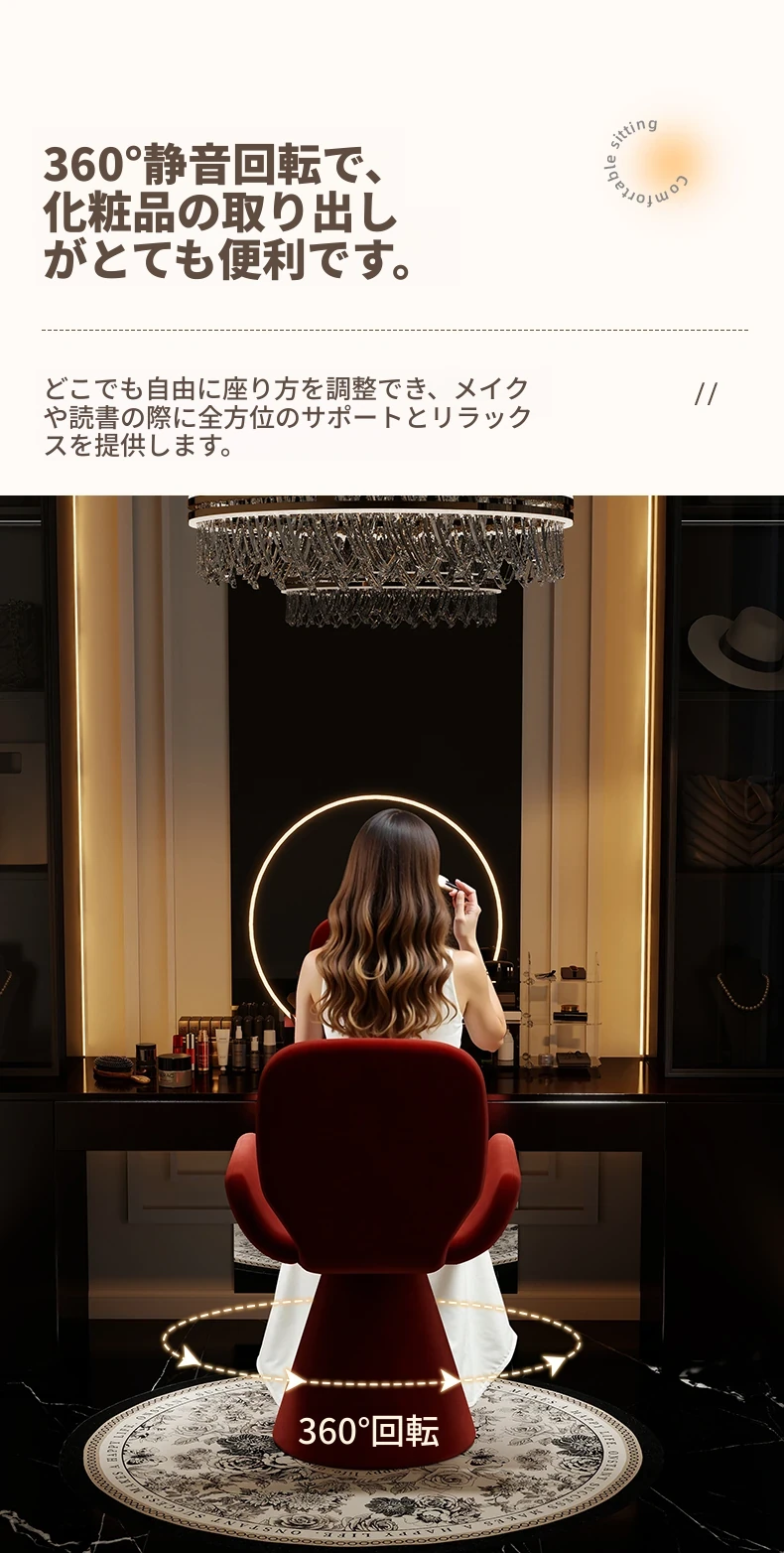 イタリアンラグジュアリーの回転式ドレッシングスツール - 高級感溢れる女性用化粧台チェア、モダンでシンプルなデザインの寝室用メイクアップチェア。お部屋に華やかさとスタイルをプラス!