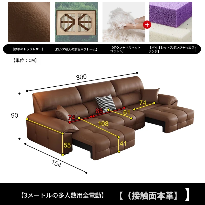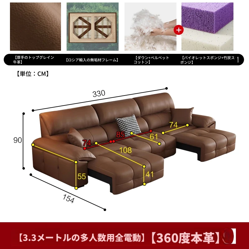 3.3メートル多人数用全電動【接触面イタリア製厚手トップレザー】