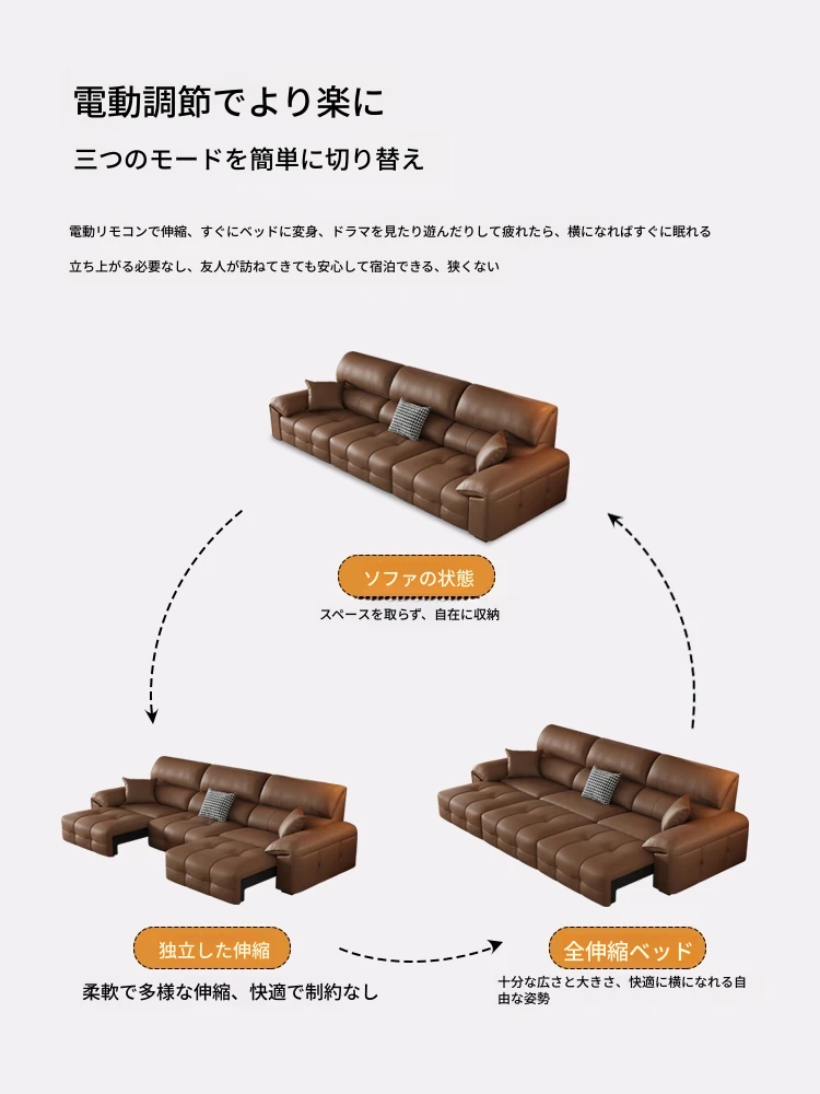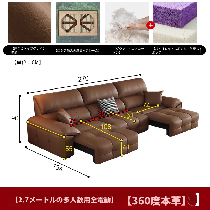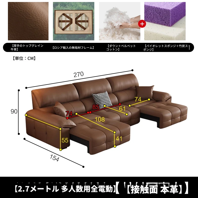2.7メートル多人数用全電動【接触面イタリア製厚手トップレザー】