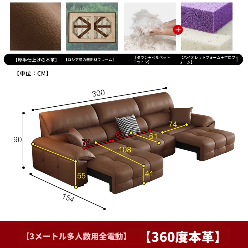 3メートル多人数用全電動【接触面イタリア製厚手トップレザー】