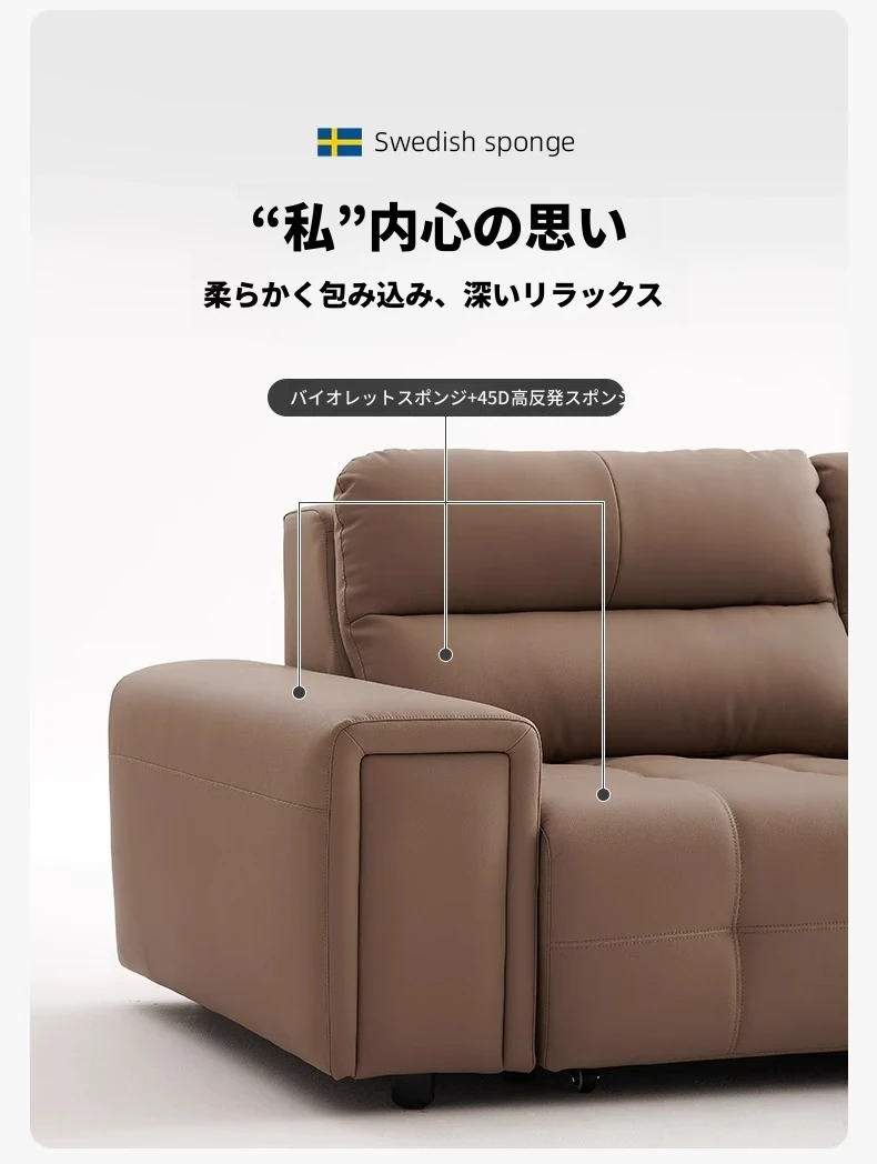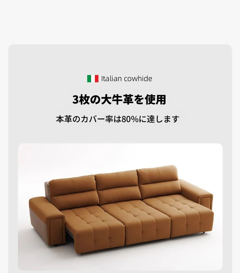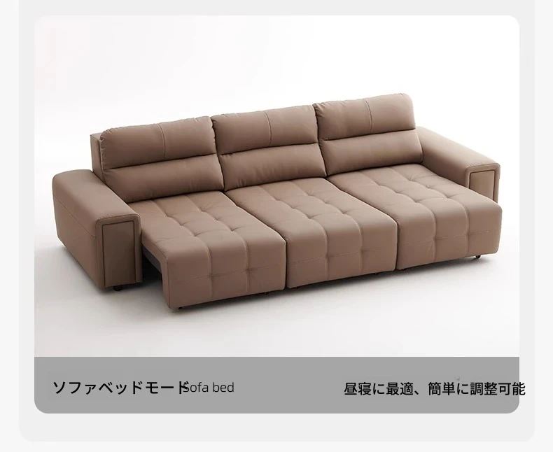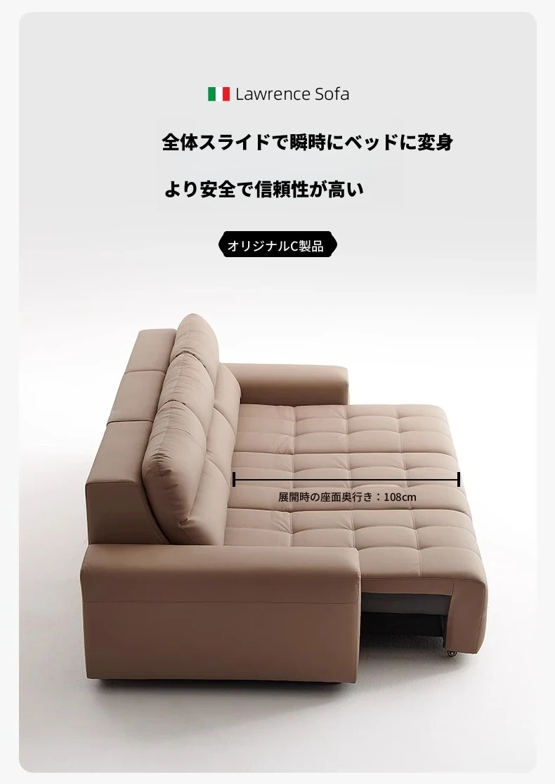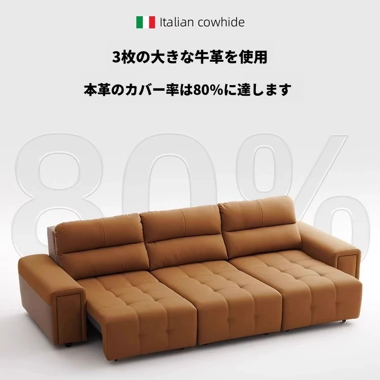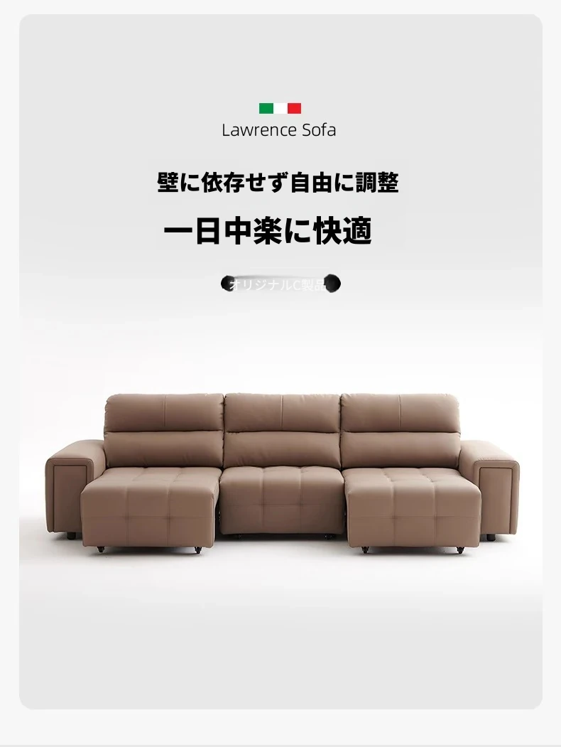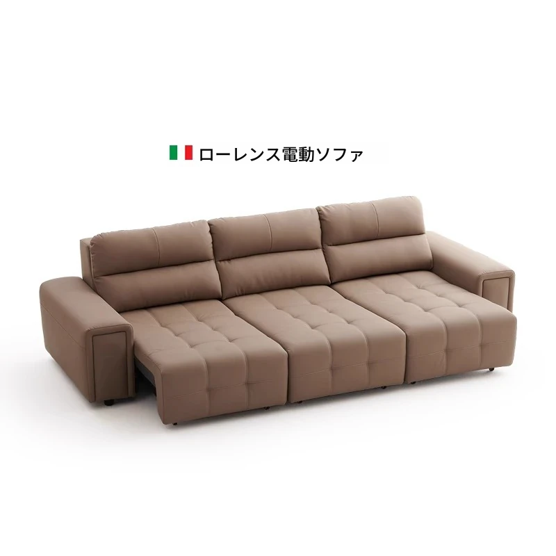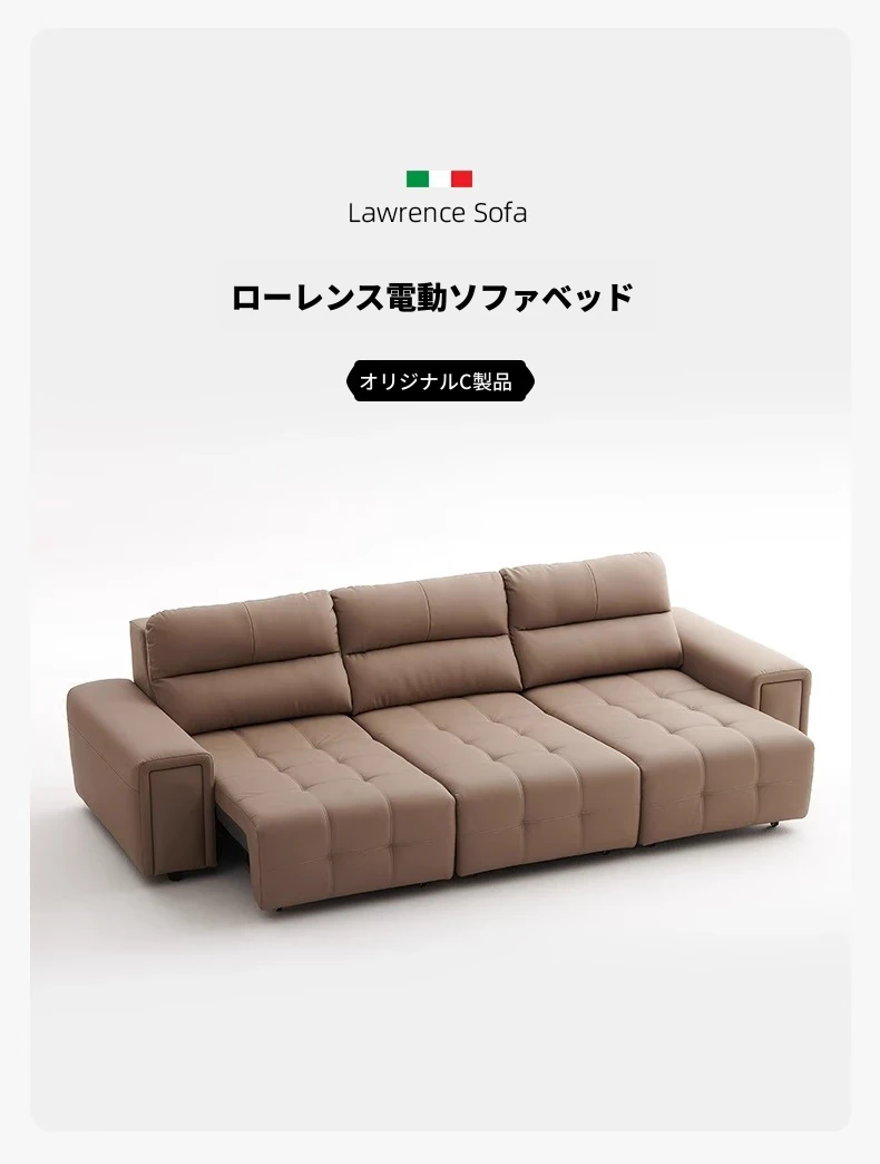 ローレンス本革機能性ソファベッド - リビングに最適な伸縮式、壁際に置けるイタリアンデザインの電動ソファで、小スペースでも快適なリラックスタイムを提供!
