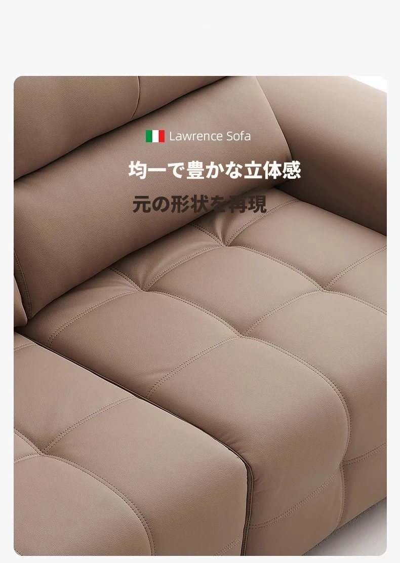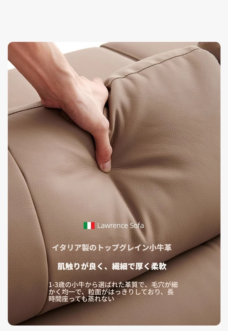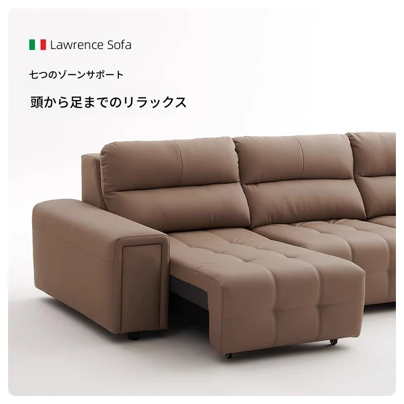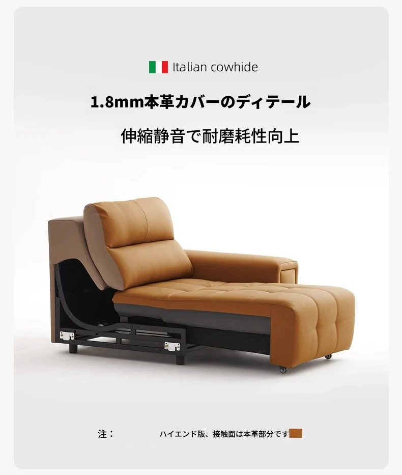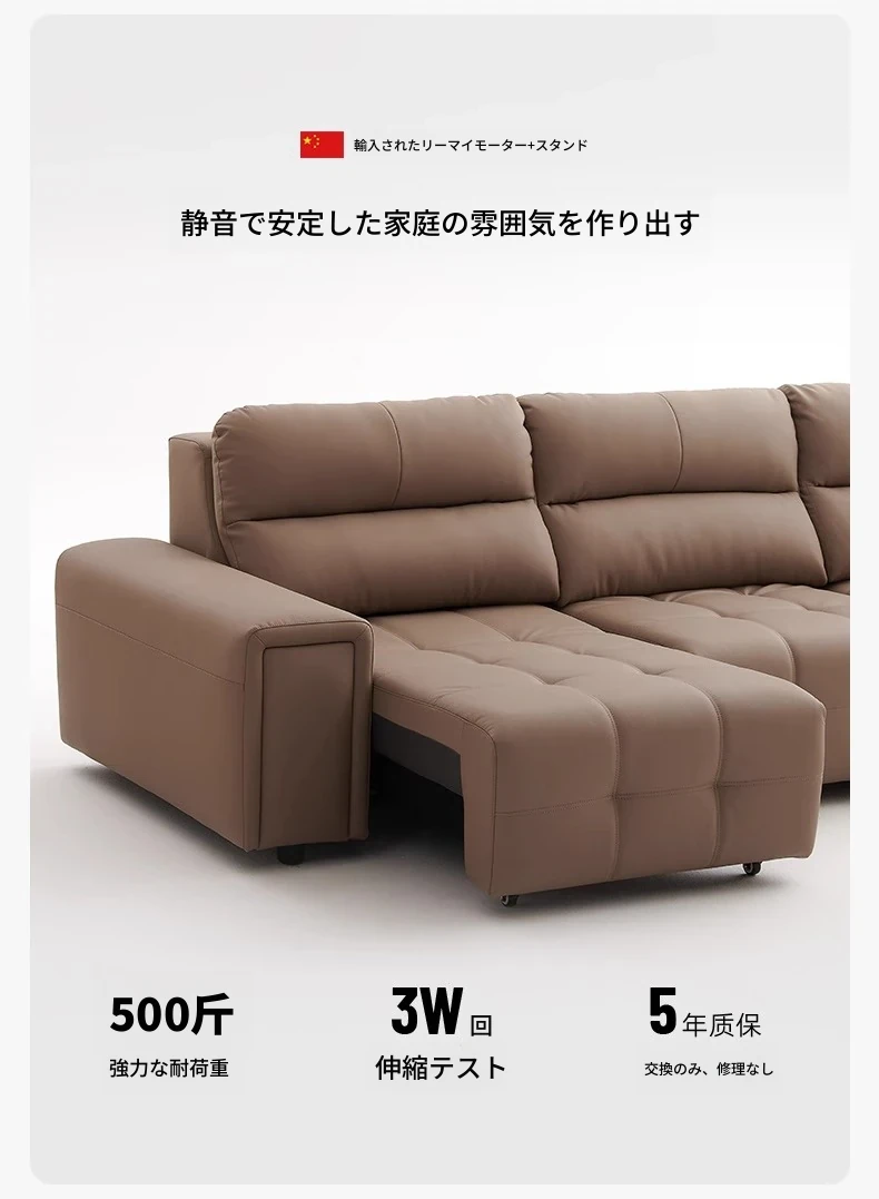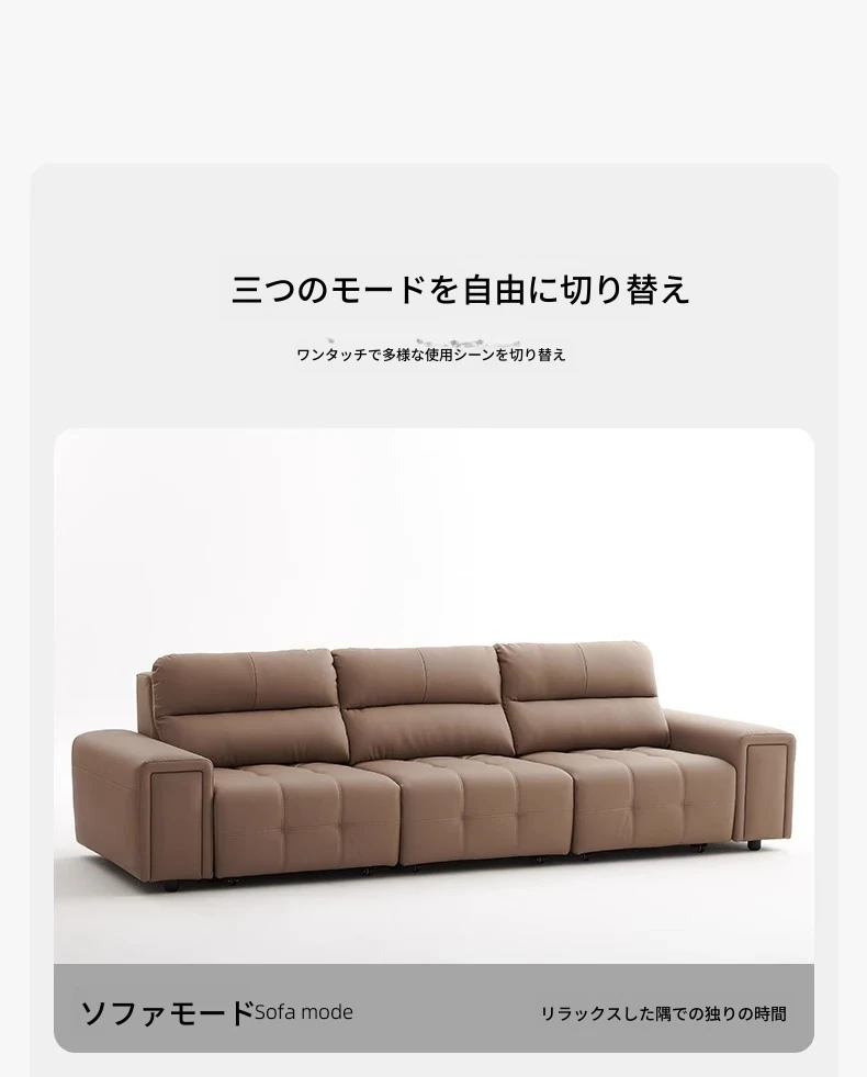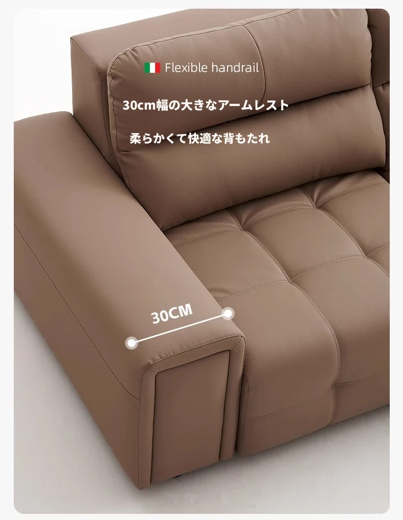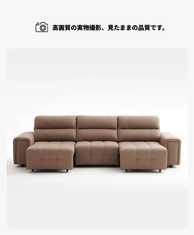 ローレンス本革機能性ソファベッド - リビングに最適な伸縮式、壁際に置けるイタリアンデザインの電動ソファで、小スペースでも快適なリラックスタイムを提供!