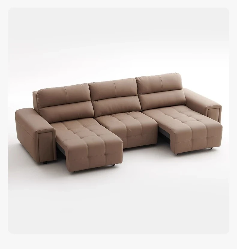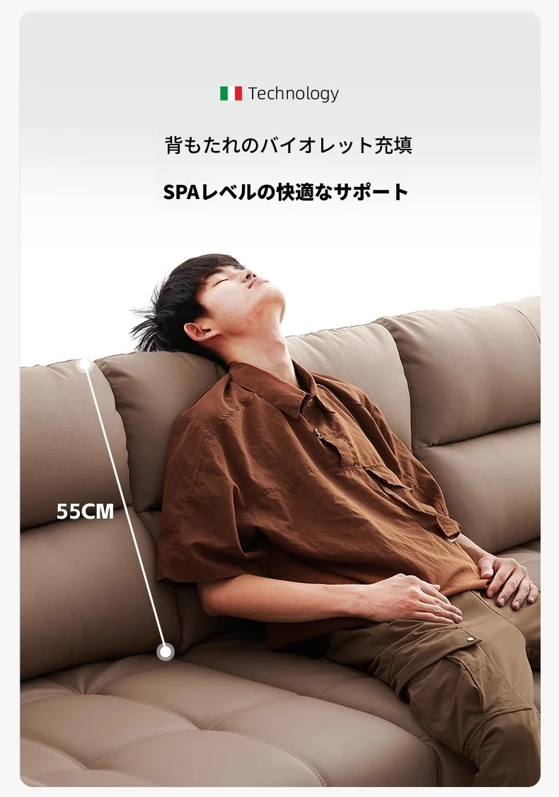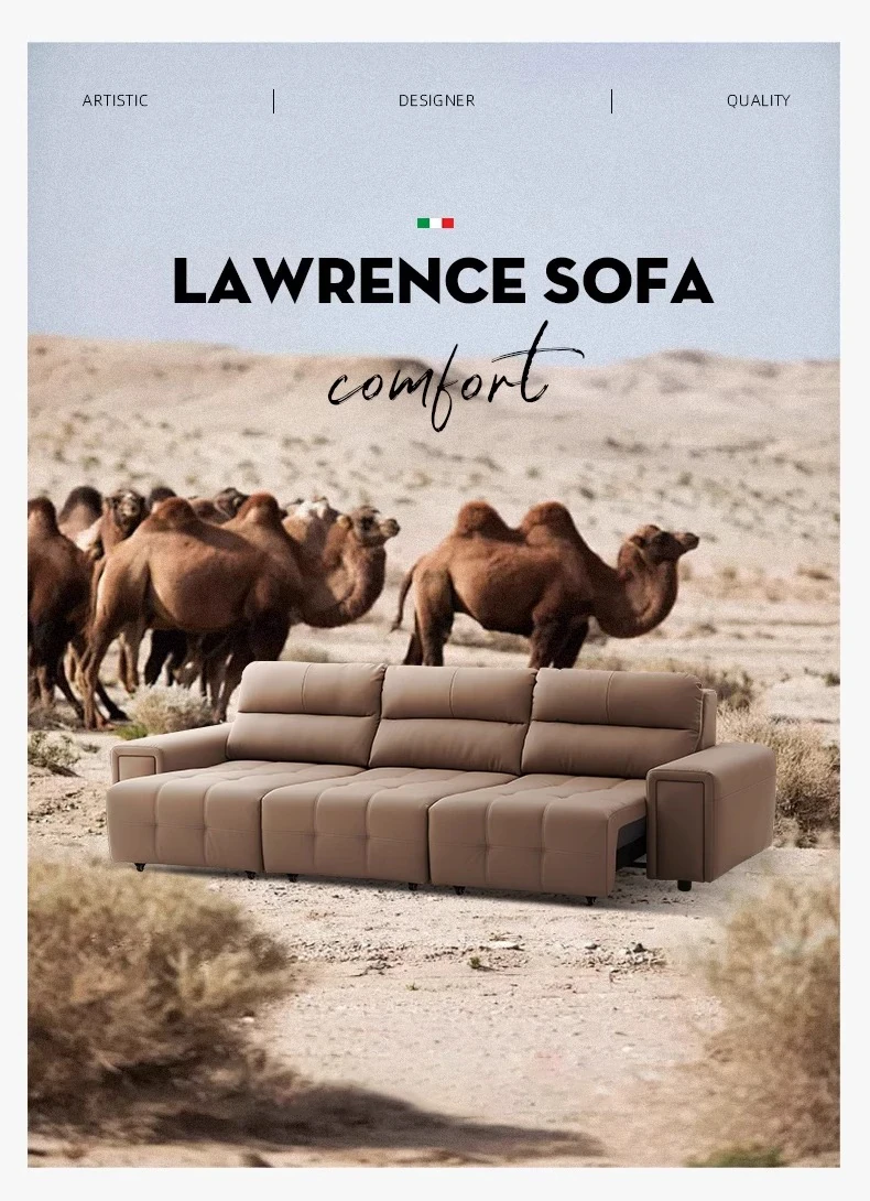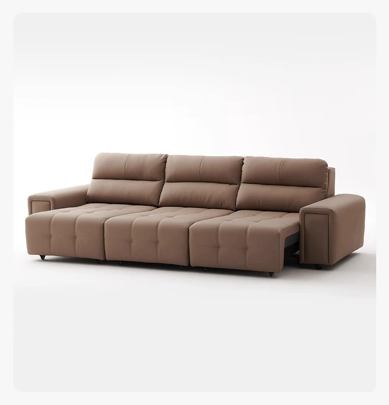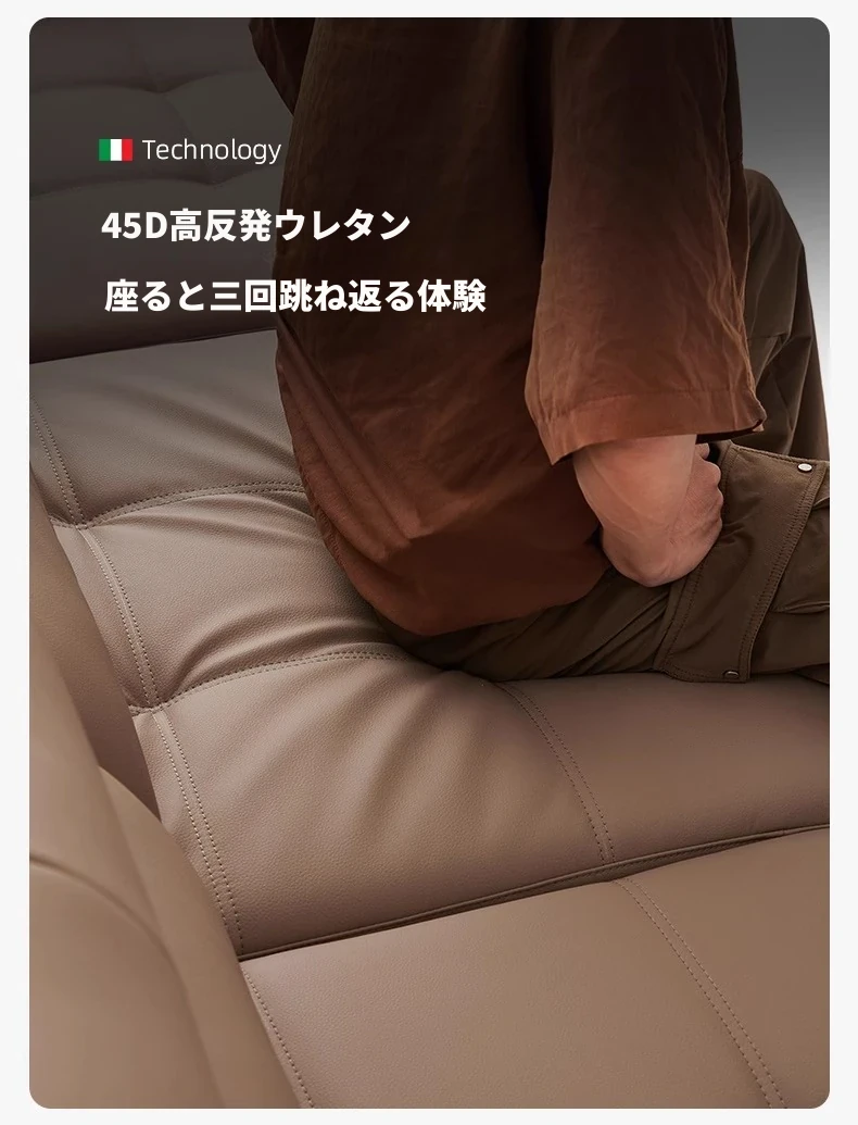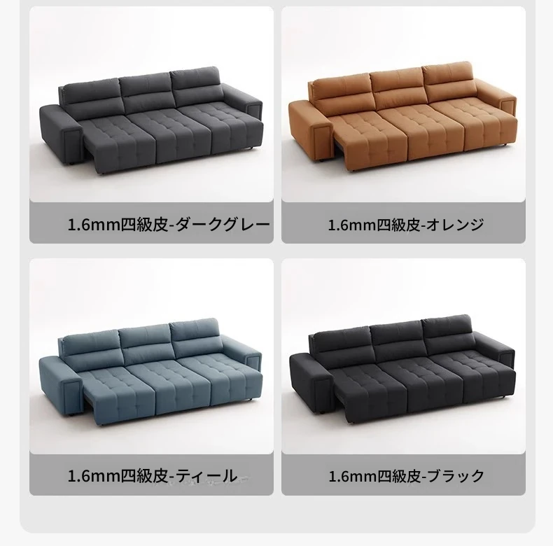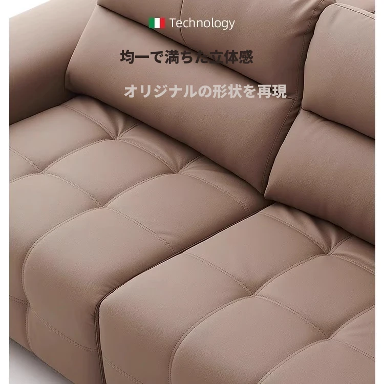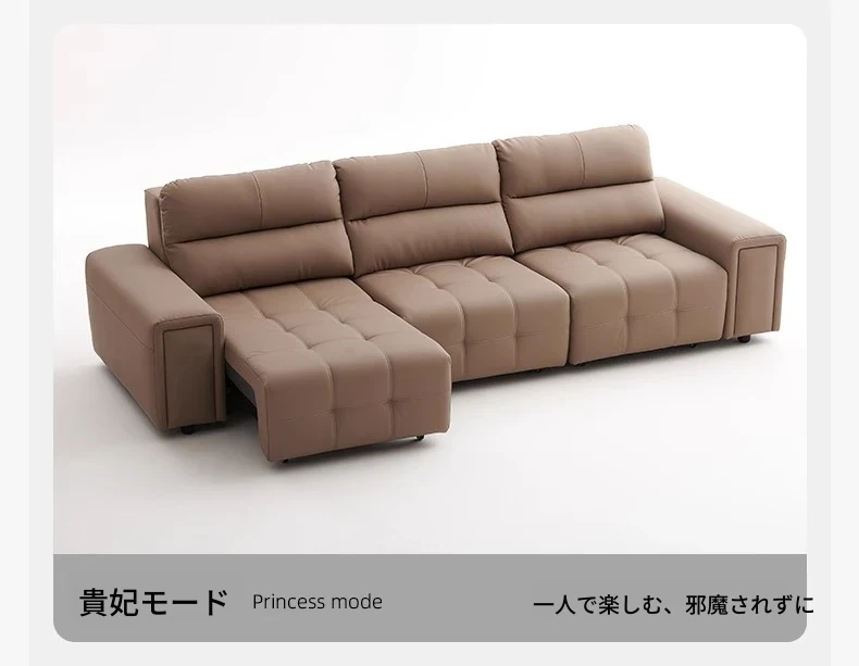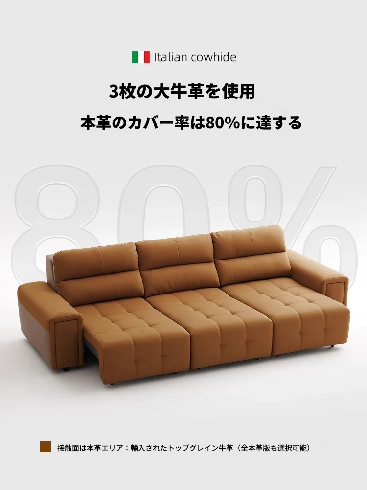 ローレンス本革機能性ソファベッド - リビングに最適な伸縮式、壁際に置けるイタリアンデザインの電動ソファで、小スペースでも快適なリラックスタイムを提供!
