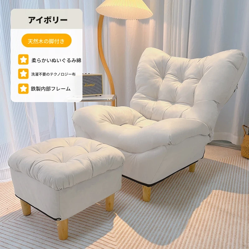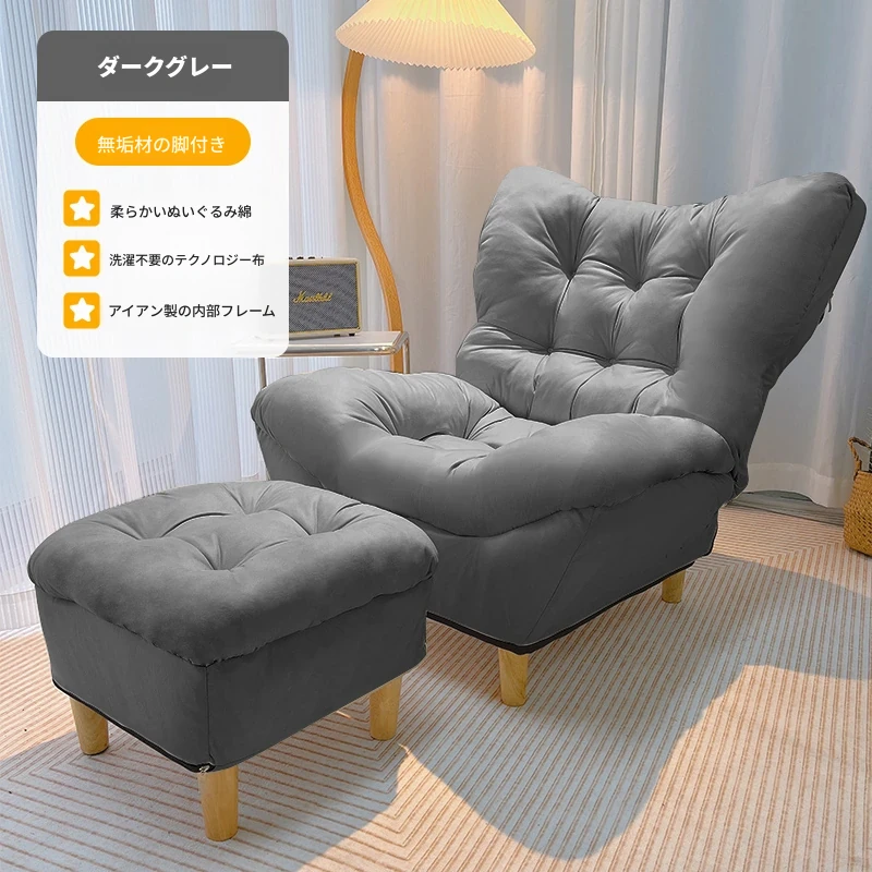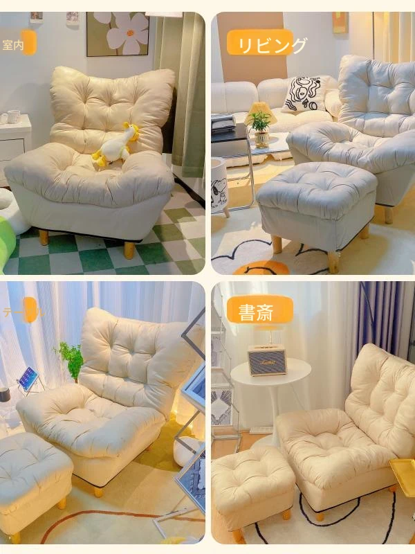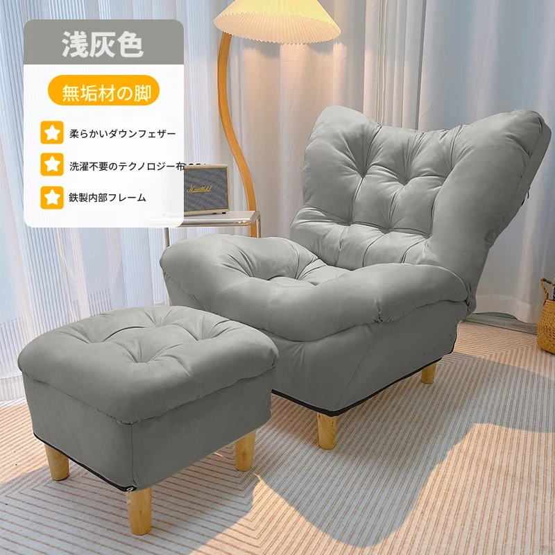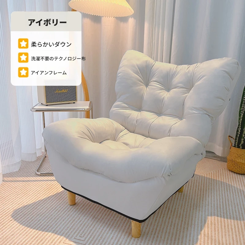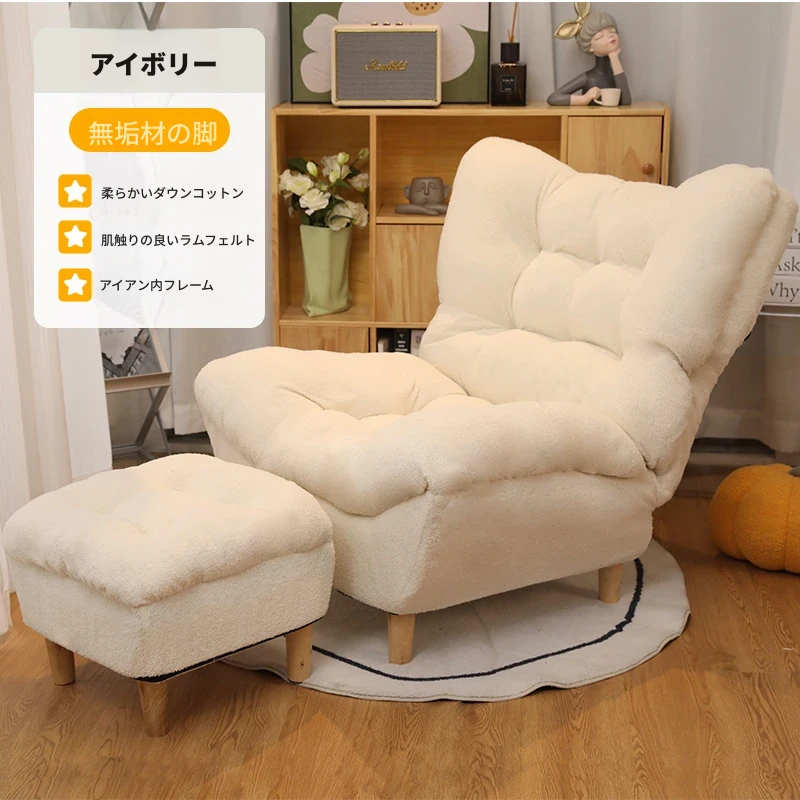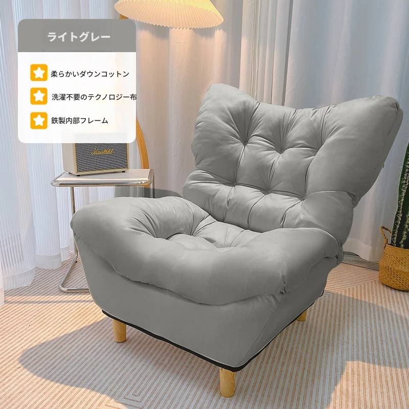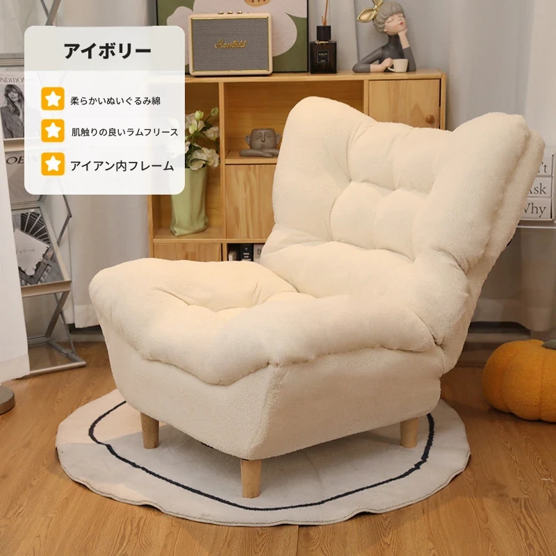 リラックスできる折りたたみ式一人用ソファ!バルコニーや寝室に最適な背もたれ付きリクライニングチェア。小型でスペースを取らず、居心地の良いくつろぎ空間を提供します。