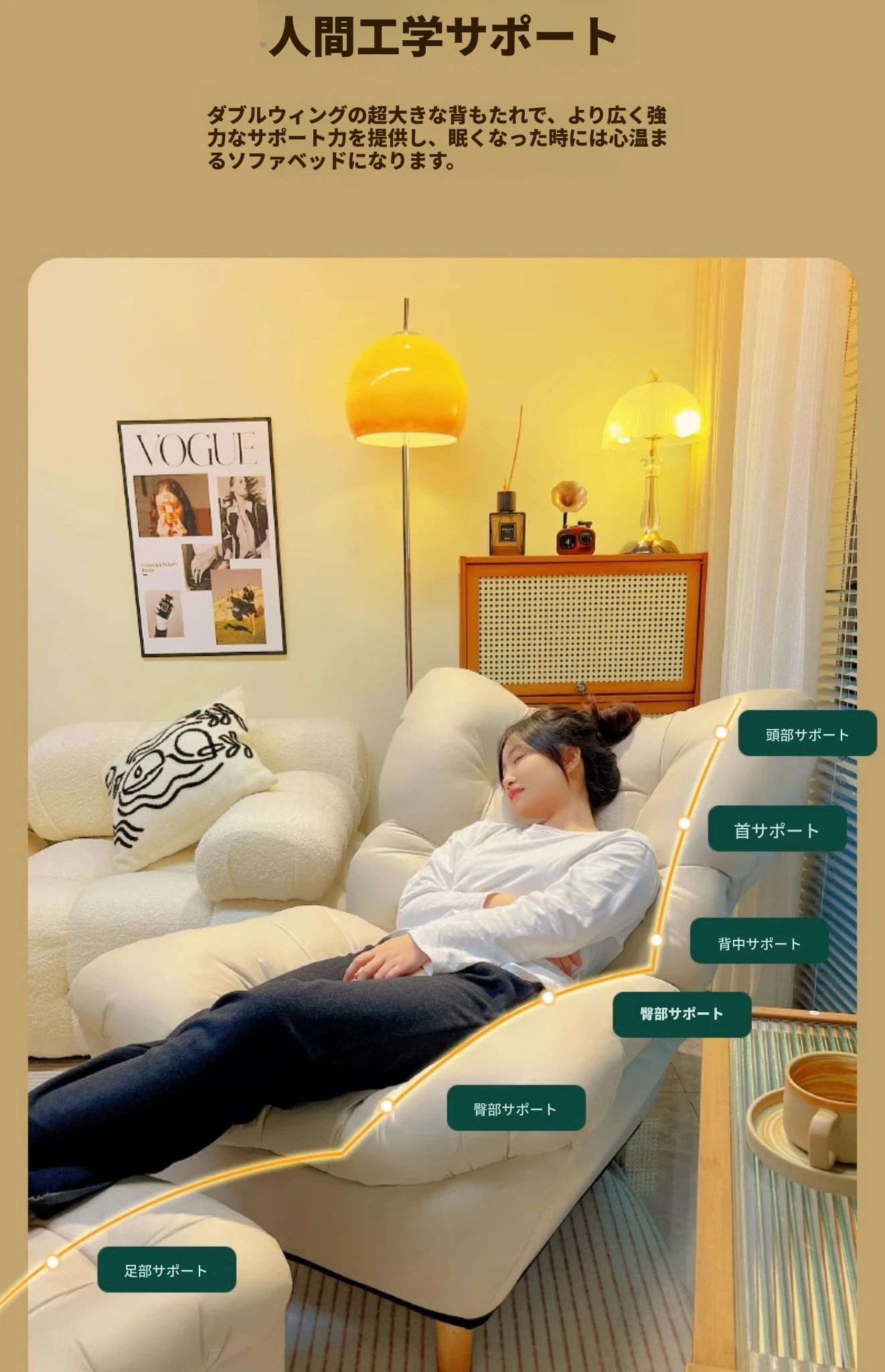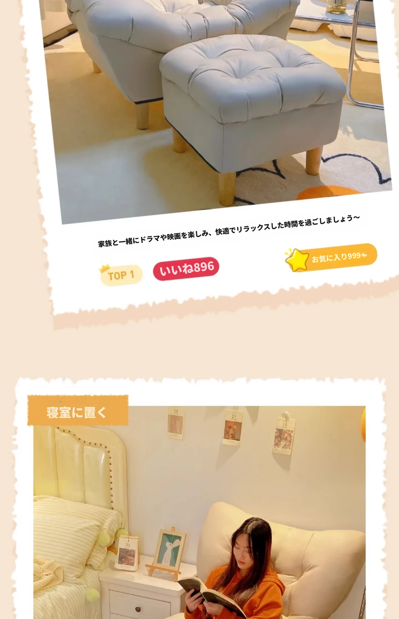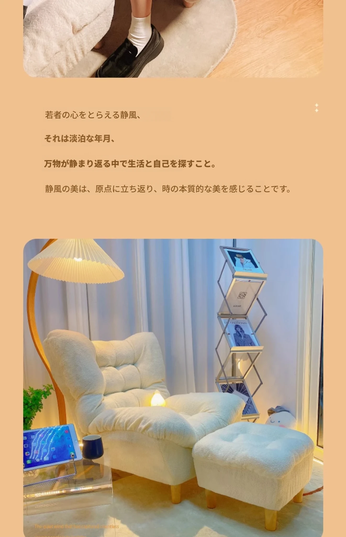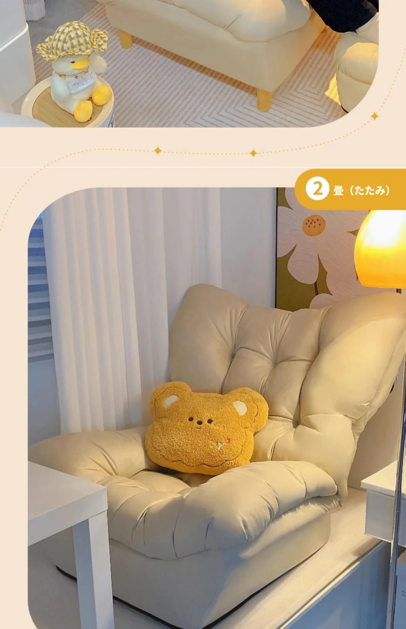 リラックスできる折りたたみ式一人用ソファ!バルコニーや寝室に最適な背もたれ付きリクライニングチェア。小型でスペースを取らず、居心地の良いくつろぎ空間を提供します。