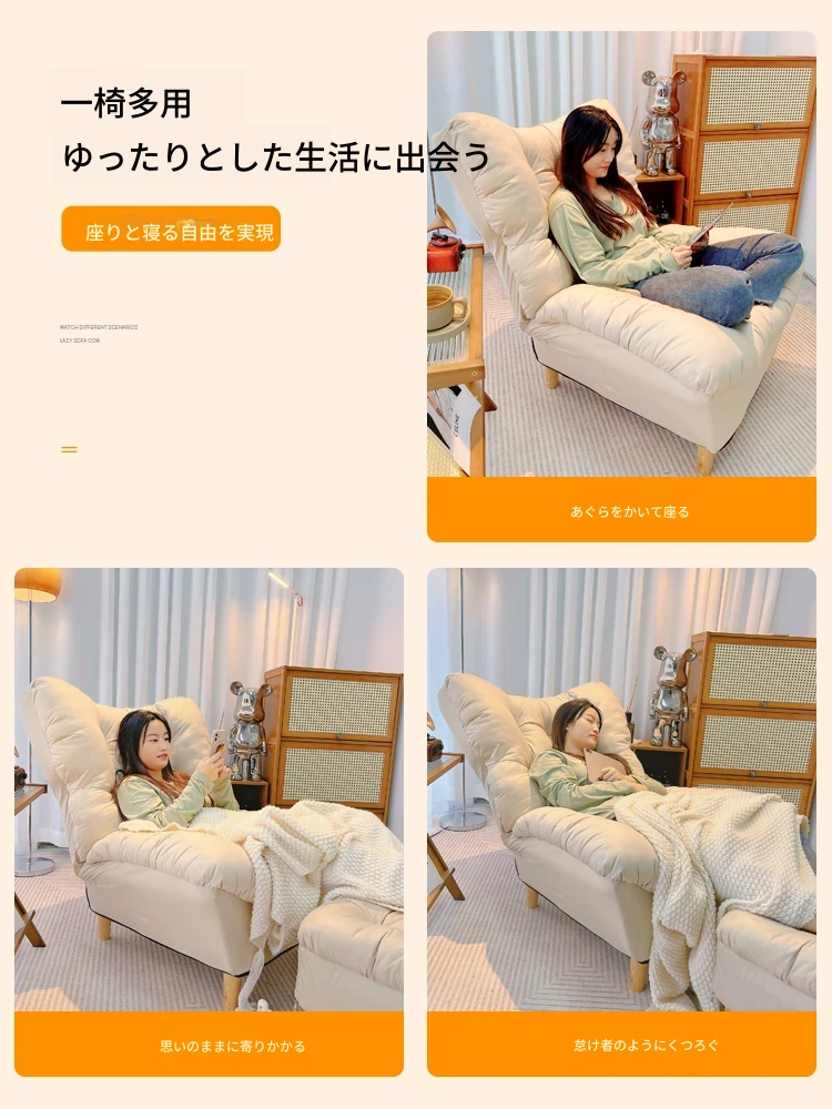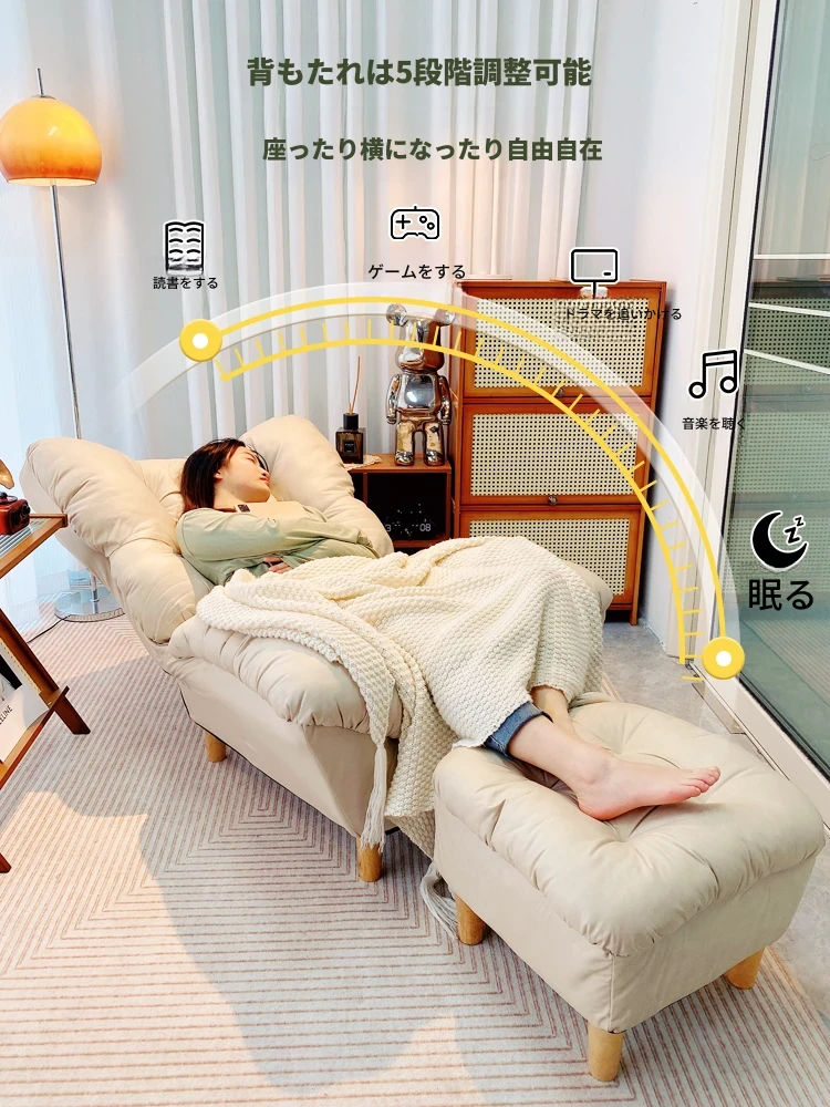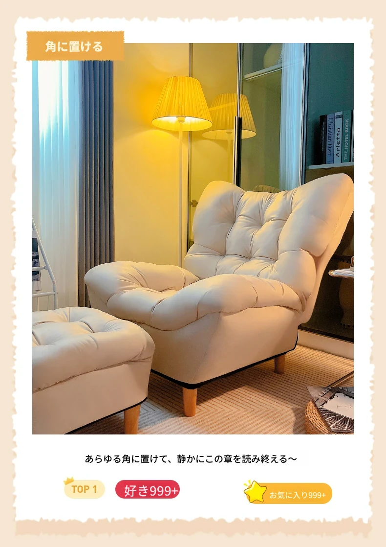 リラックスできる一人用ソファ|折りたたみ式のバルコニー用レジャーチェア|寝室や小型リビングに最適なコンパクトデザイン|快適な背もたれ付きで、あなたのくつろぎタイムをサポートします!