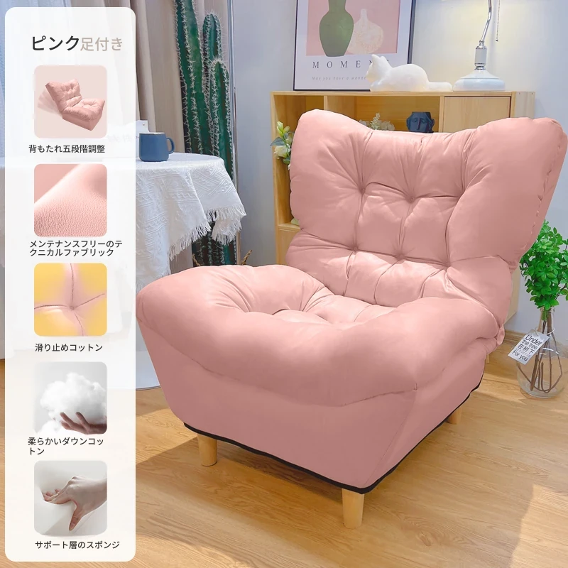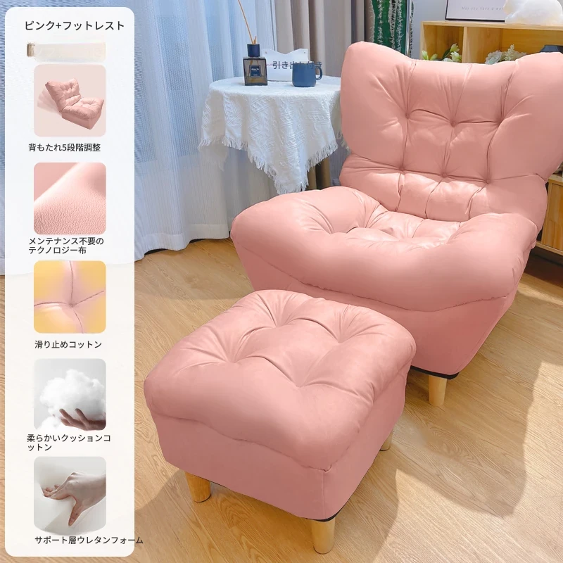 ソファチェア★ピンク+フットレスト-防汚テクノロジー布