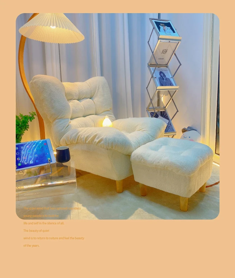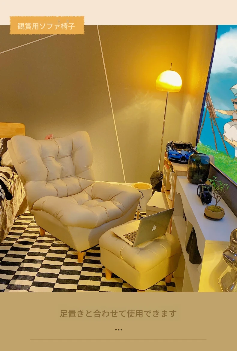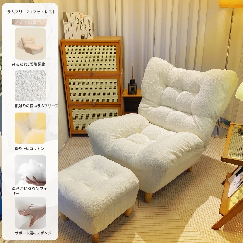 ソファチェア★アイボリー+フットレスト-肌触りの良いラムフリース