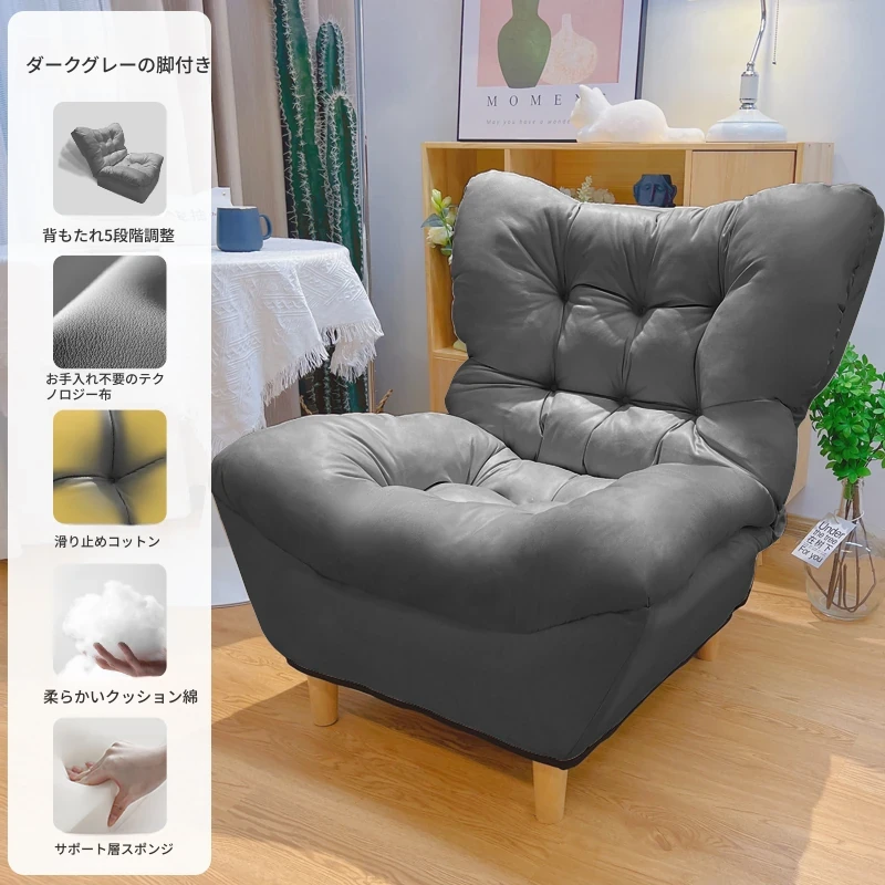 ソファチェア★ダークグレー+フットレスト-防汚テクノロジー布