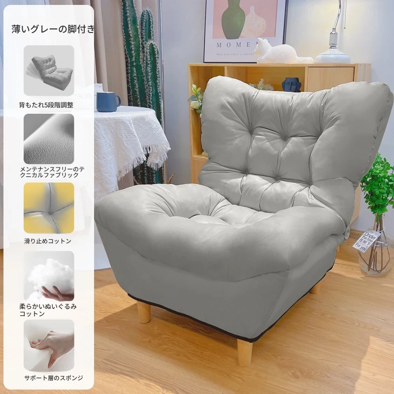 ソファチェア★ライトグレー+フットレスト-防汚テクノロジー布