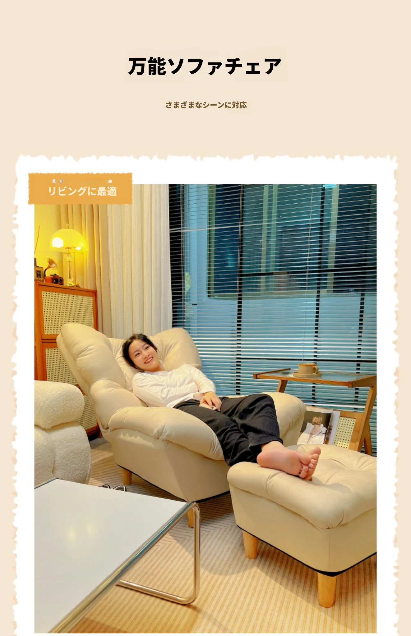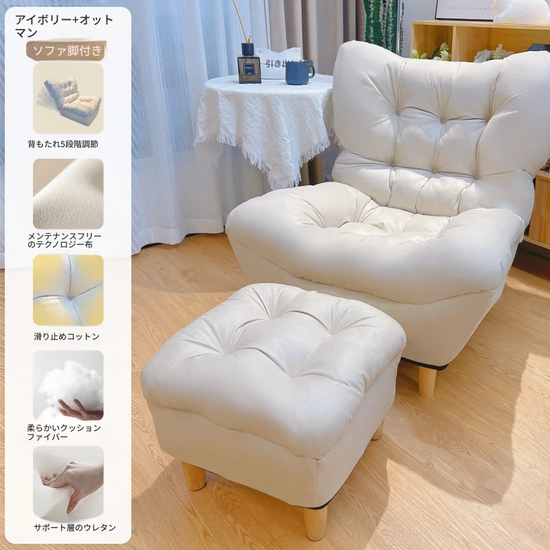 ソファチェア★オフホワイト+フットレスト-防汚テクノロジー布