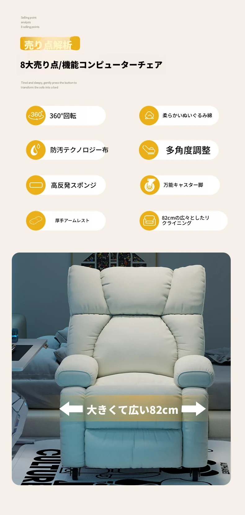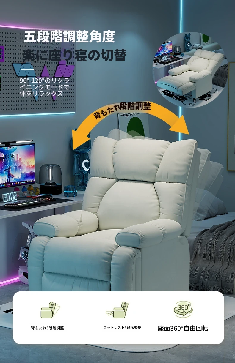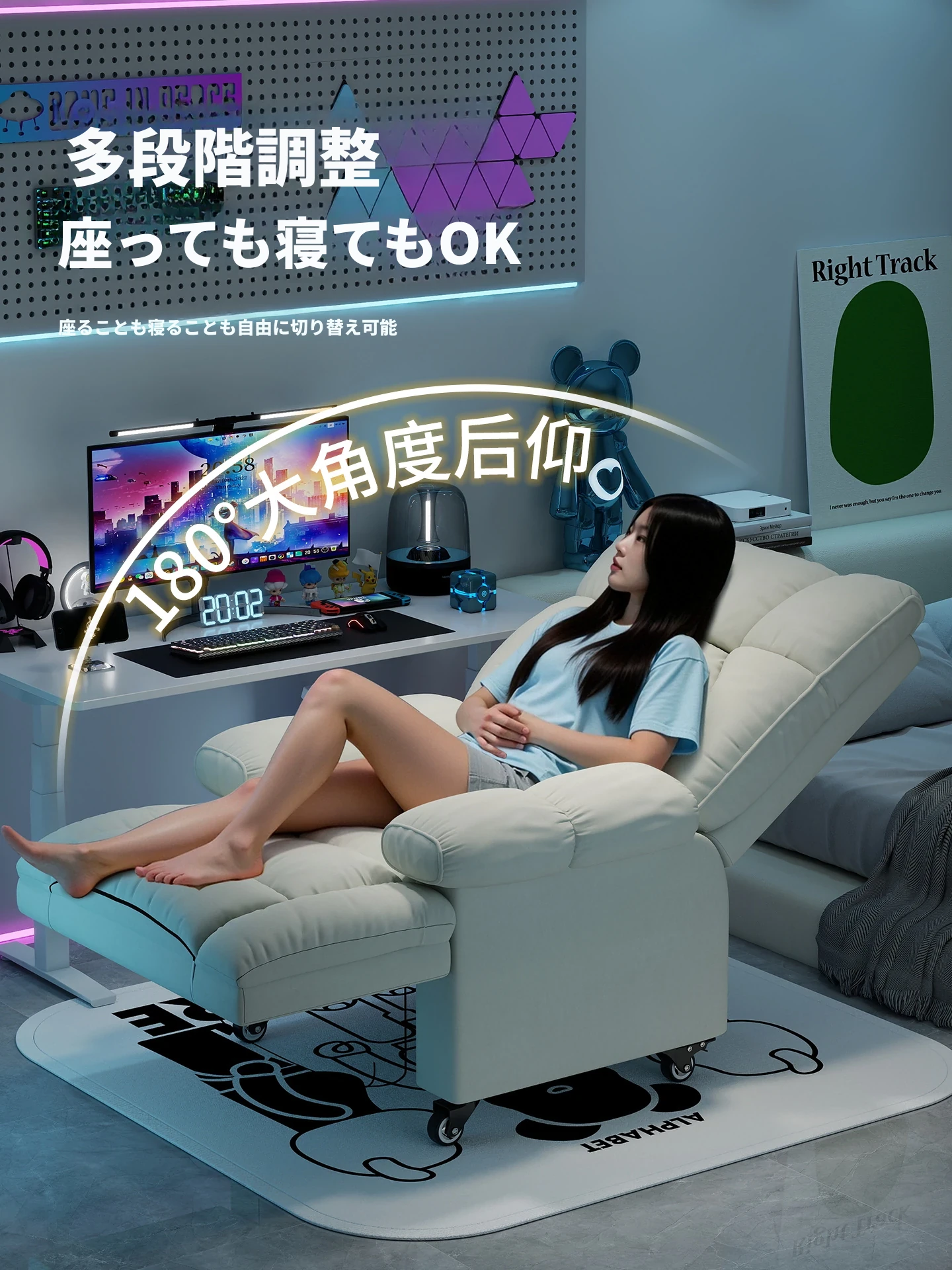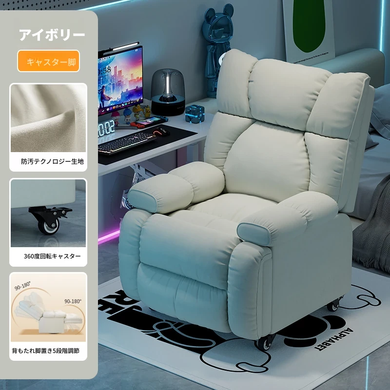 【滑輪款】アイボリー★背もたれ付きフットレスト調整可能 防汚テクノロジー布