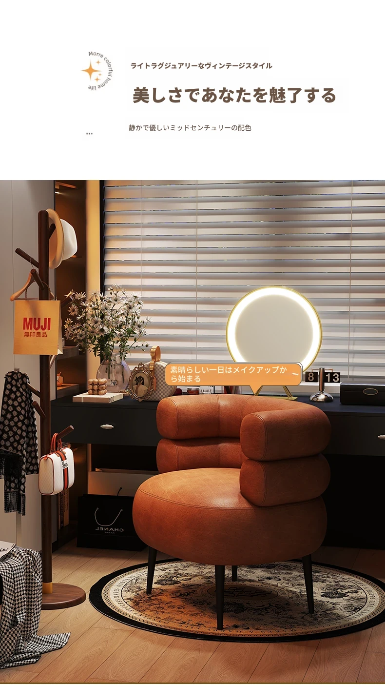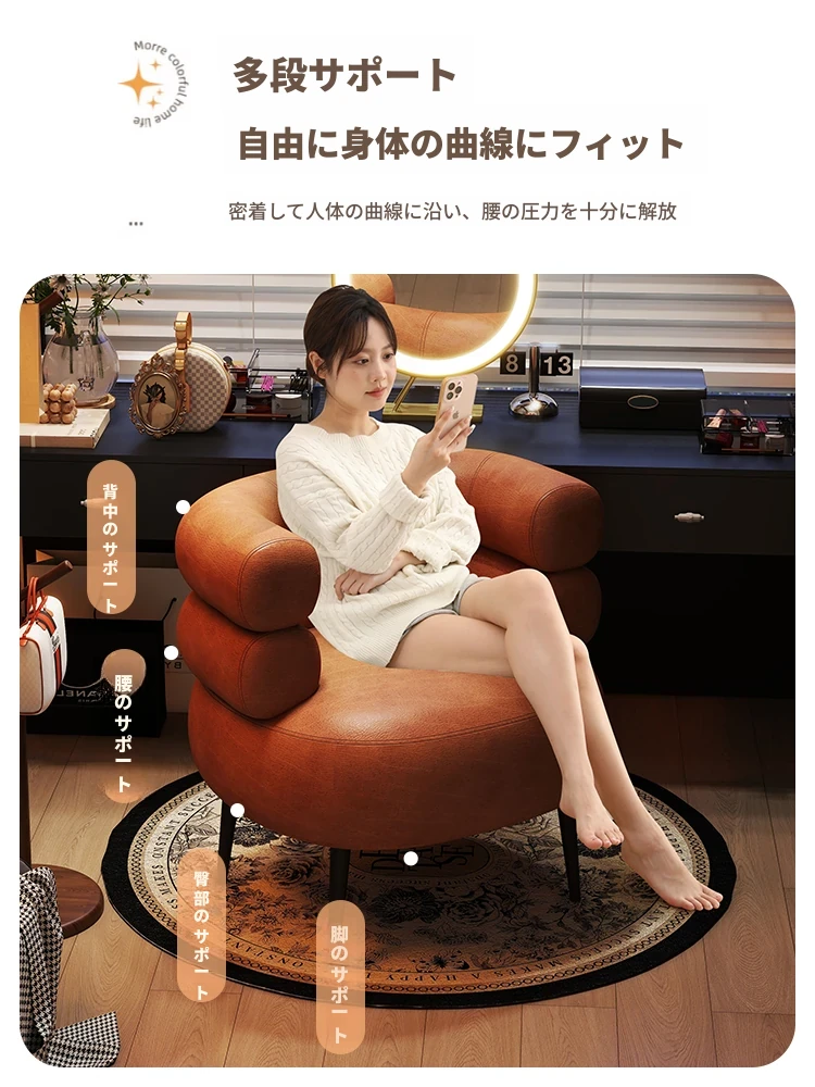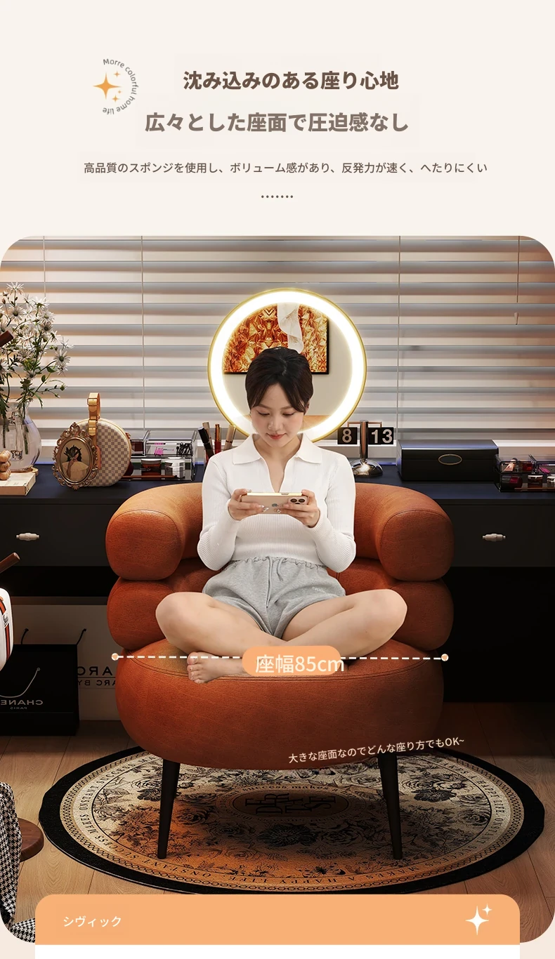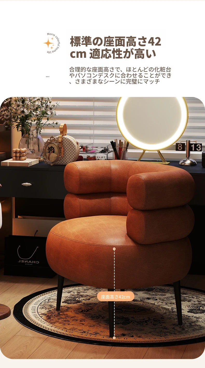 高級感溢れる化粧椅子|自宅用の軽やかなラグジュアリー|衣装部屋やドレッサーにぴったり|快適な背もたれ付きで、寝室やネイルサロンにも最適な一人用ソファー!