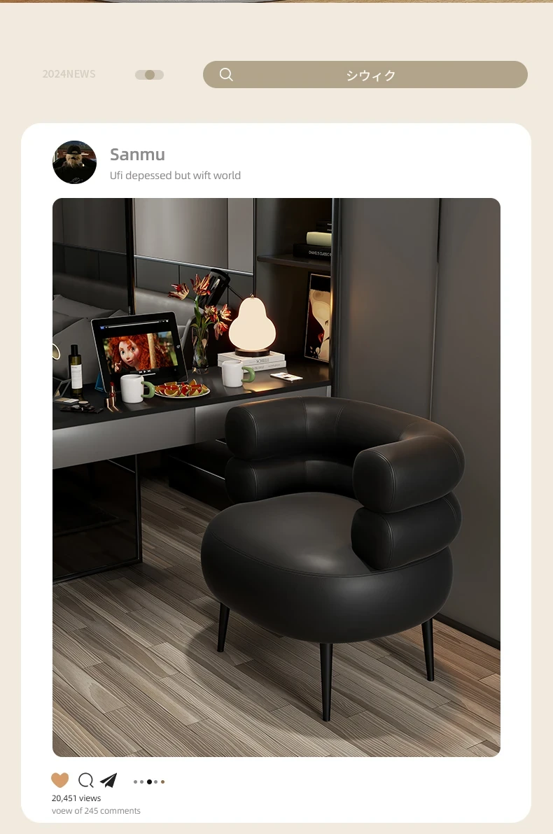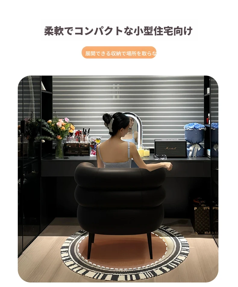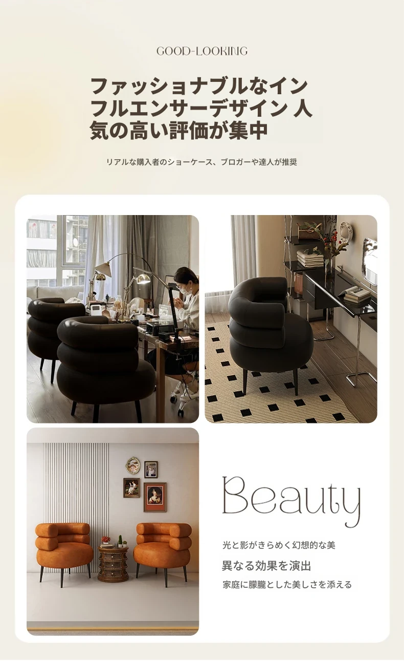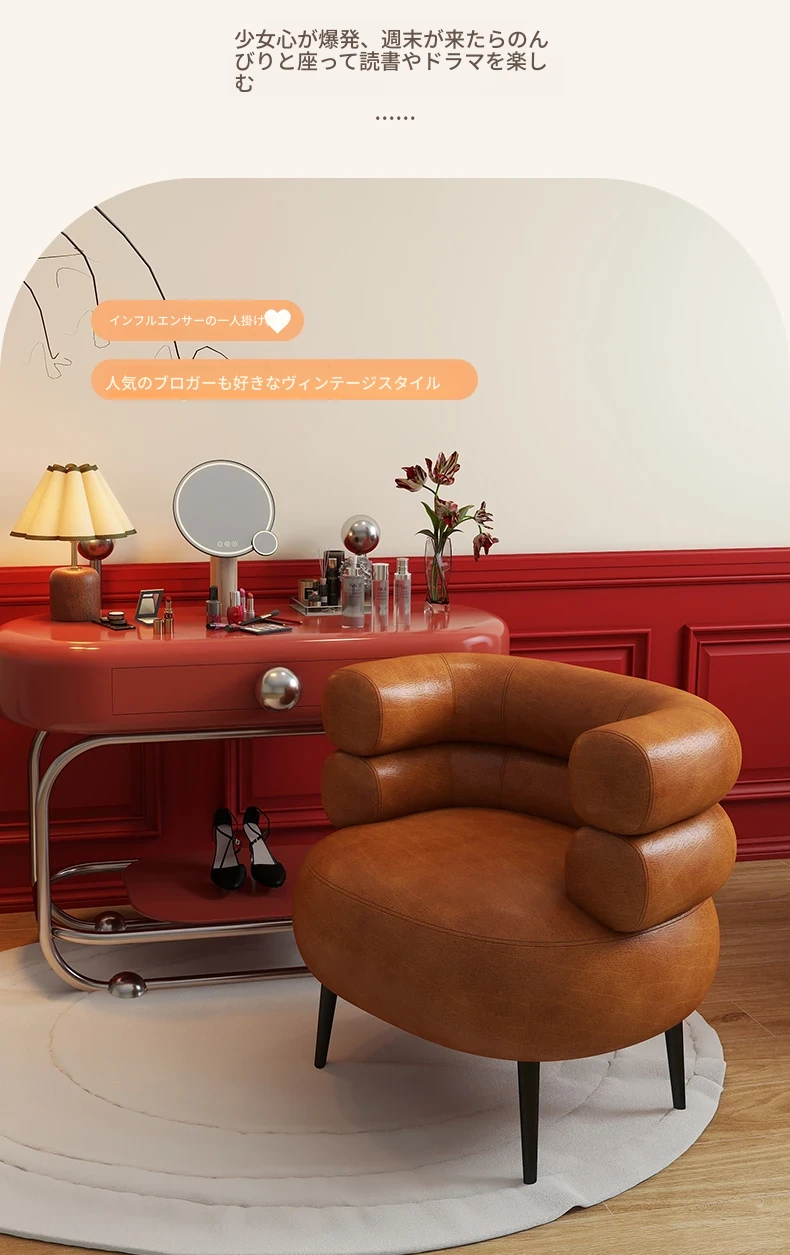高級感溢れる化粧椅子|自宅用の軽やかなラグジュアリー|衣装部屋やドレッサーにぴったり|快適な背もたれ付きで、寝室やネイルサロンにも最適な一人用ソファー!