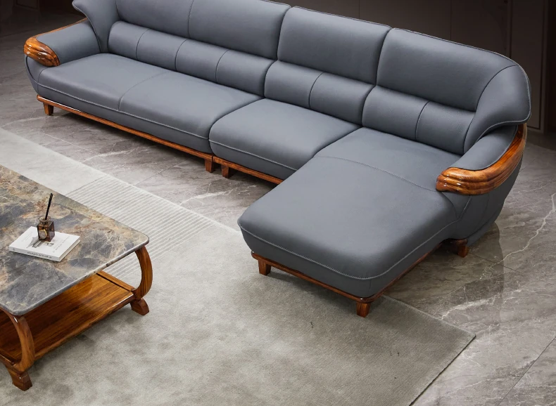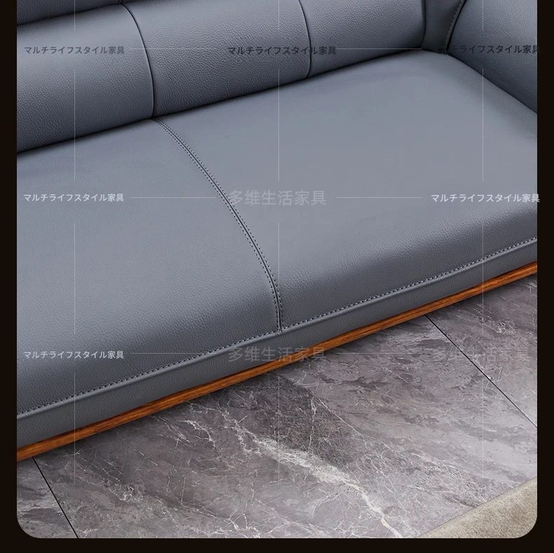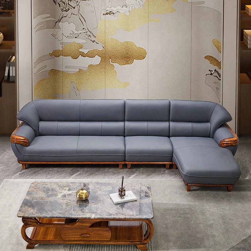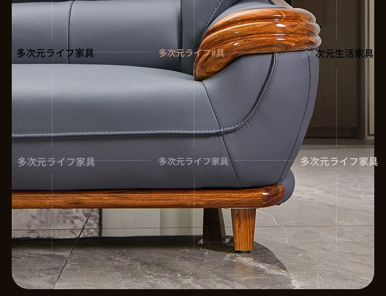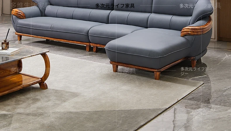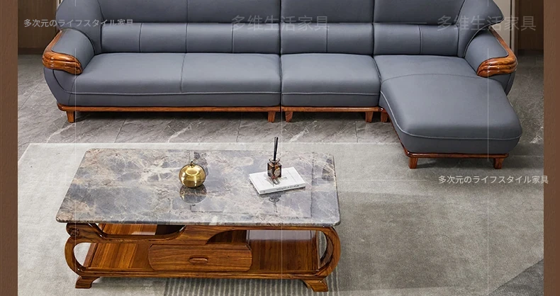 新中式ウッドブラックソファー本革リビングルームセット - 高級ヴィラ向けの豪華でモダンな欧風無垢材家具。快適さと洗練されたデザインを兼ね備えた一品で、あなたの生活空間を格上げします!