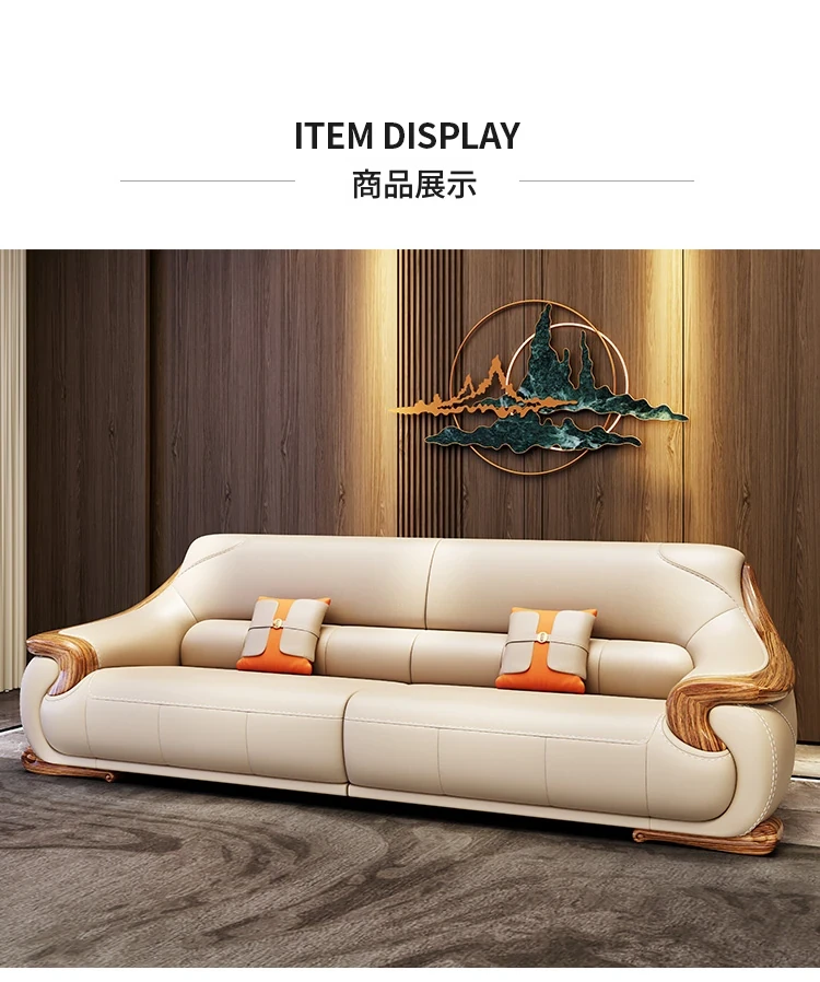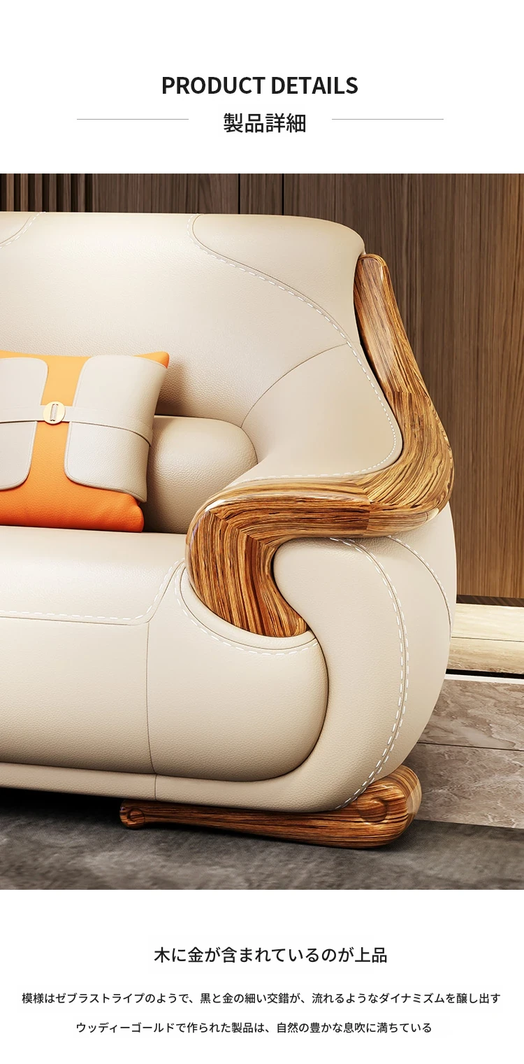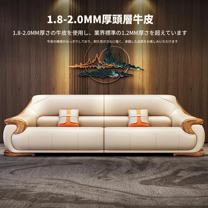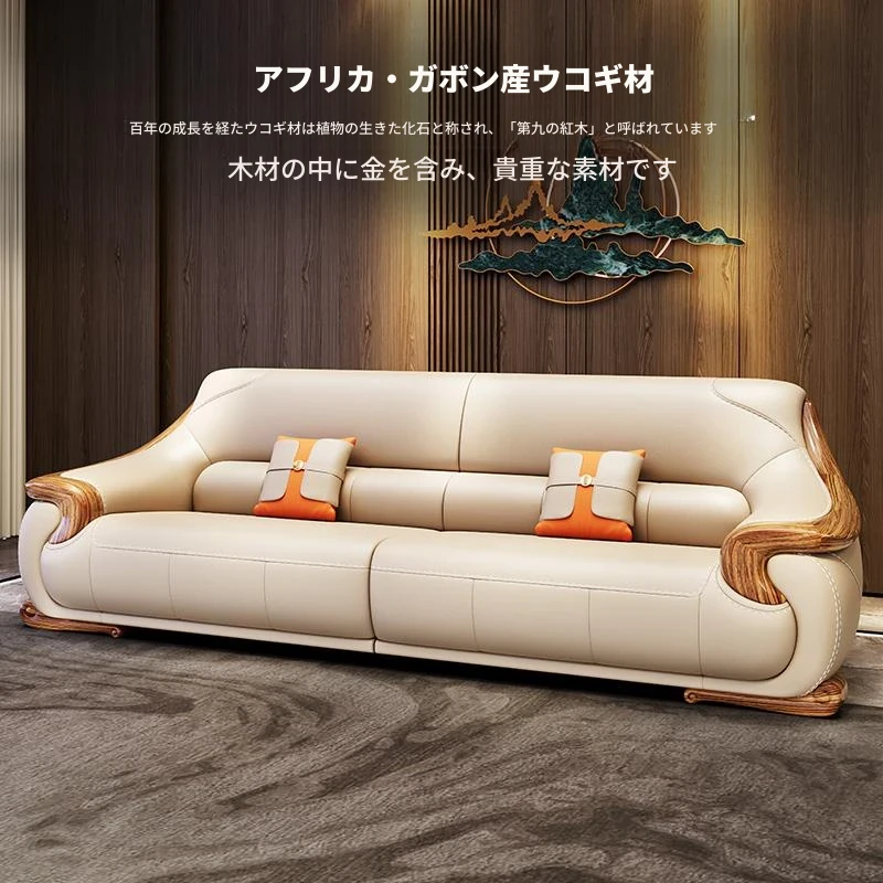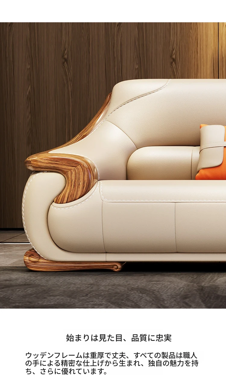 新中式ウーキンウッドレザーソファ|モダンミニマリストスタイル|2025年新作|リビングにぴったりな本革ソファセット!高級感あふれるデザインで、あなたの空間を格上げします。