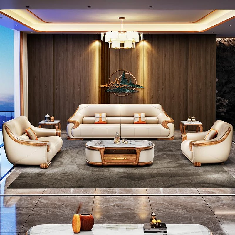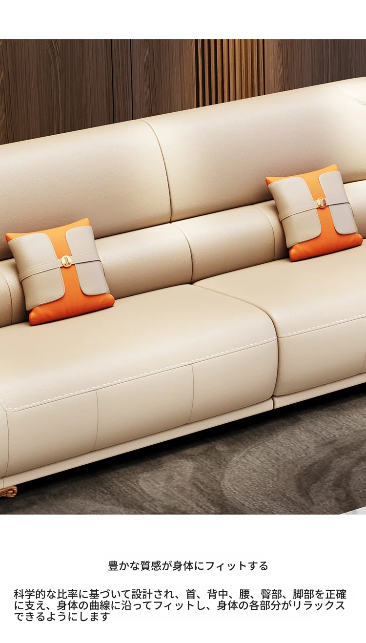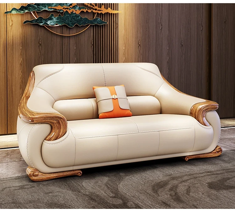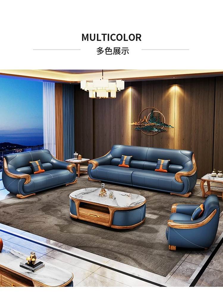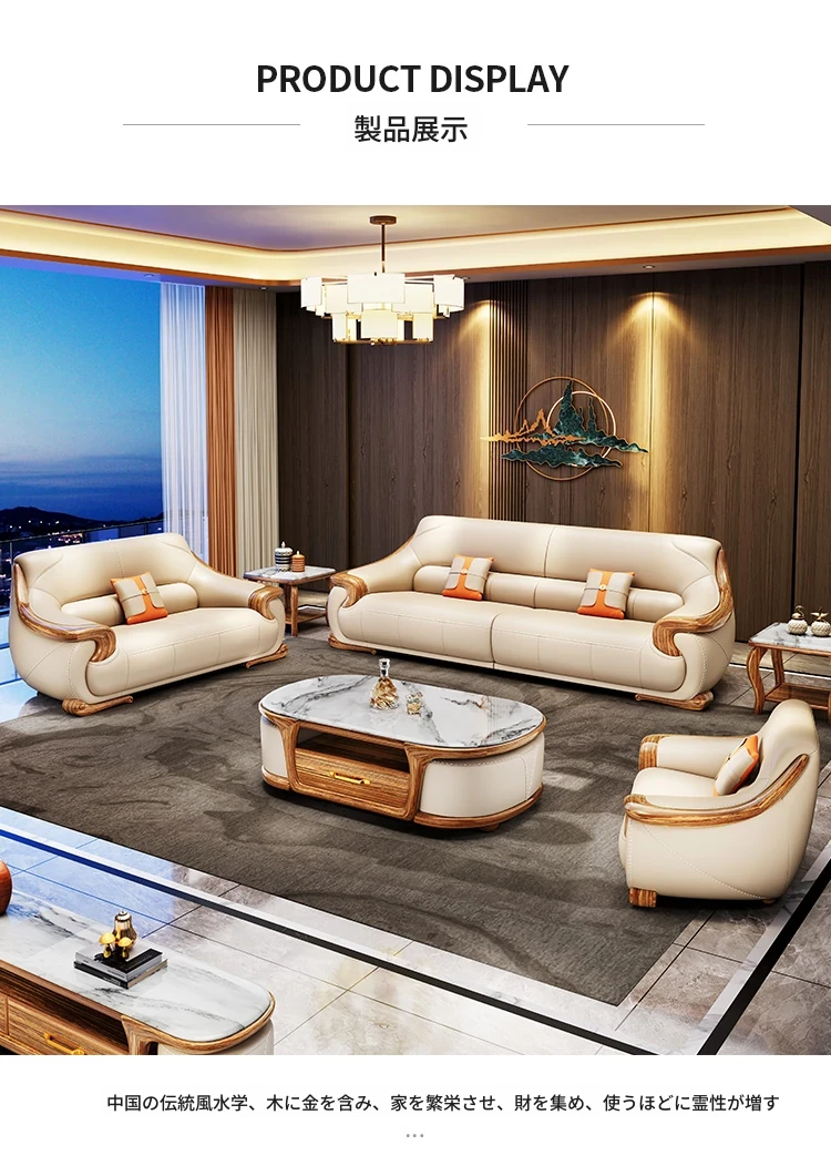 新中式ウーキンウッドレザーソファ|モダンミニマリストスタイル|2025年新作|リビングにぴったりな本革ソファセット!高級感あふれるデザインで、あなたの空間を格上げします。