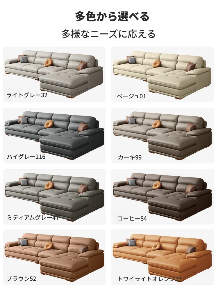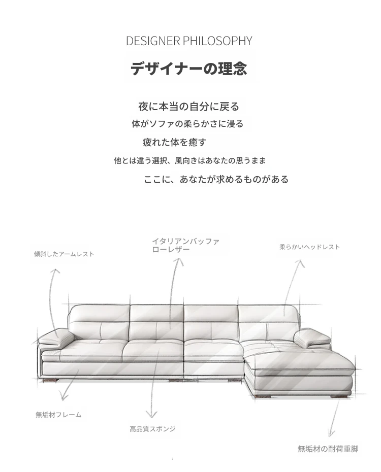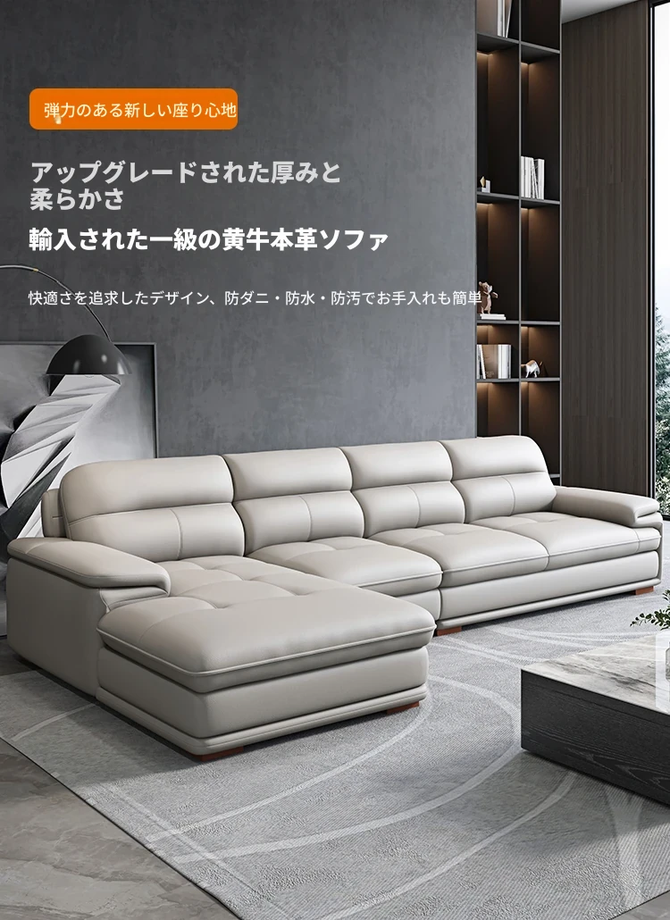 4人掛け+オットマン+シングル【輸入ナッパレザー】